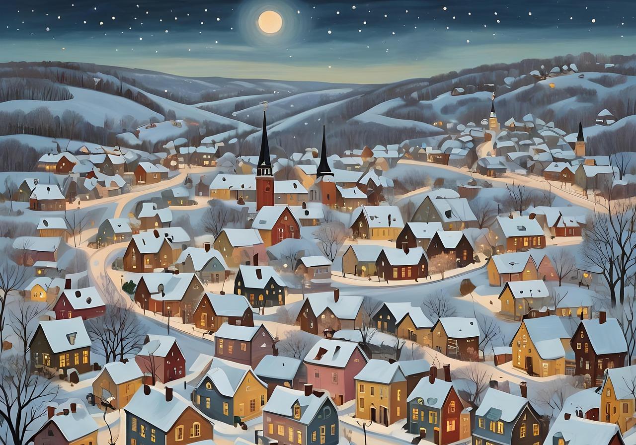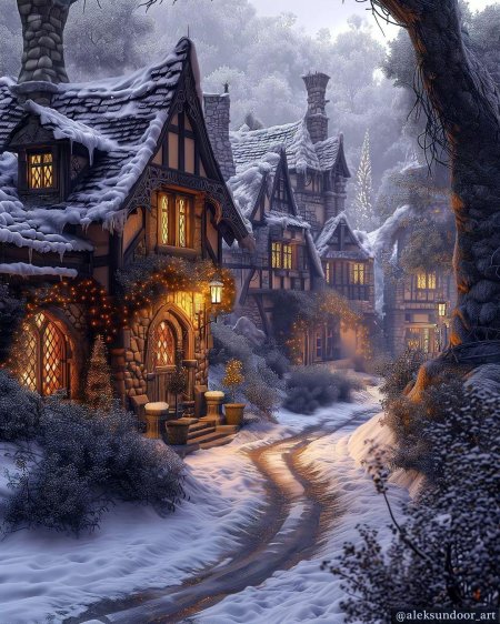 Теплая серия фотографий и художественных изображений зимней деревни. Эти фото передают атмосферу уюта и спокойствия провинциальной жизни, подчеркивая красоту заснеженных пейзажей и деревянных домиков. Каждый кадр рассказывает о гармонии с природой и семейных традициях, создавая образ между городской суетой и деревенским покоем. Арт-произведения вдохновляют на размышления о простых радостях жизни, показывая красоту в обыденности.