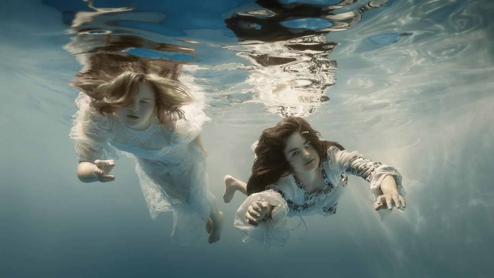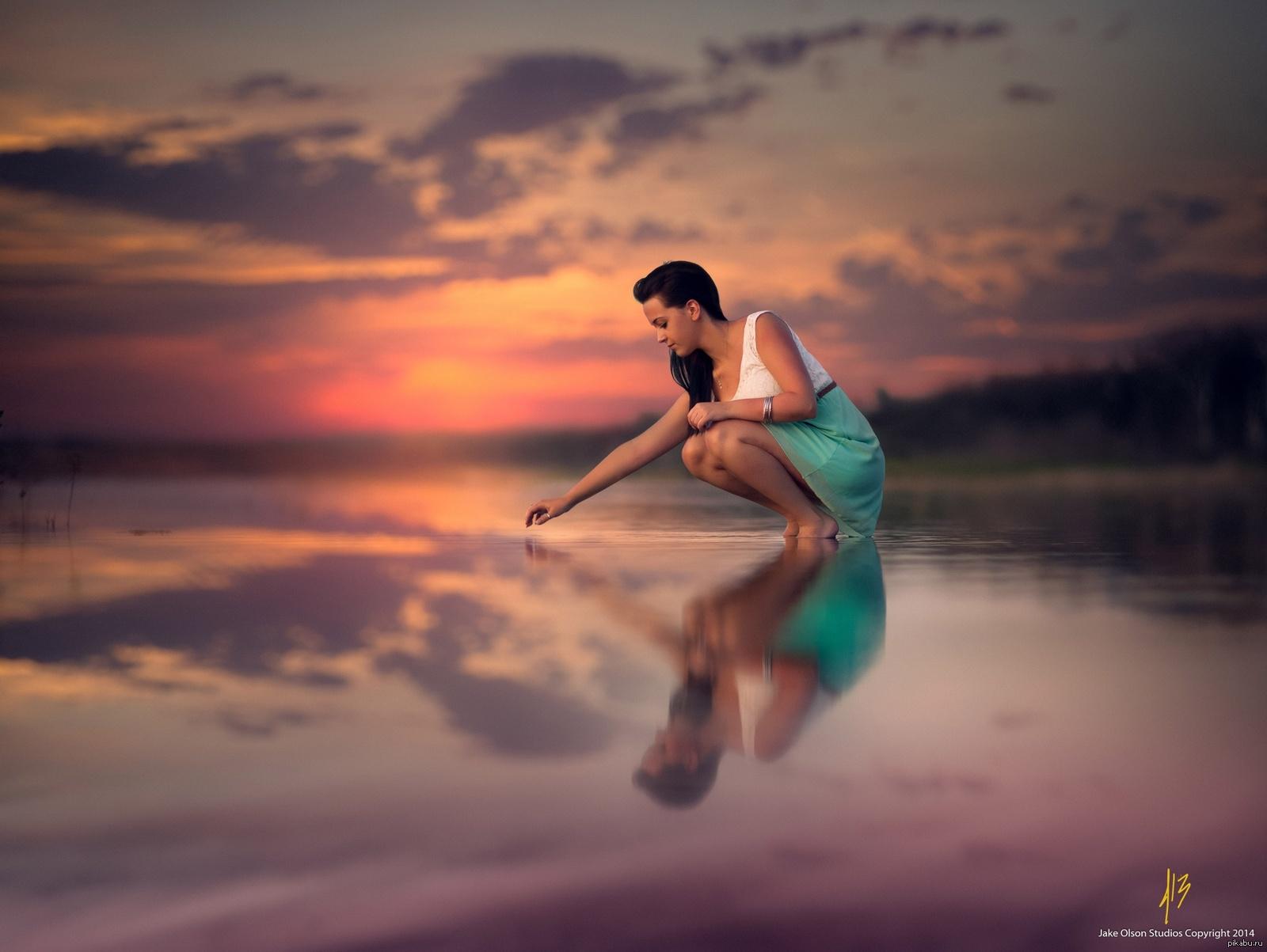 Отражения девушек в воде