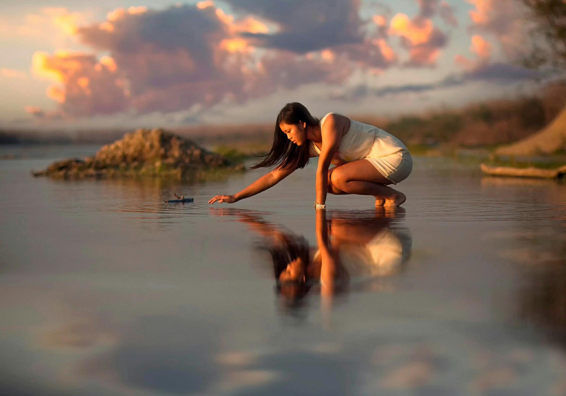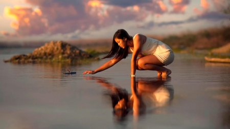 Лирическая серия фотографий и художественных изображений, где девушки предстают в гармонии с водной стихией. Эти фото передают атмосферу спокойствия и размышлений, подчеркивая красоту отражений и игру света на поверхности воды. Каждый кадр рассказывает о моментах уединения и созерцания, создавая поэтическую атмосферу между реальностью и иллюзией. Арт-произведения вдохновляют на медитацию, показывая, как вода может стать зеркалом души и отражением внутренней гармонии.