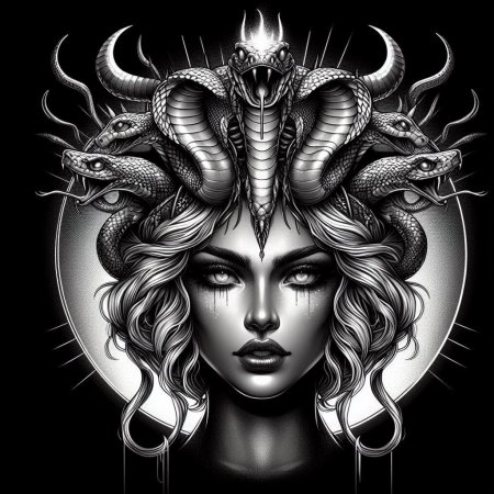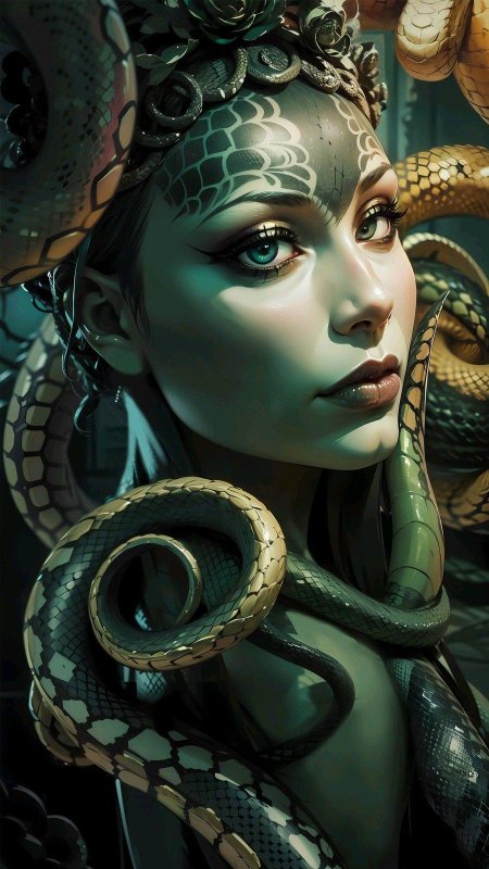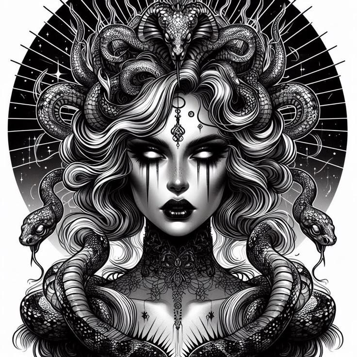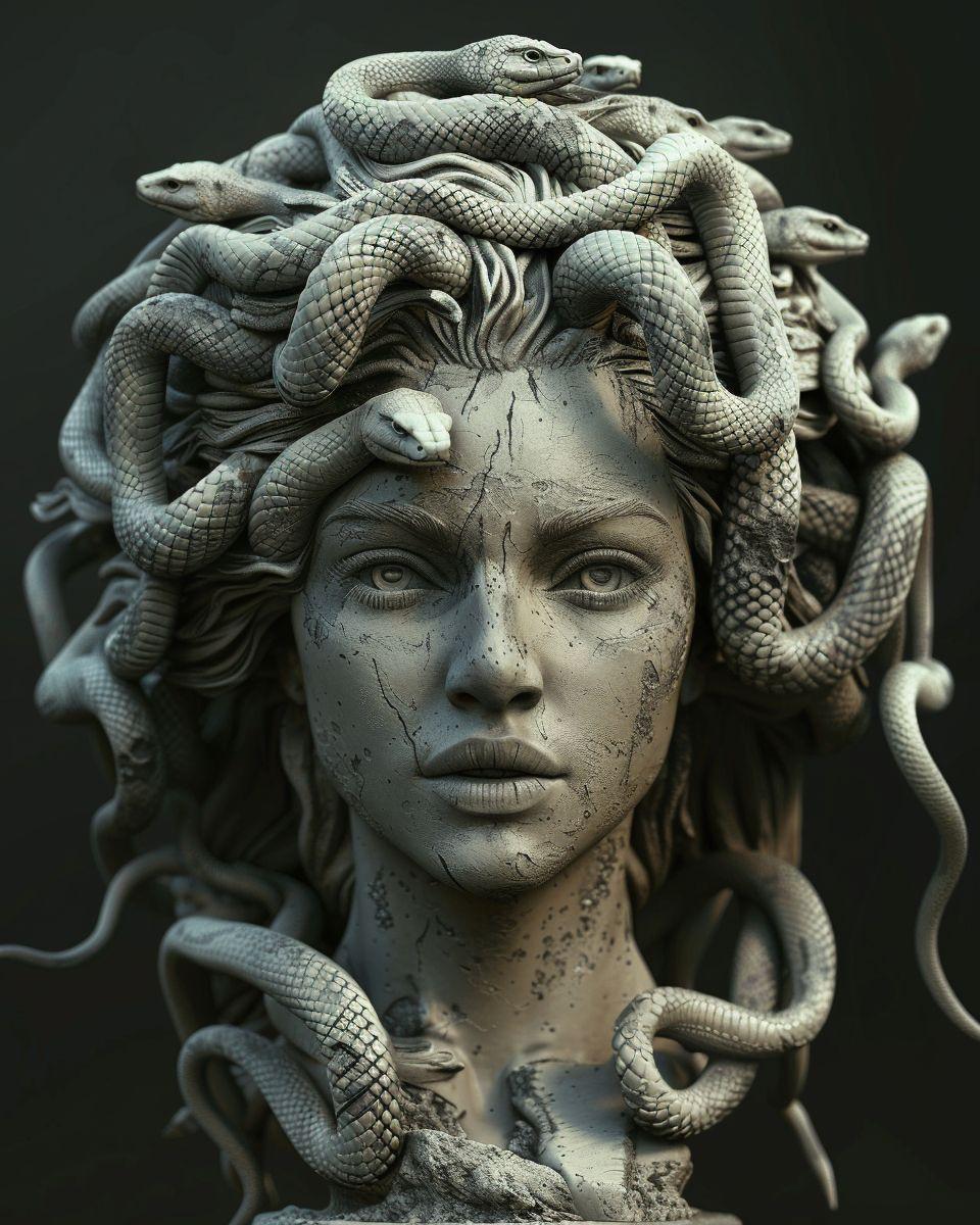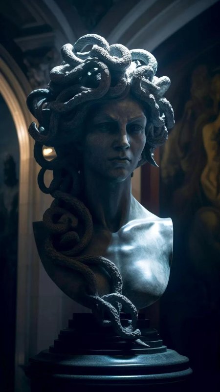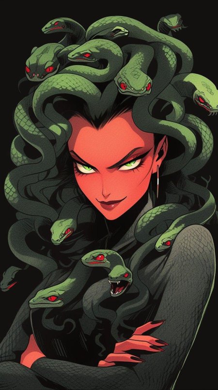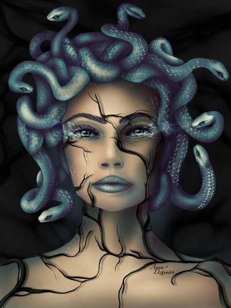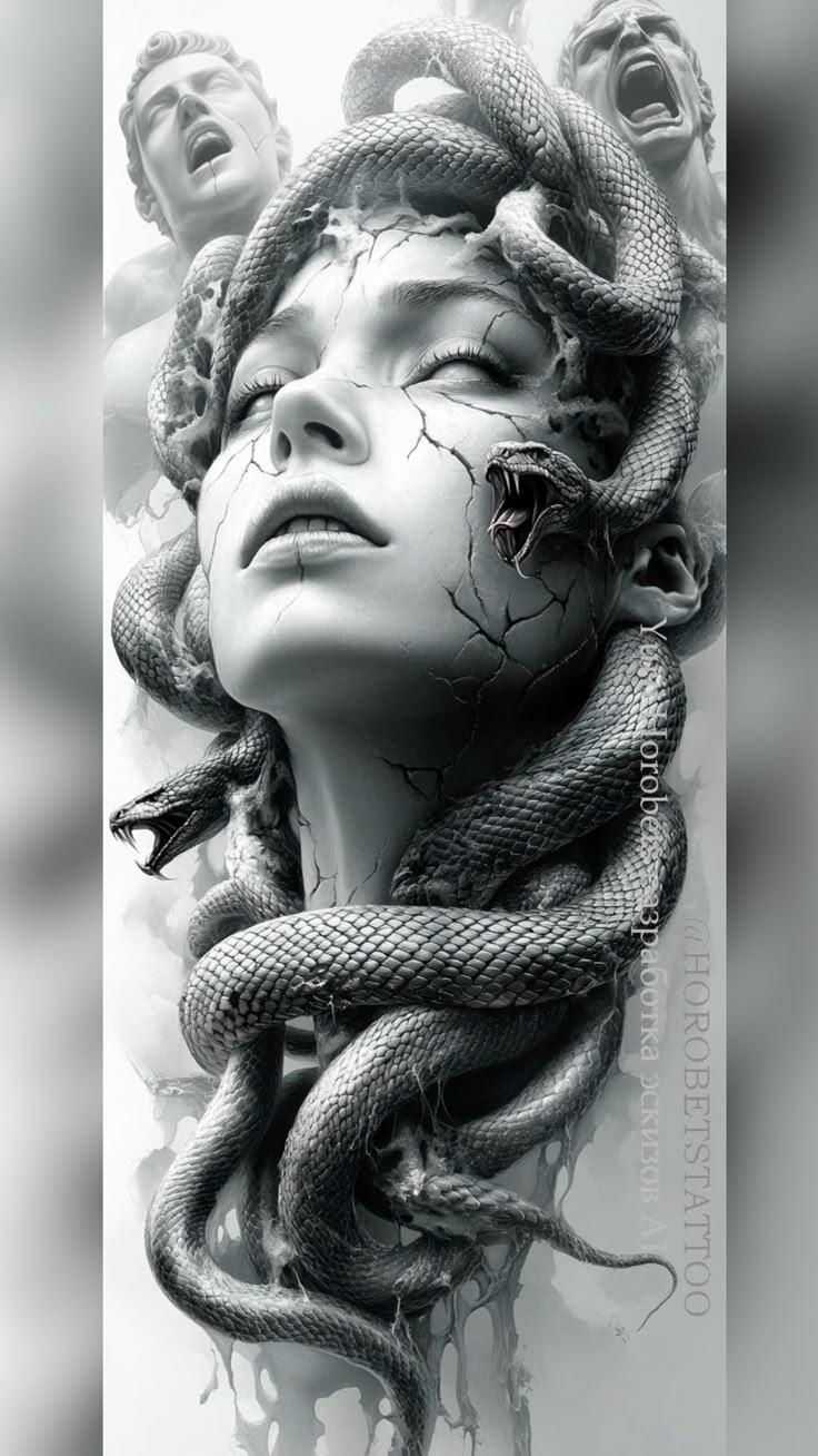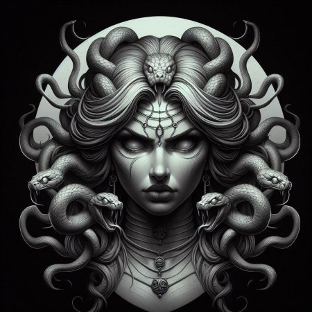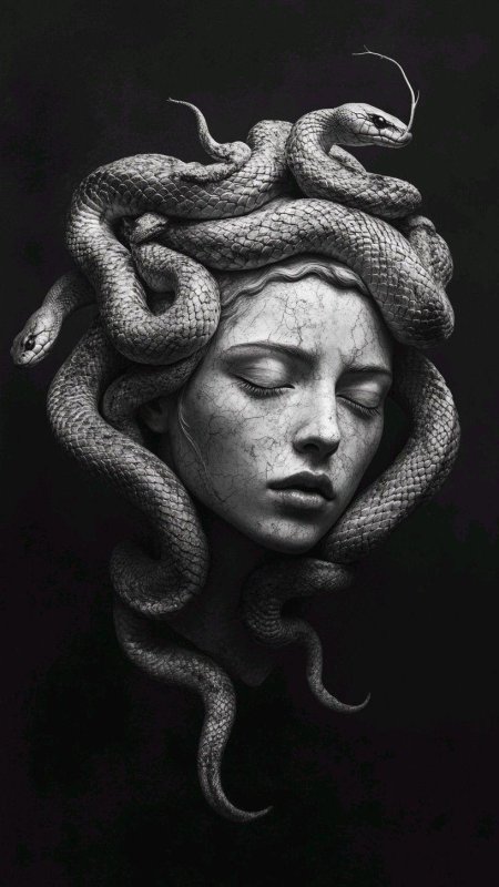Коллекция погружает в мир древнегреческой мифологии, где Медуза Горгона предстает как трагическая фигура - прекрасная женщина, превращенная в чудовище. Каждый арт тщательно исследует ее образ: от ранних изображений как прекрасной девы до классического вида с змеями вместо волос и взглядом, обращающим в камень. Изображения сочетают античную эстетику с современными техниками, подчеркивая психологическую глубину этого мифа о зависти богов и цене красоты. Особое внимание уделено деталям: извивающимся змеям, выражению глаз, полному одновременно красоты и ужаса, и позам, передающим ее трагическую судьбу. Коллекция включает разнообразные интерпретации - от классических скульптурных композиций до психологических портретов. Эти иллюстрации поднимают темы женской силы, проклятия и трансформации, делая древний миф актуальным для размышлений о красоте и власти в современном мире.