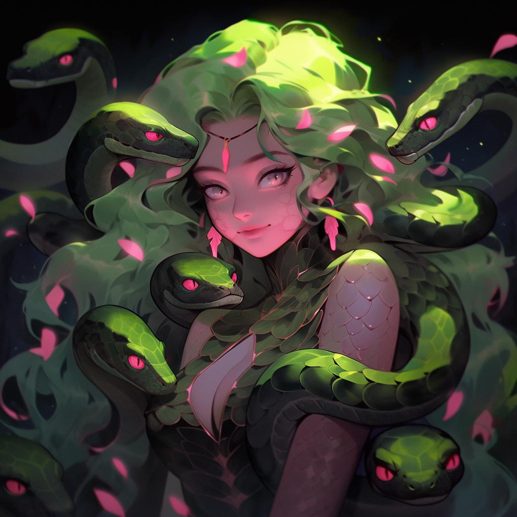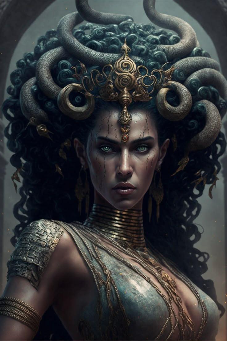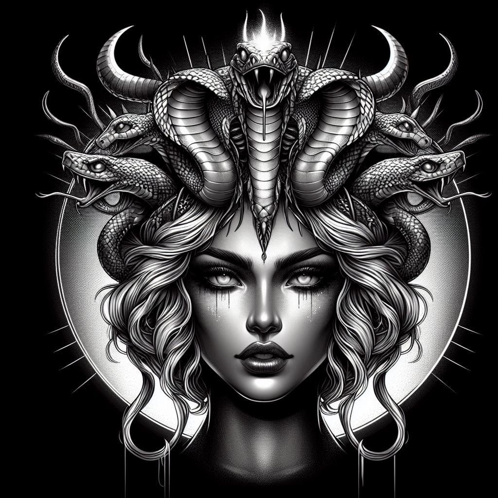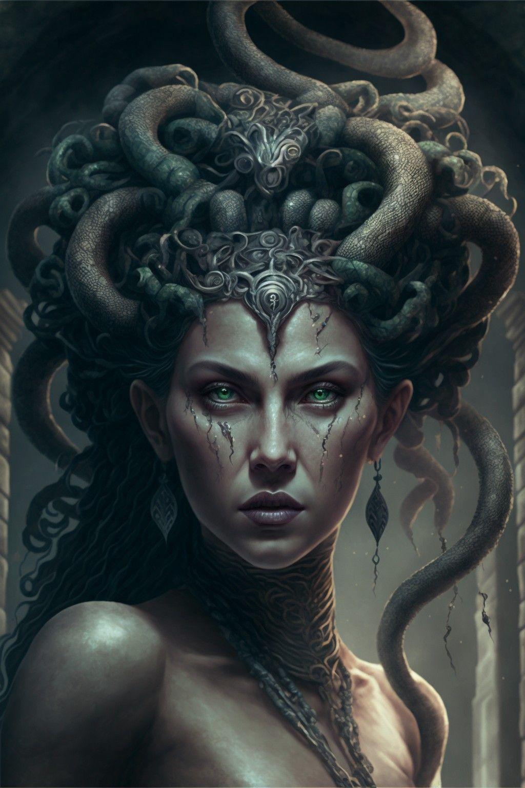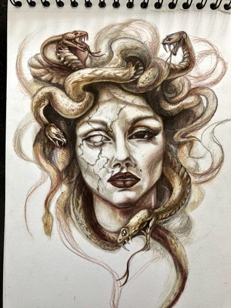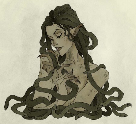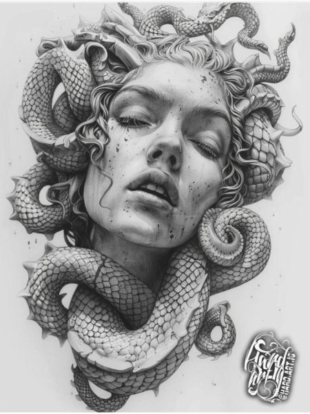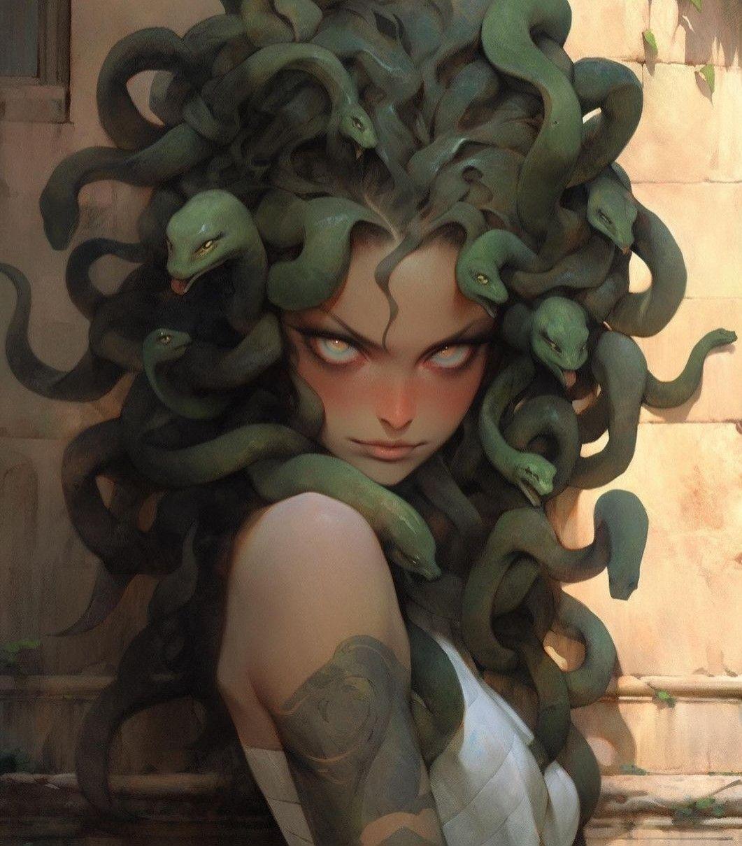 Коллекция погружает в мир древнегреческой мифологии, где Медуза Горгона предстает как трагическая фигура - прекрасная женщина, превращенная в чудовище. Каждый арт тщательно исследует ее образ: от ранних изображений как прекрасной девы до классического вида с змеями вместо волос и взглядом, обращающим в камень. Изображения сочетают античную эстетику с современными техниками, подчеркивая психологическую глубину этого мифа о зависти богов и цене красоты. Особое внимание уделено деталям: извивающимся змеям, выражению глаз, полному одновременно красоты и ужаса, и позам, передающим ее трагическую судьбу. Коллекция включает разнообразные интерпретации - от классических скульптурных композиций до психологических портретов. Эти иллюстрации поднимают темы женской силы, проклятия и трансформации, делая древний миф актуальным для размышлений о красоте и власти в современном мире.