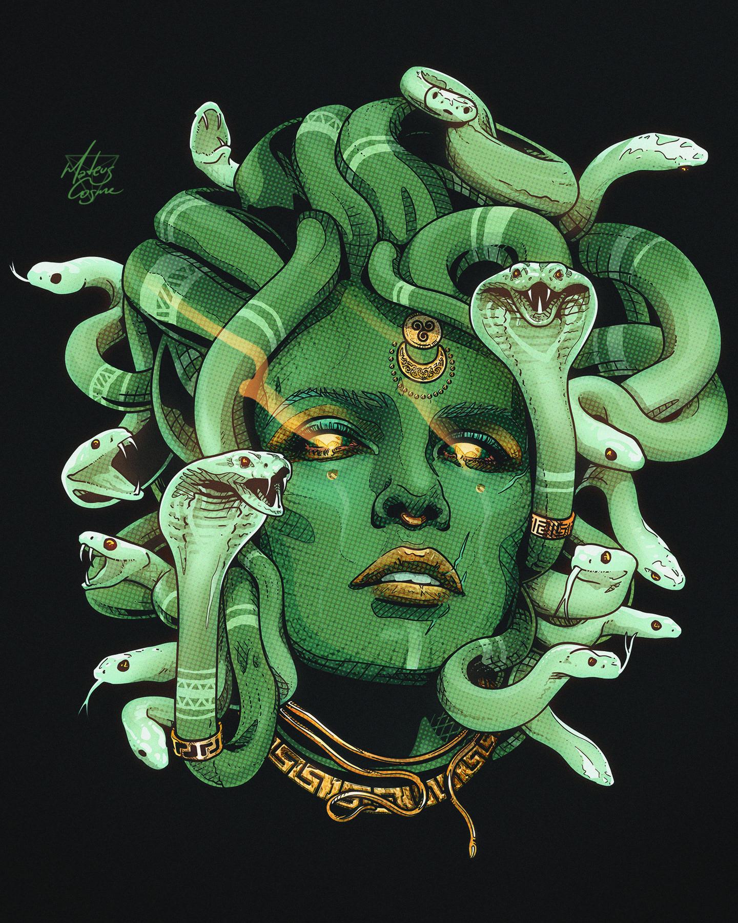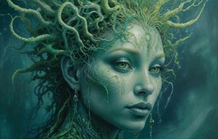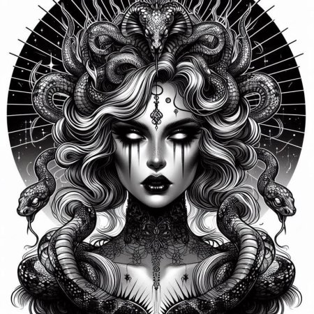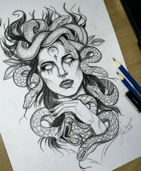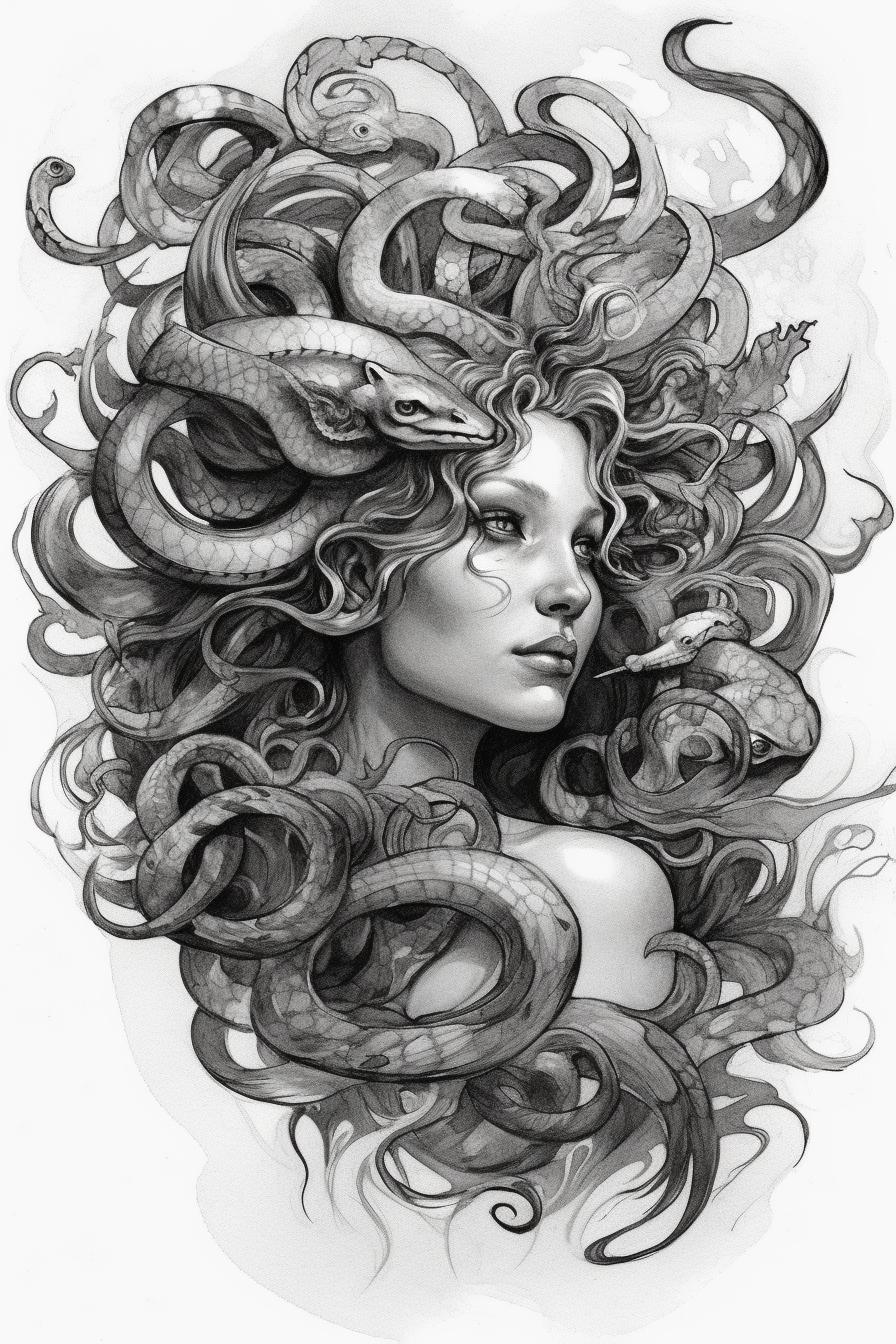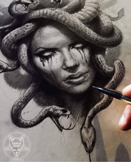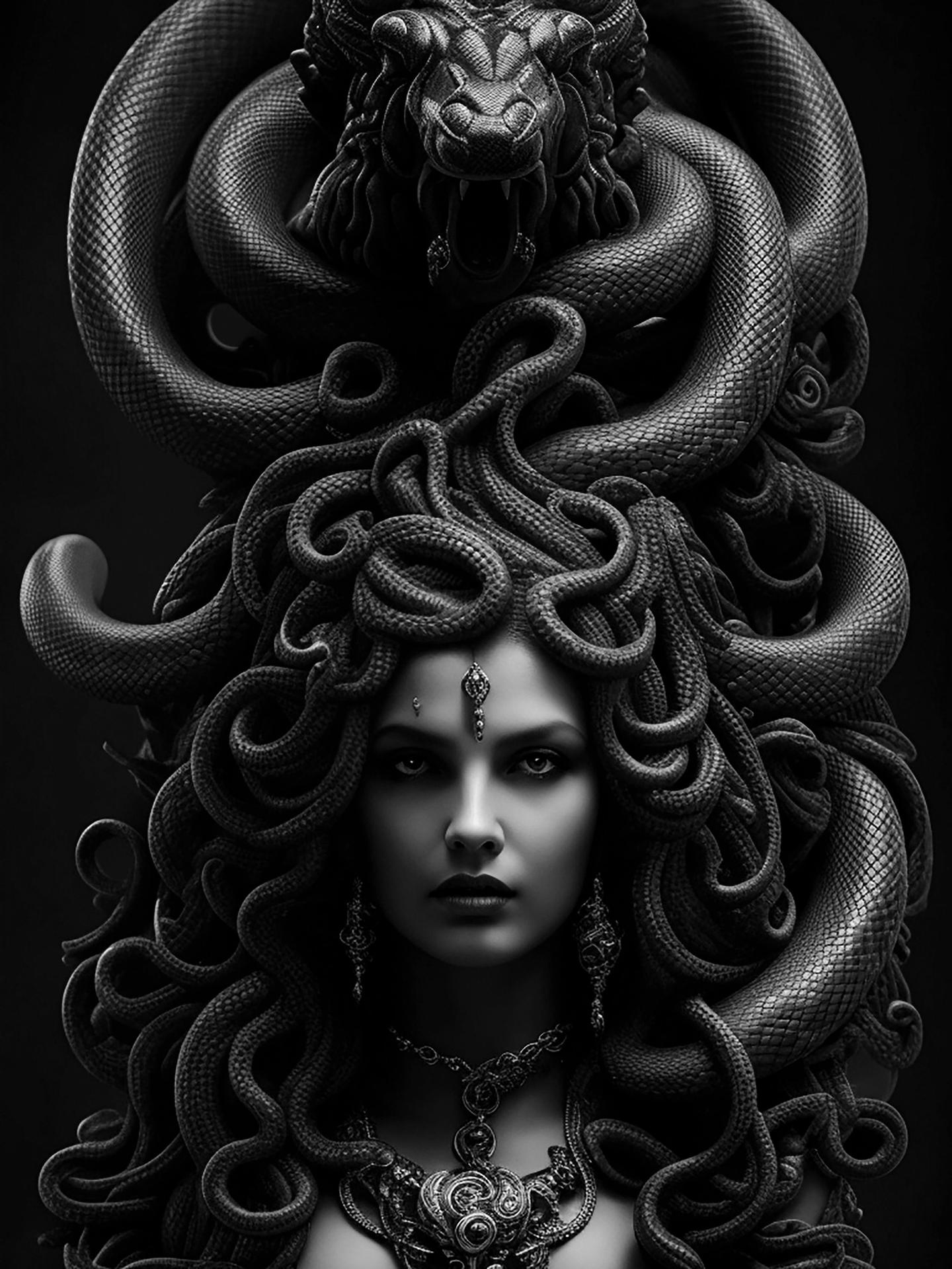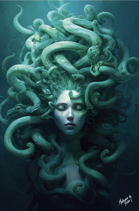 Коллекция погружает в мир древнегреческой мифологии, где Медуза Горгона предстает как трагическая фигура - прекрасная женщина, превращенная в чудовище. Каждый арт тщательно исследует ее образ: от ранних изображений как прекрасной девы до классического вида с змеями вместо волос и взглядом, обращающим в камень. Изображения сочетают античную эстетику с современными техниками, подчеркивая психологическую глубину этого мифа о зависти богов и цене красоты. Особое внимание уделено деталям: извивающимся змеям, выражению глаз, полному одновременно красоты и ужаса, и позам, передающим ее трагическую судьбу. Коллекция включает разнообразные интерпретации - от классических скульптурных композиций до психологических портретов. Эти иллюстрации поднимают темы женской силы, проклятия и трансформации, делая древний миф актуальным для размышлений о красоте и власти в современном мире.