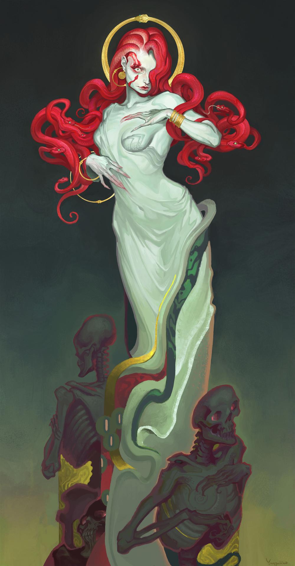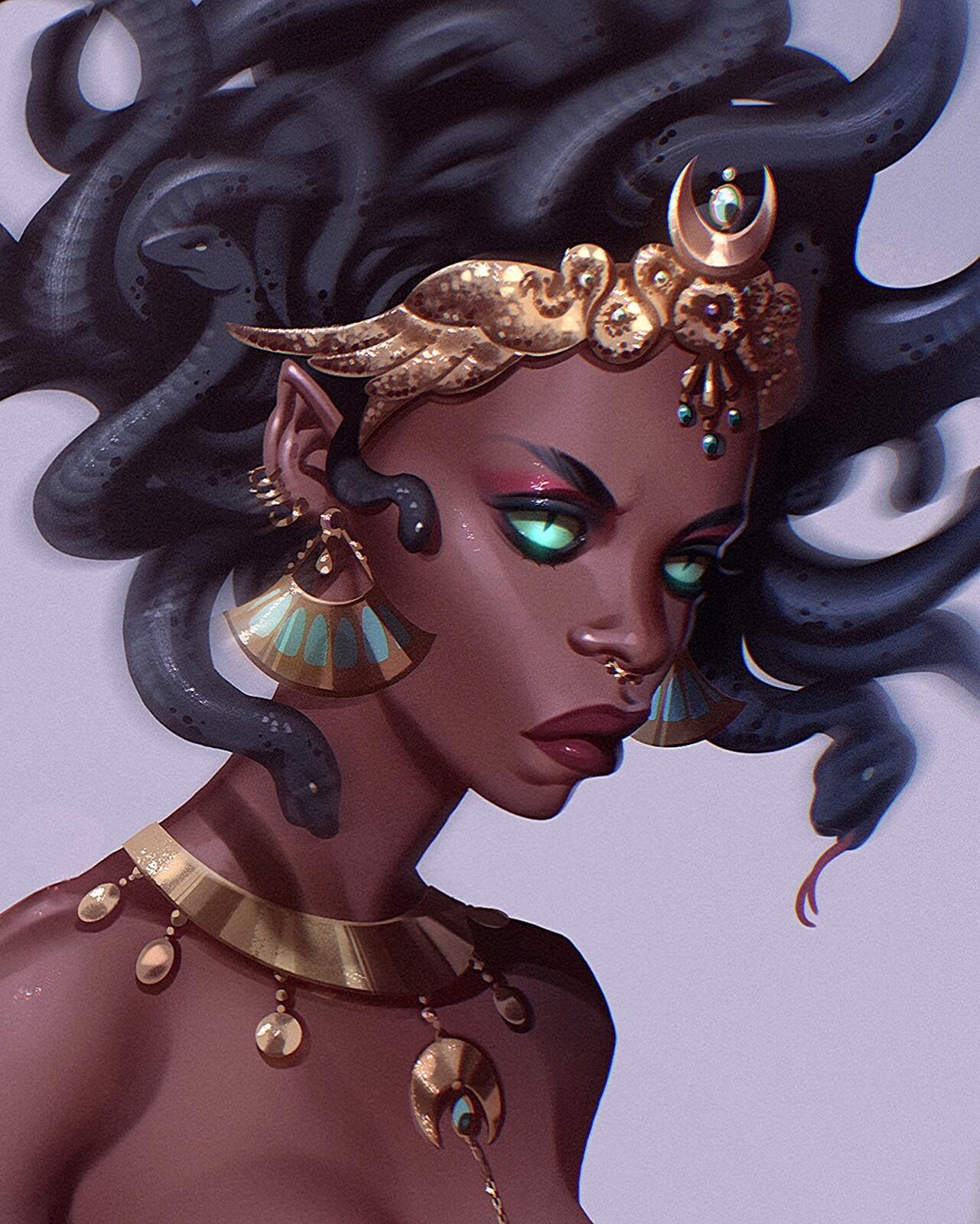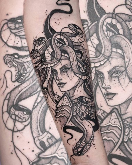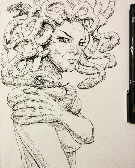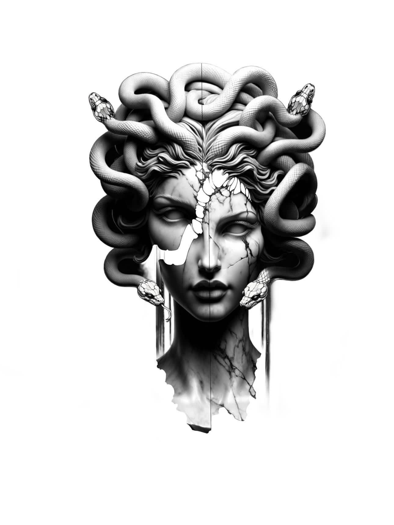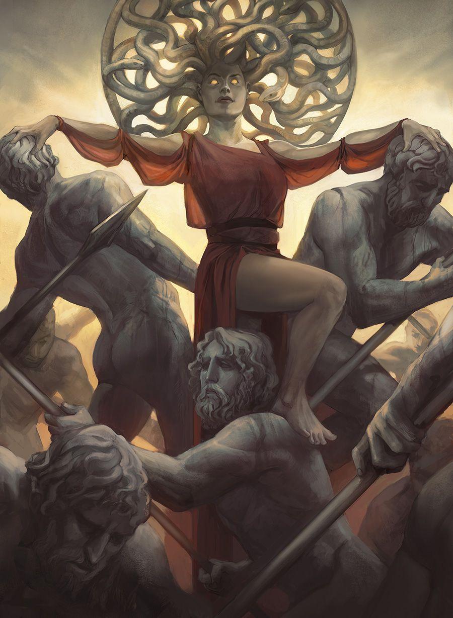 Коллекция погружает в мир древнегреческой мифологии, где Медуза Горгона предстает как трагическая фигура - прекрасная женщина, превращенная в чудовище. Каждый арт тщательно исследует ее образ: от ранних изображений как прекрасной девы до классического вида с змеями вместо волос и взглядом, обращающим в камень. Изображения сочетают античную эстетику с современными техниками, подчеркивая психологическую глубину этого мифа о зависти богов и цене красоты. Особое внимание уделено деталям: извивающимся змеям, выражению глаз, полному одновременно красоты и ужаса, и позам, передающим ее трагическую судьбу. Коллекция включает разнообразные интерпретации - от классических скульптурных композиций до психологических портретов. Эти иллюстрации поднимают темы женской силы, проклятия и трансформации, делая древний миф актуальным для размышлений о красоте и власти в современном мире.