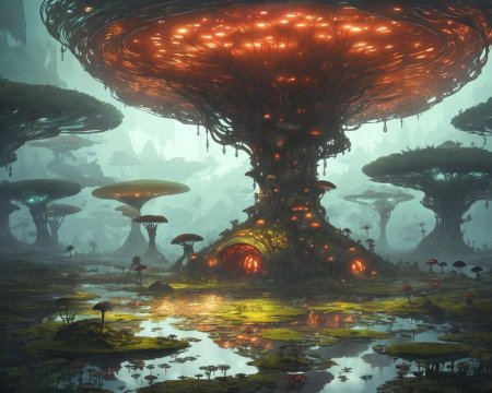 Представляем вам коллекцию, исследующую возможности растительной жизни на других планетах. Эти инопланетные деревья сочетают знакомые ботанические формы с совершенно фантастическими элементами: кристаллические листья, светящиеся стволы, ветви, растущие в невесомости, и корни, проникающие в каменные породы. Каждый арт представляет собой тщательно продуманную экосистему, где растения адаптировались к экстремальным условиям - от ледяных планет до вулканических миров. Изображения выполнены в разнообразных техниках, от реалистичных до полностью абстрактных, подчеркивая биологическое разнообразие возможной внеземной жизни. Особое внимание уделено цветовому решению - неоновые оттенки, металлические поверхности и необычные текстуры. Эти иллюстрации вдохновляют на размышления о формах жизни во Вселенной и возможностях адаптации организмов к различным условиям существования.