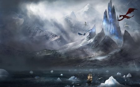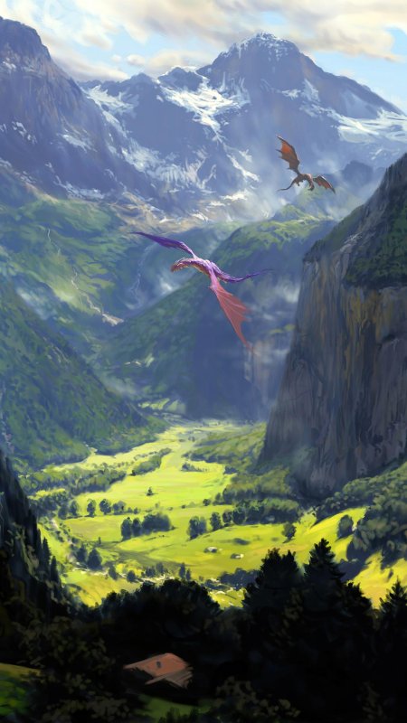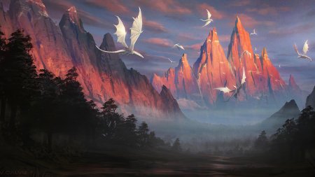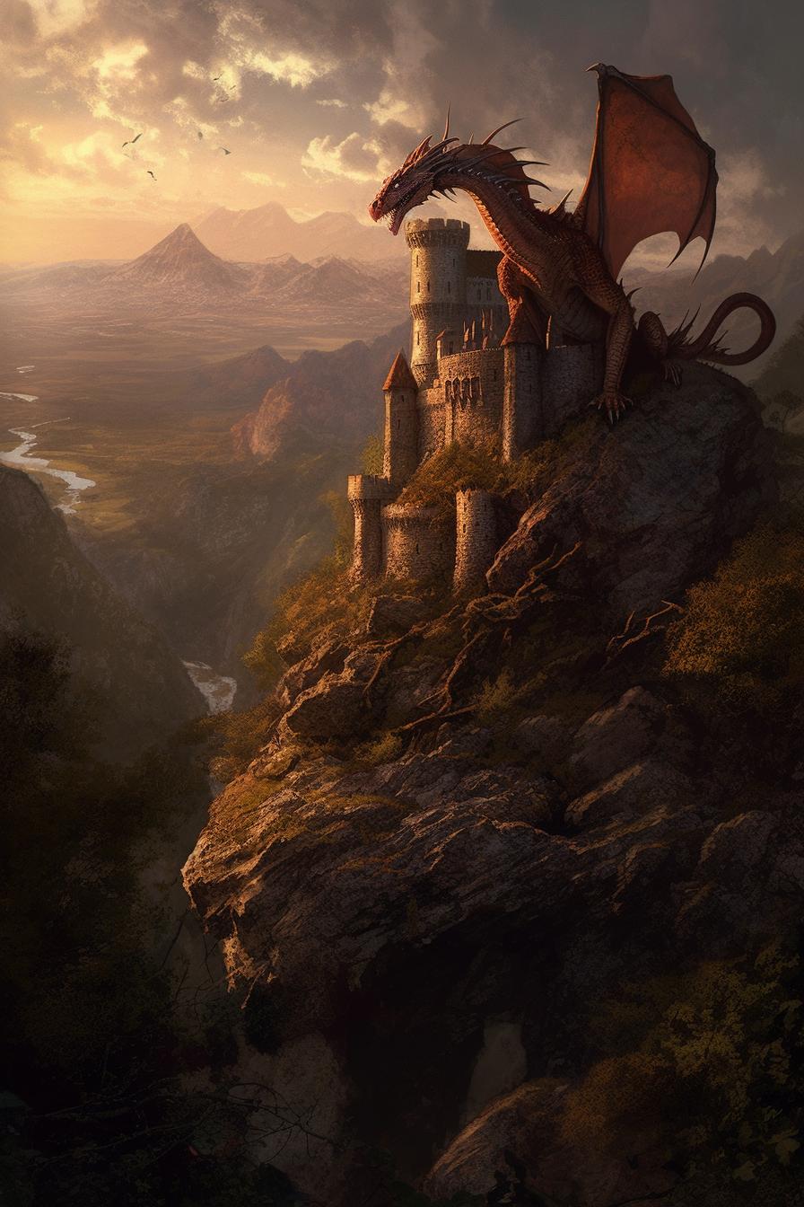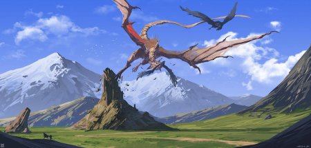 Эта коллекция переносит вас в мир эпических пейзажей, где могучие драконы становятся органичной частью природных ландшафтов. Каждый арт представляет собой тщательно продуманную композицию, где древние существа взаимодействуют с окружающей средой: драконы, отдыхающие на горных вершинах, парящие над бурными морями или охраняющие древние леса. Изображения сочетают реалистичность природных элементов с фантастическими существами, создавая ощущение живого мира, полного чудес и опасностей. Особое внимание уделено масштабу - крошечные человеческие фигурки на фоне гигантских созданий подчеркивают величие драконов. Коллекция включает разнообразные стили: от детализированных реалистичных иллюстраций до более стилизованных цифровых работ. Эти пейзажи идеально передают атмосферу героического фэнтези, где природа и мифические существа существуют в гармоничном балансе.