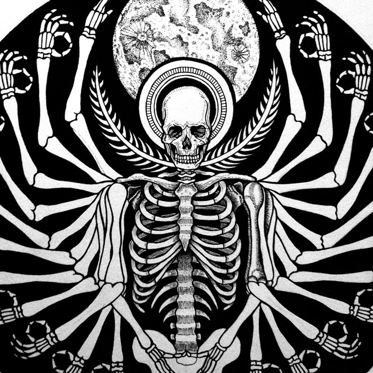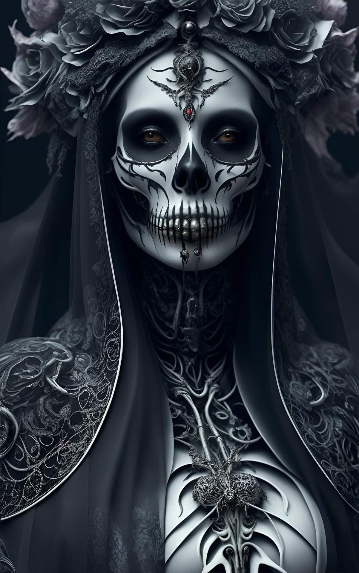 В этой коллекции скелет предстает как символ бренности жизни. Каждый арт показывает композиции: в гробницах, с атрибутами, в абстрактных формах. Изображения передают атмосферу размышлений о смерти. Особое внимание уделено деталям: костям, теням, символике. Эти иллюстрации вдохновляют на философские размышления о жизни, времени и неизбежности.