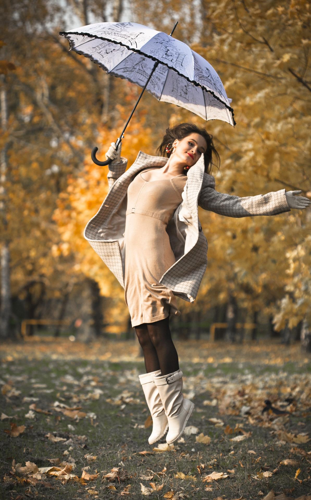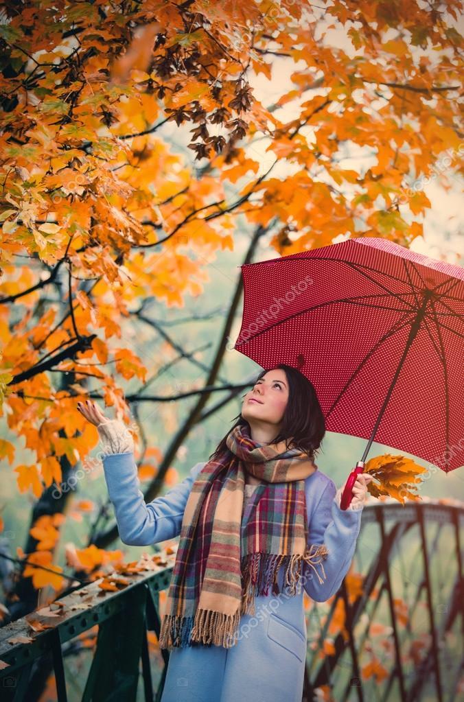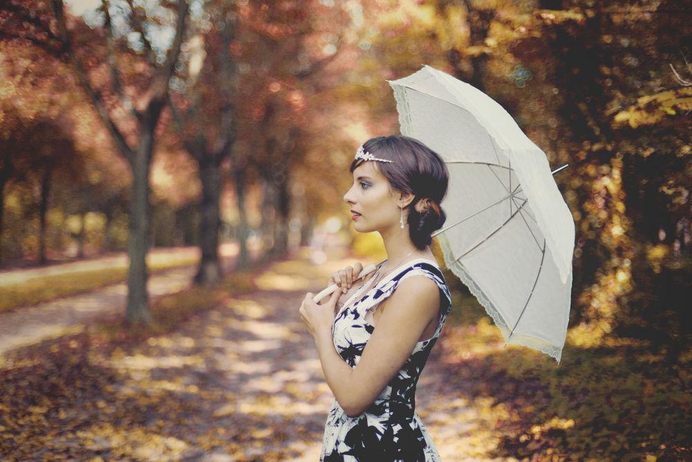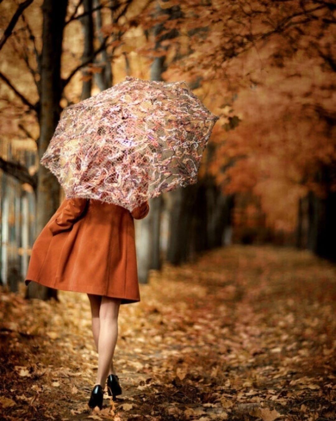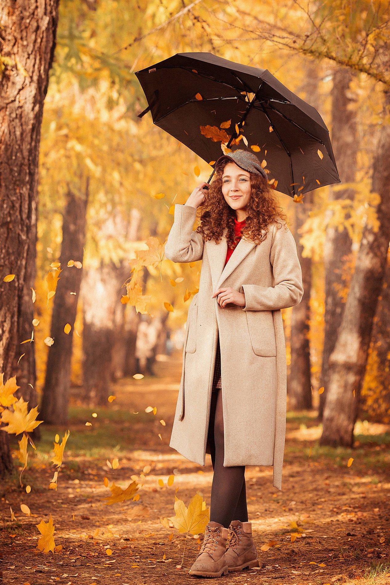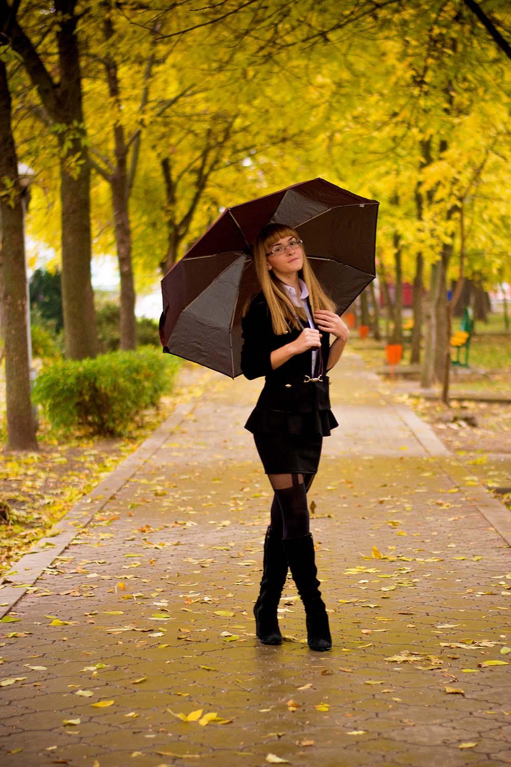 Девушки с зонтами осенью