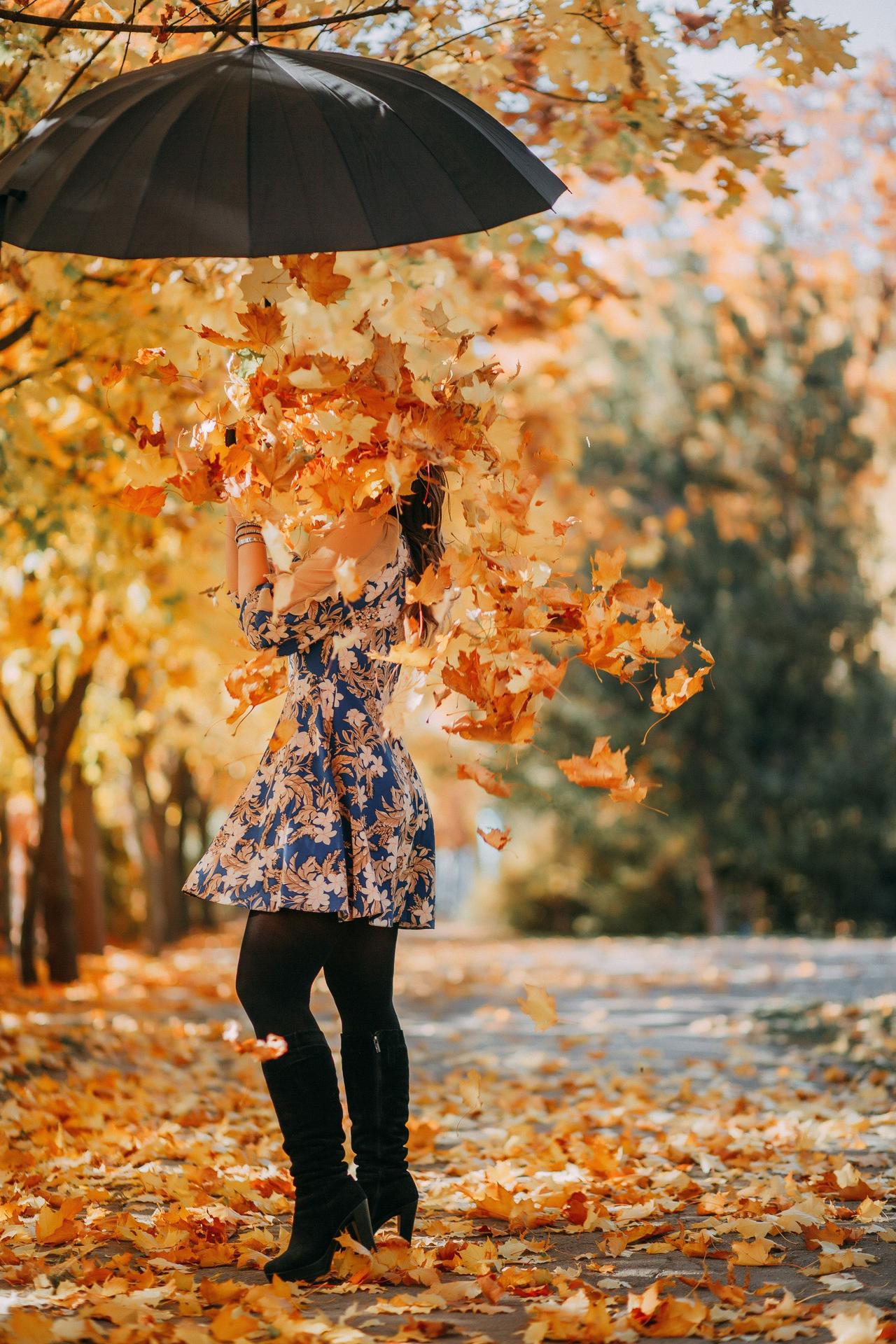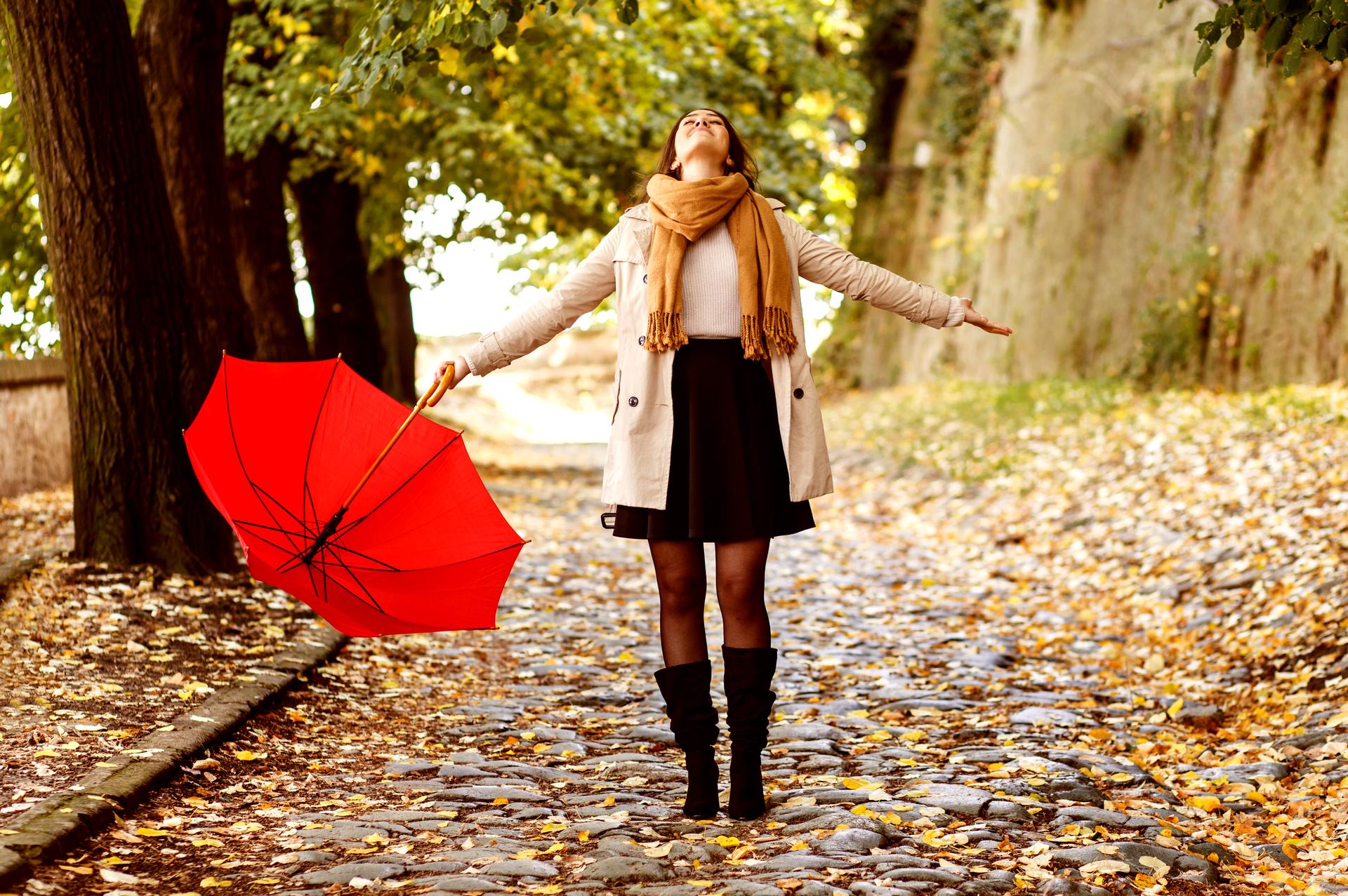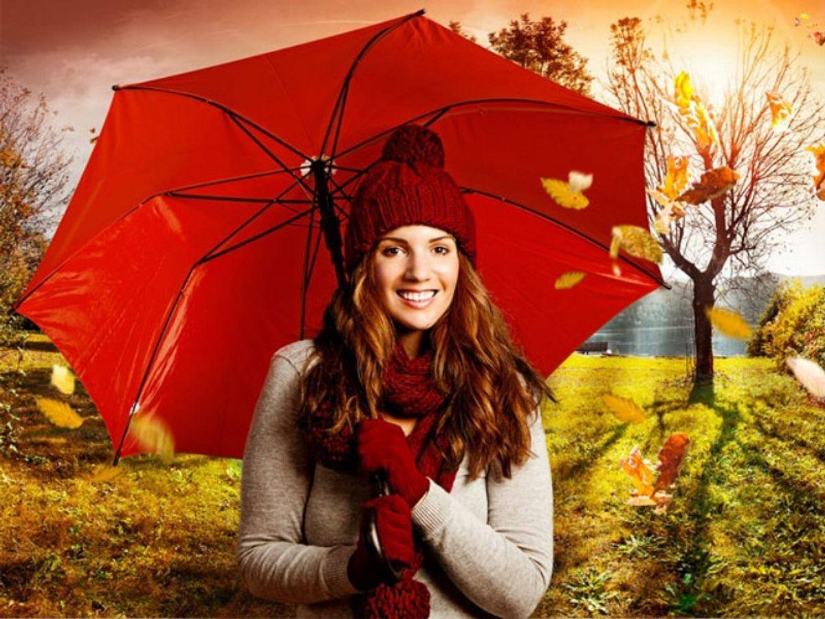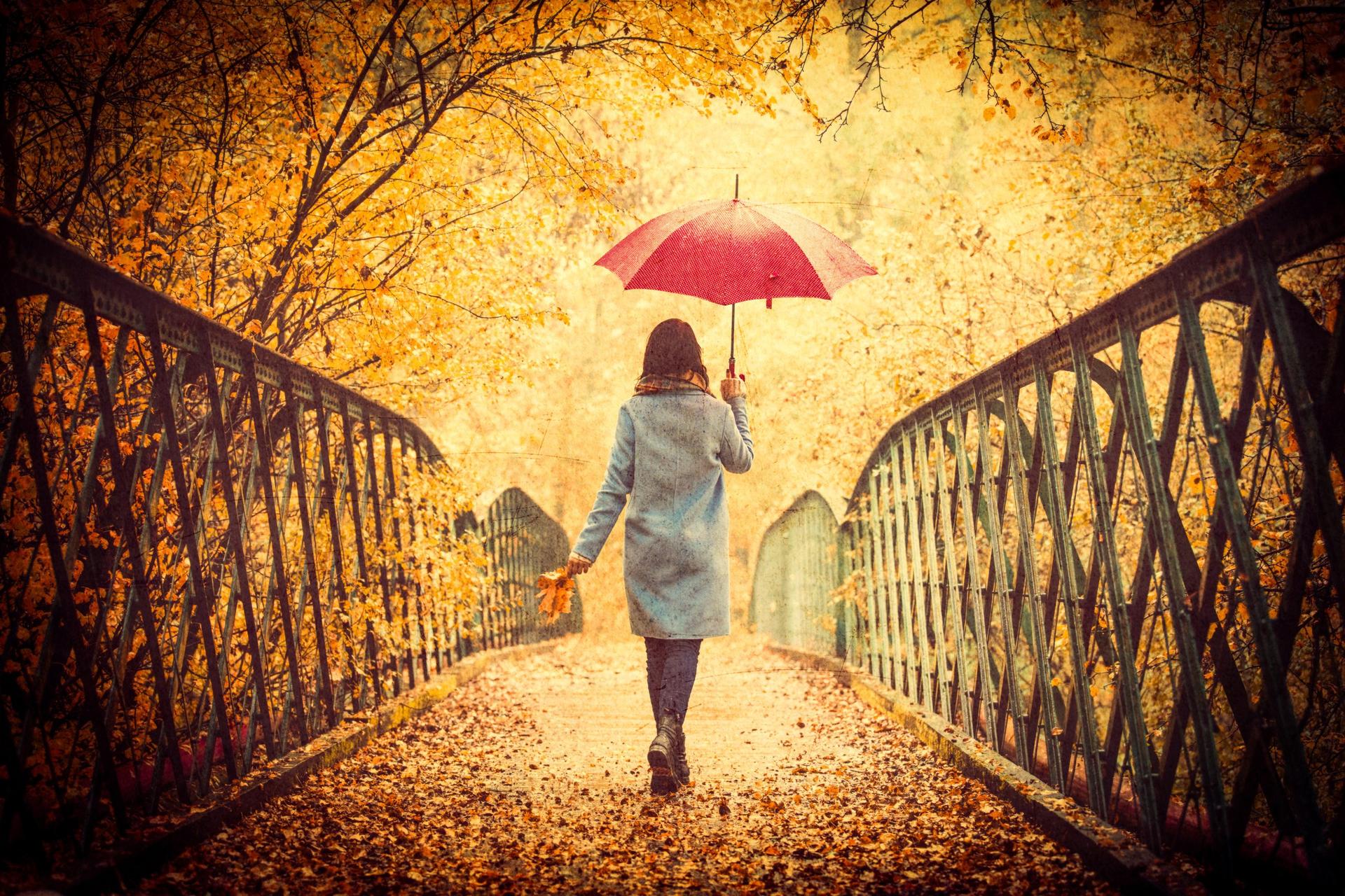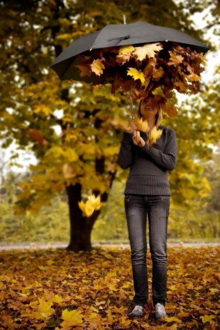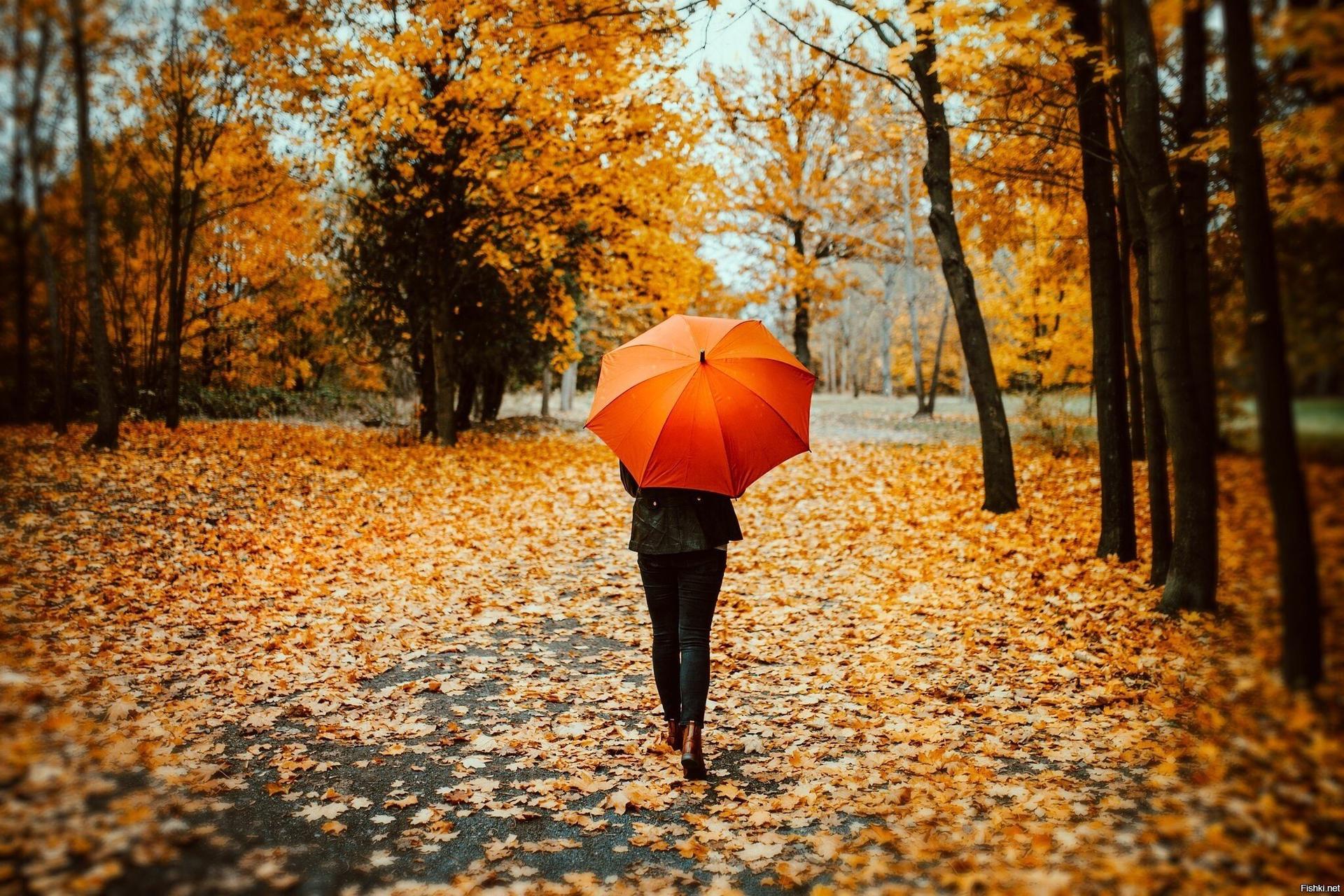 Девушки с зонтами осенью