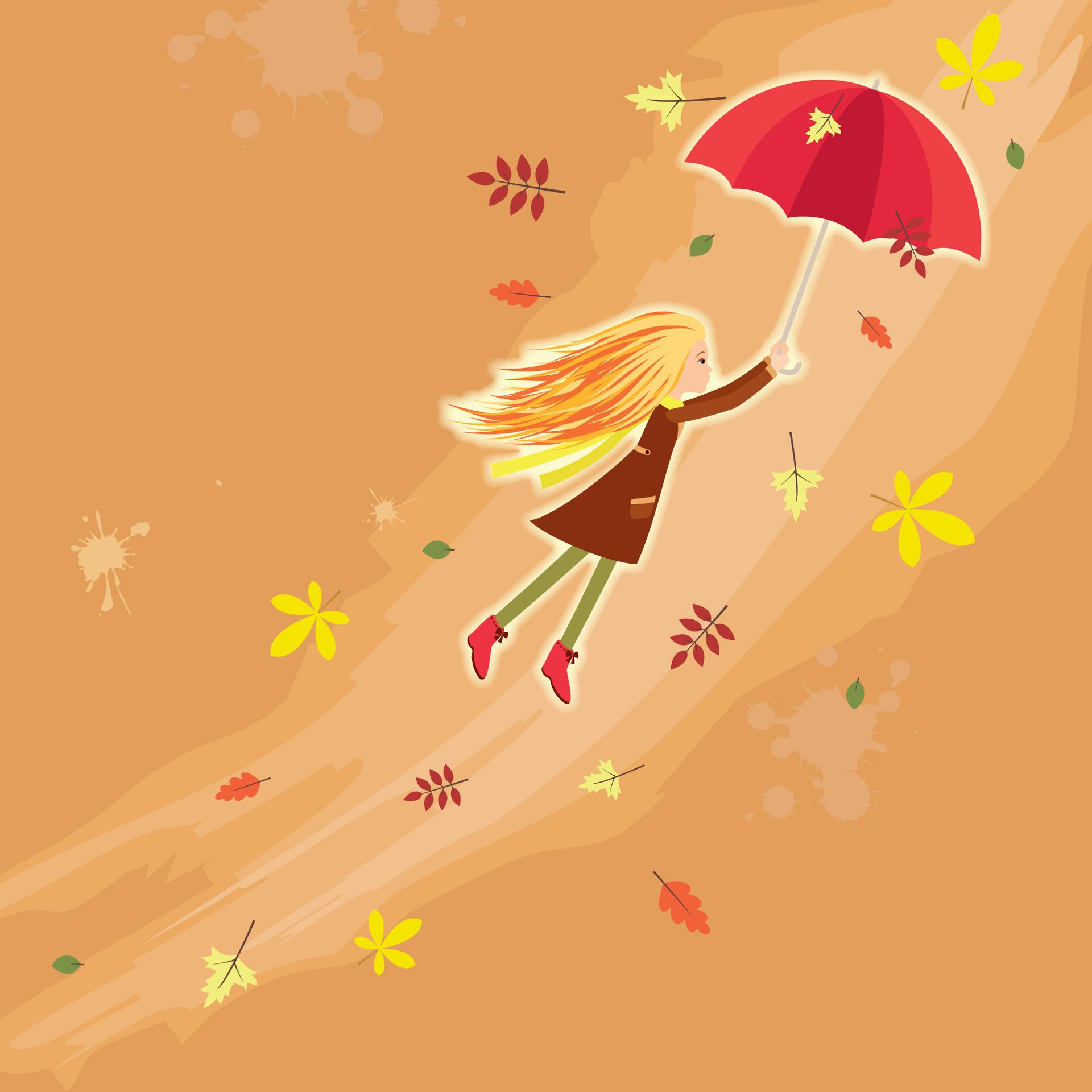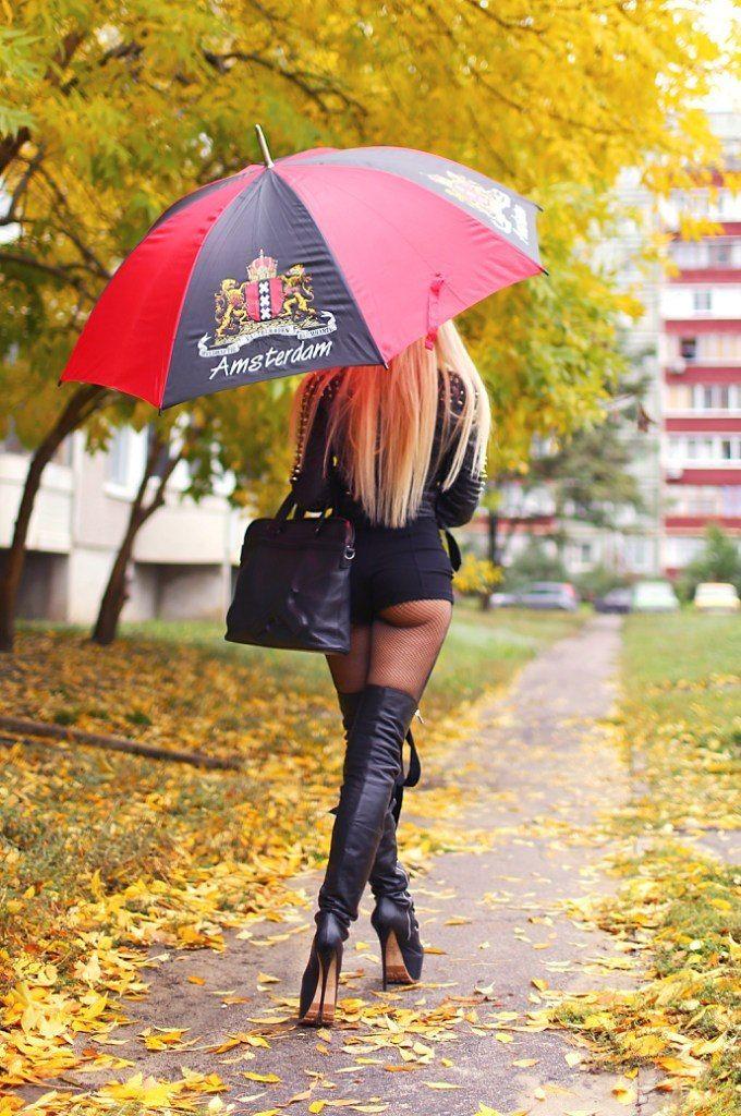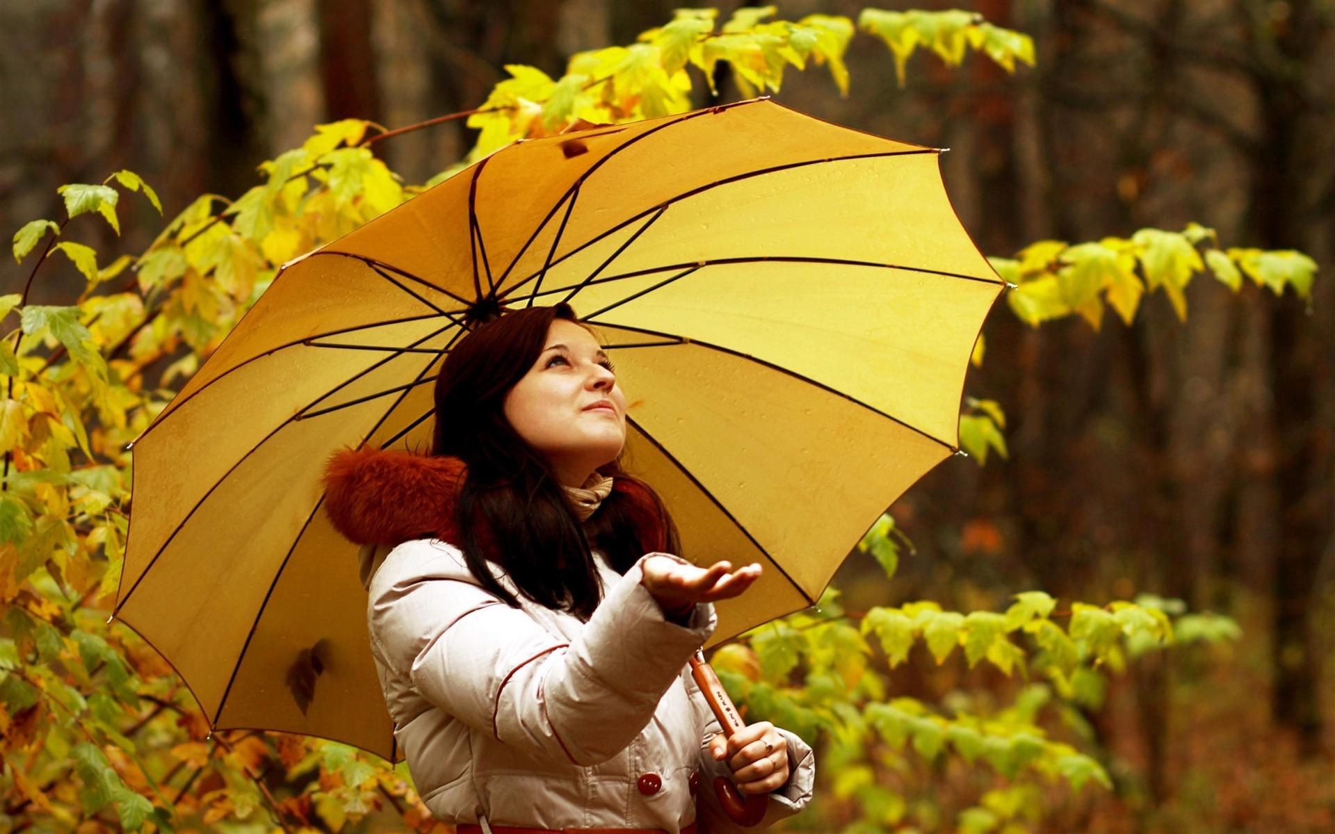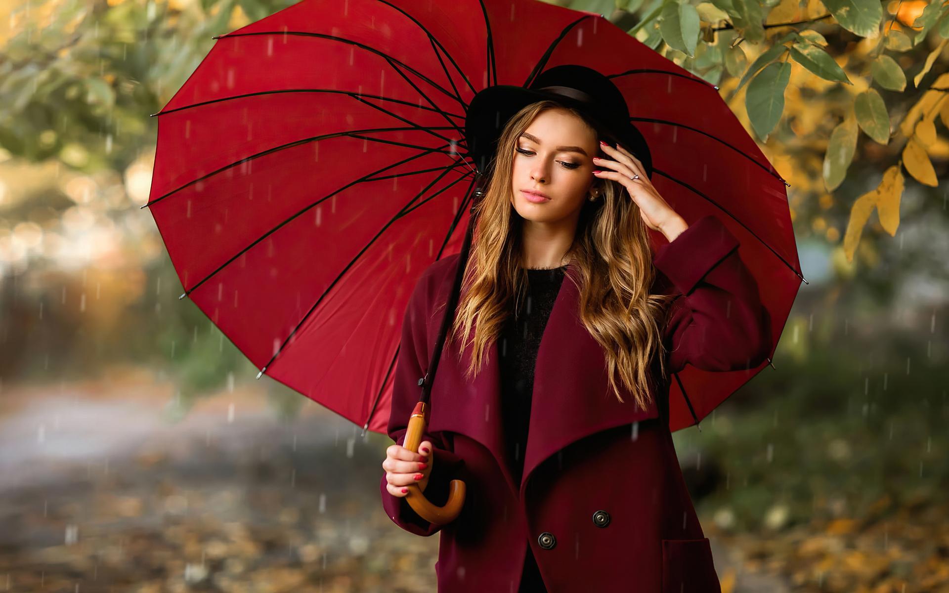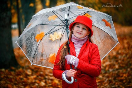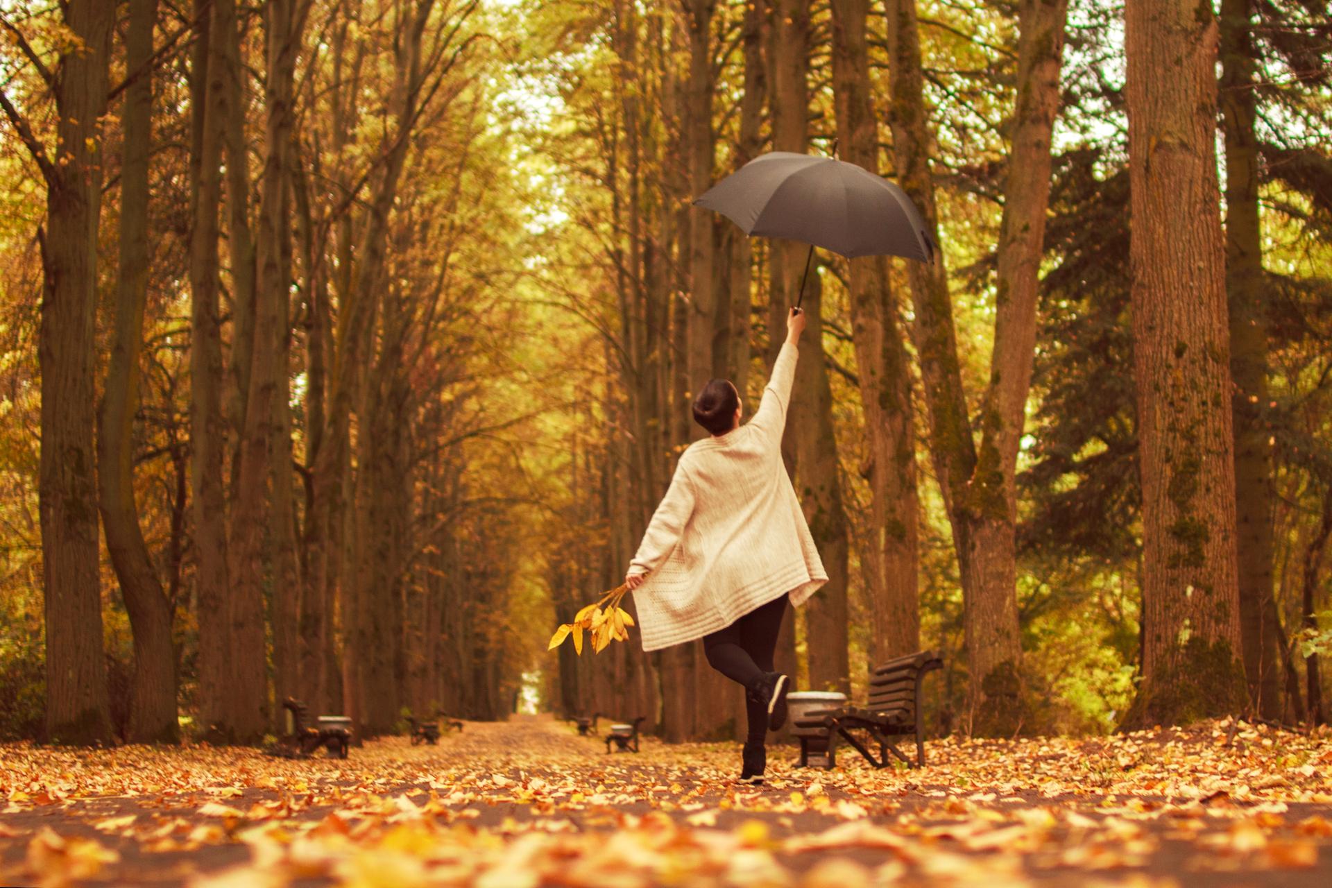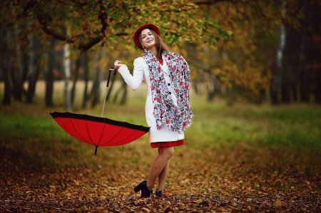 Девушки с зонтами осенью