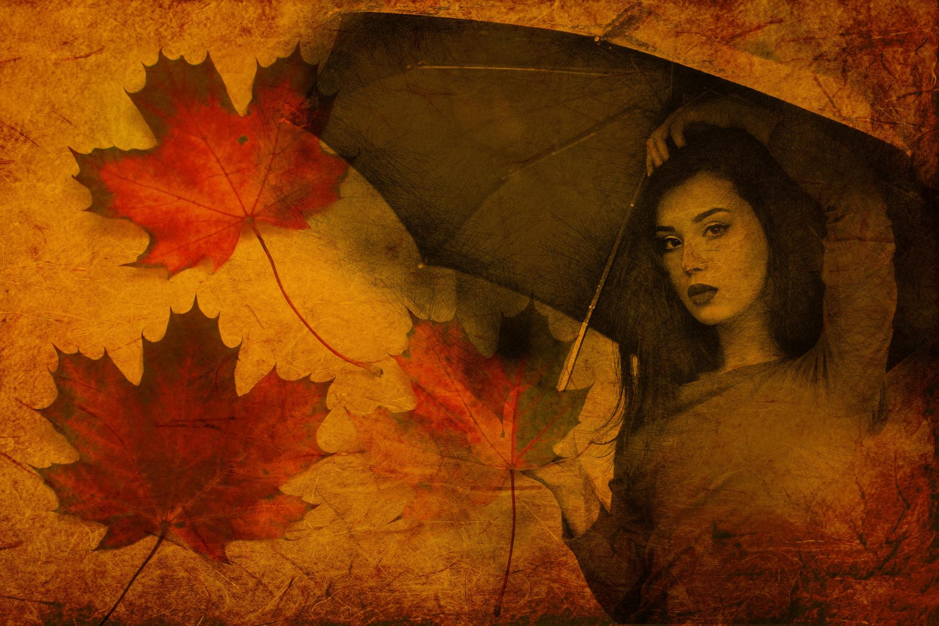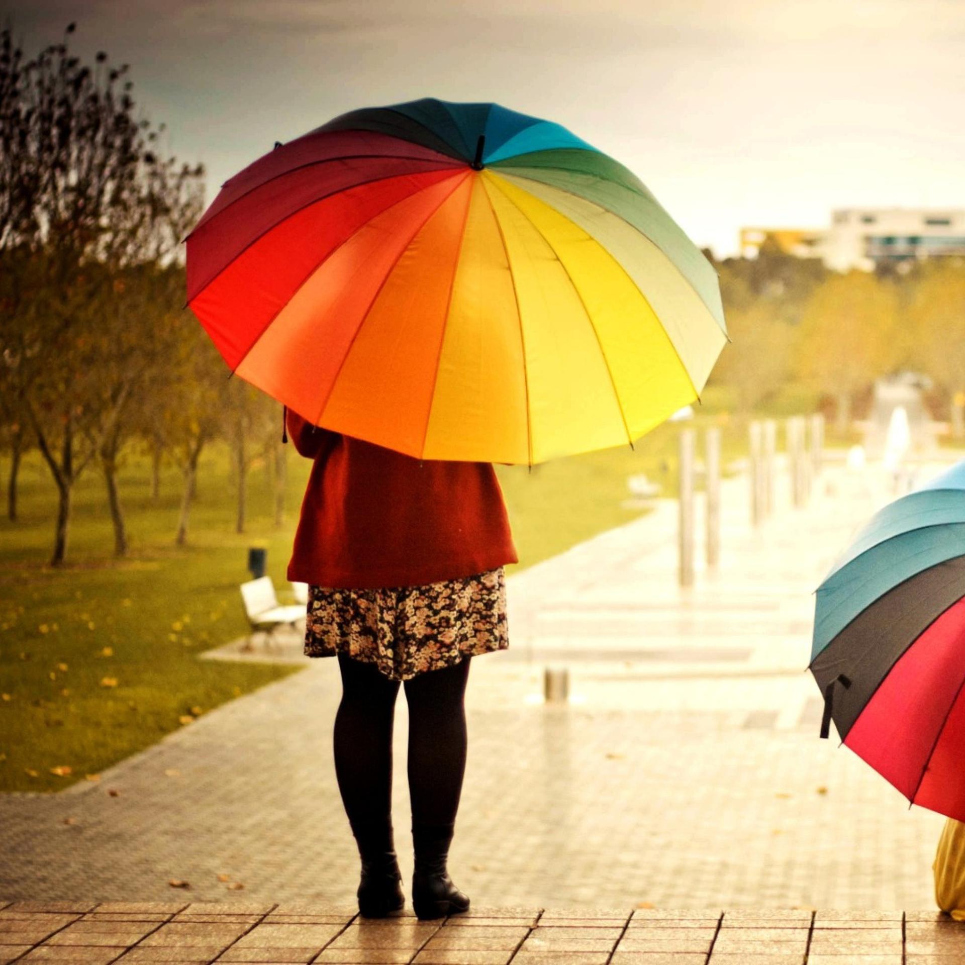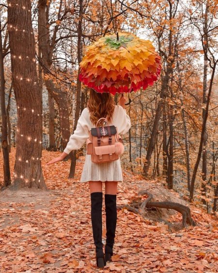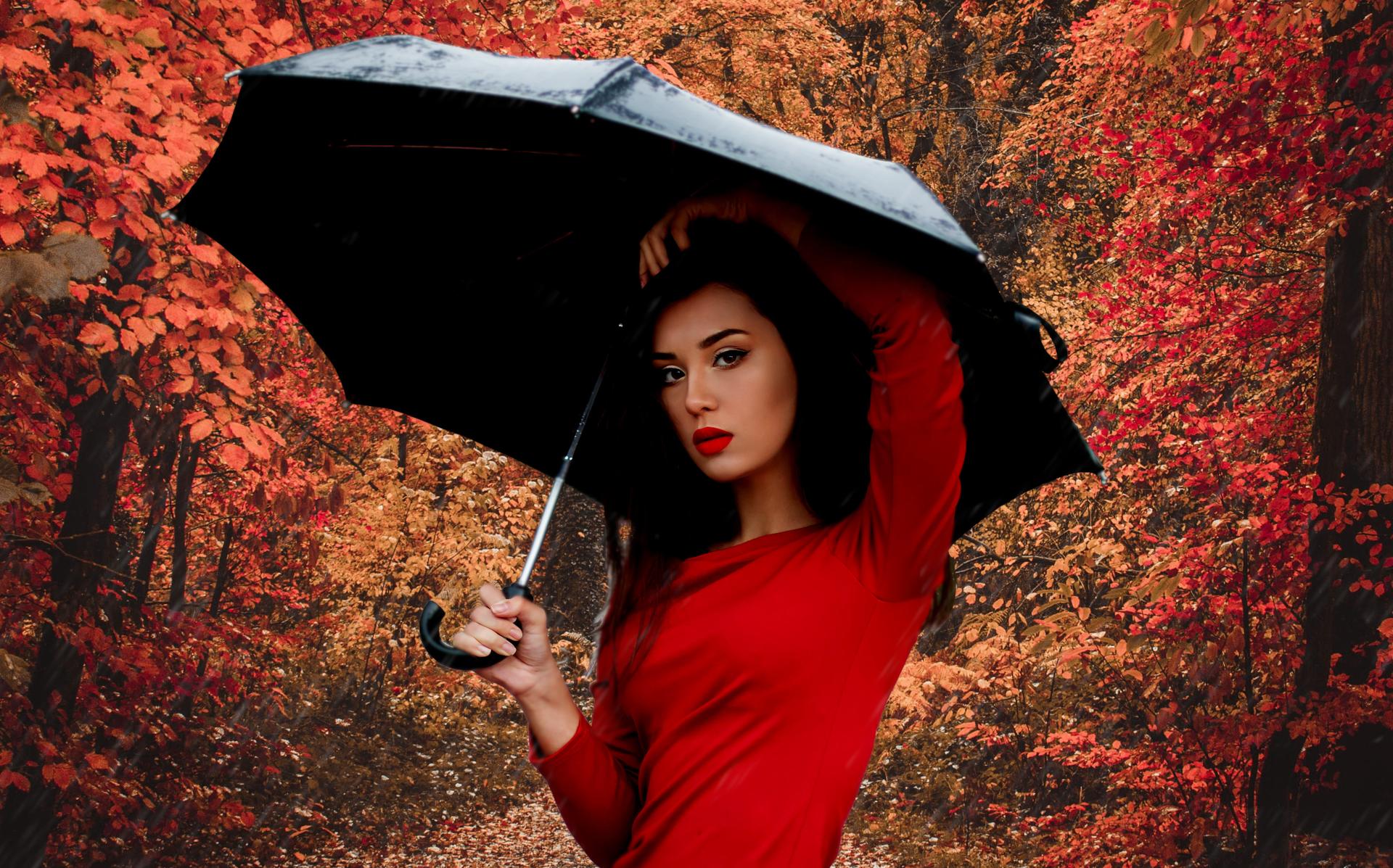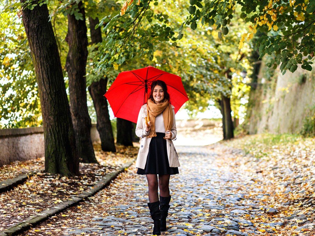 Девушки с зонтами осенью