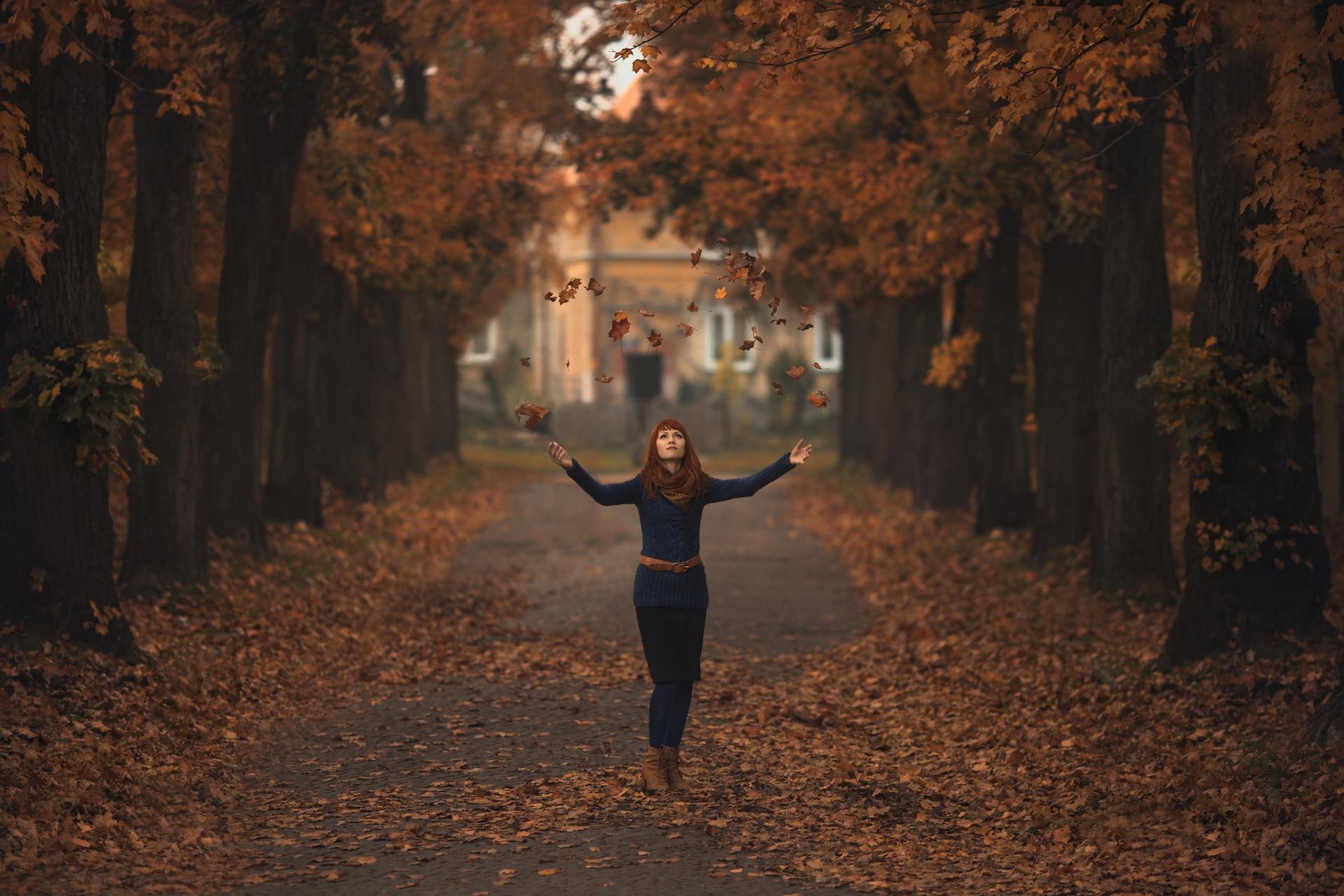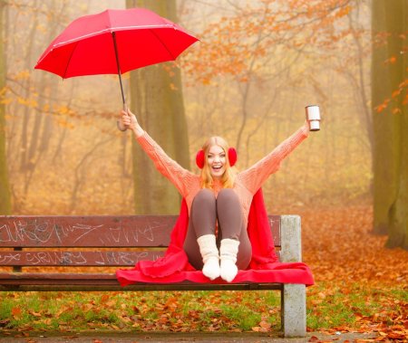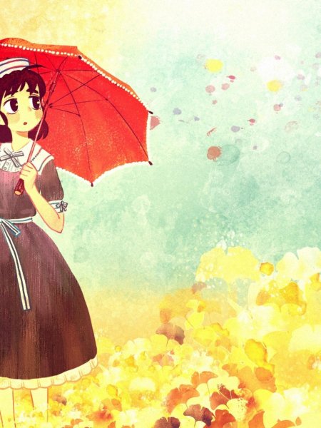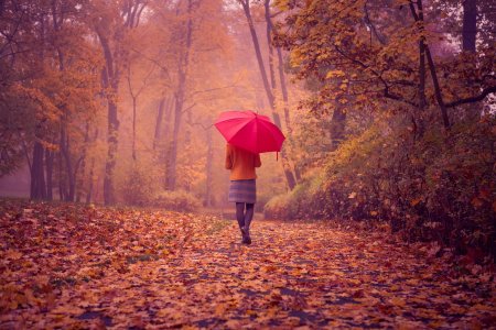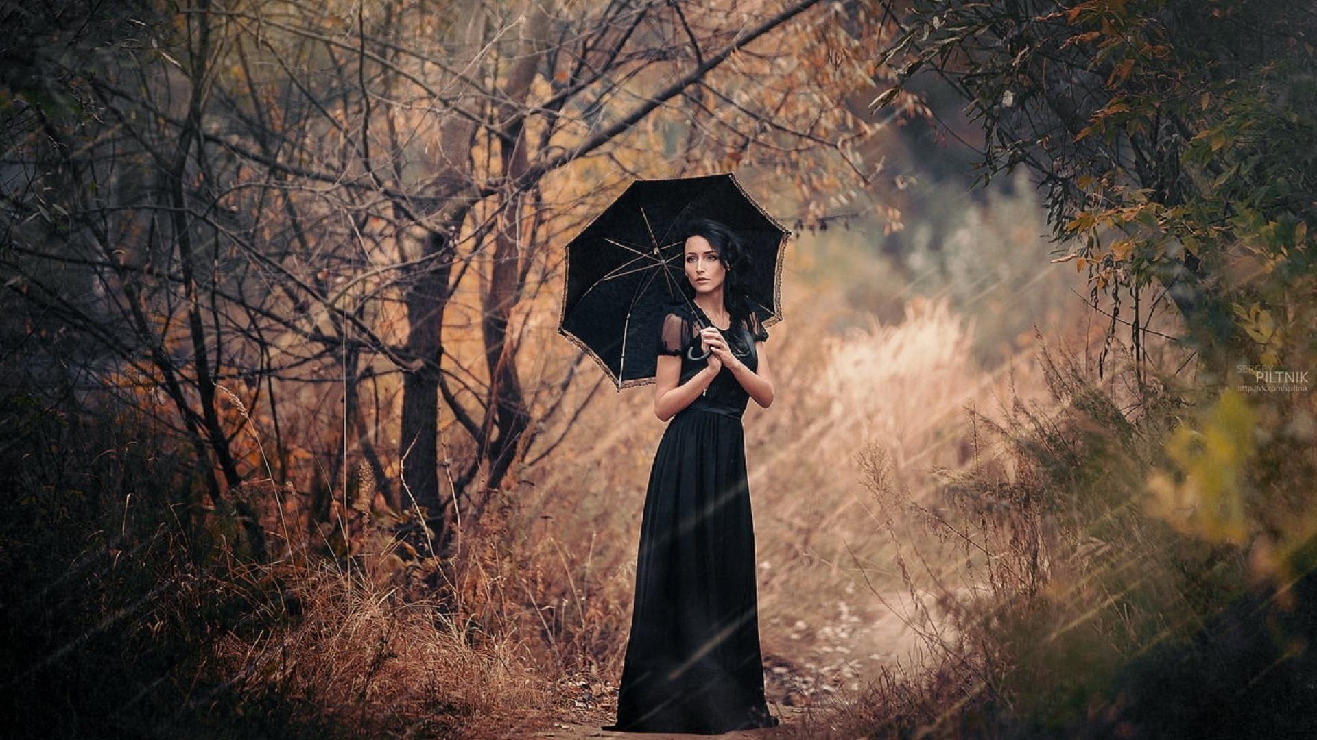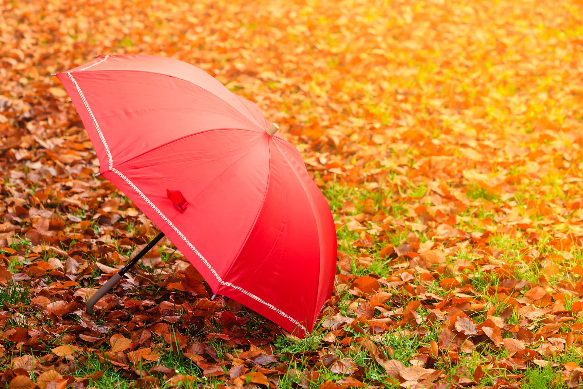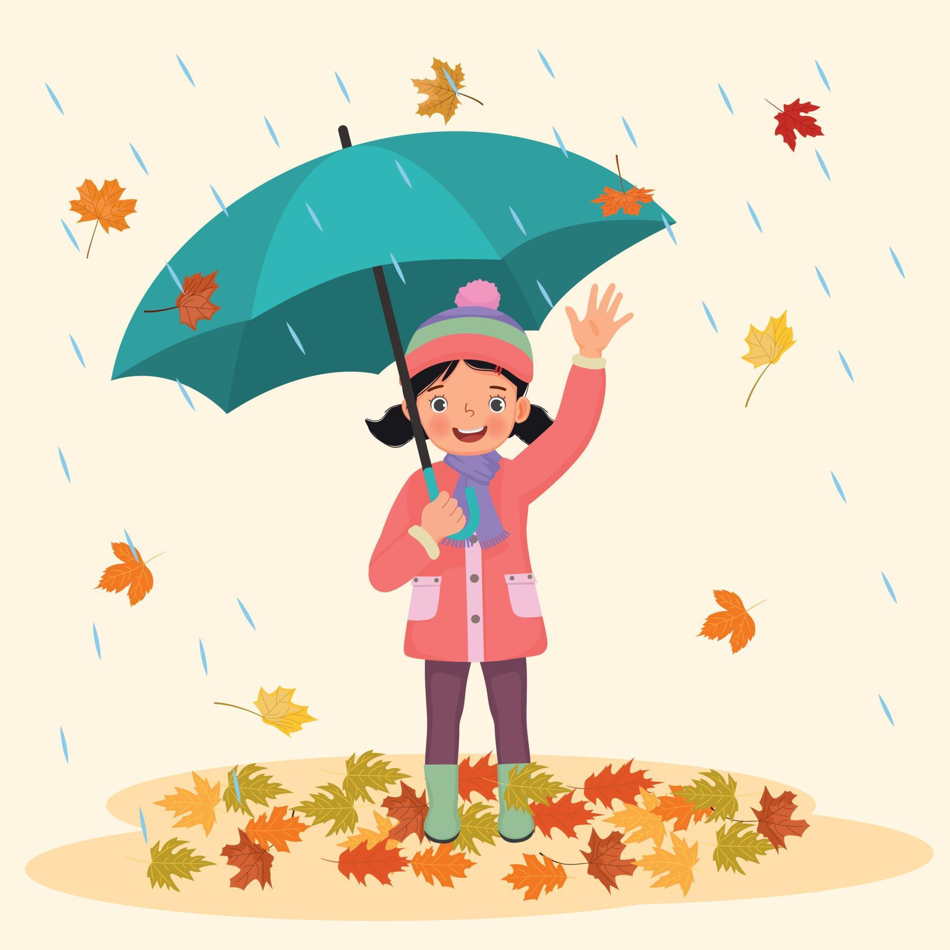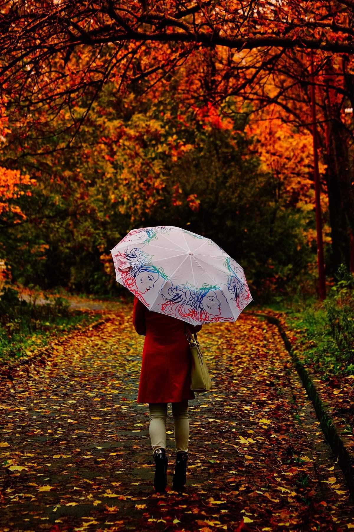 Девушки с зонтами осенью