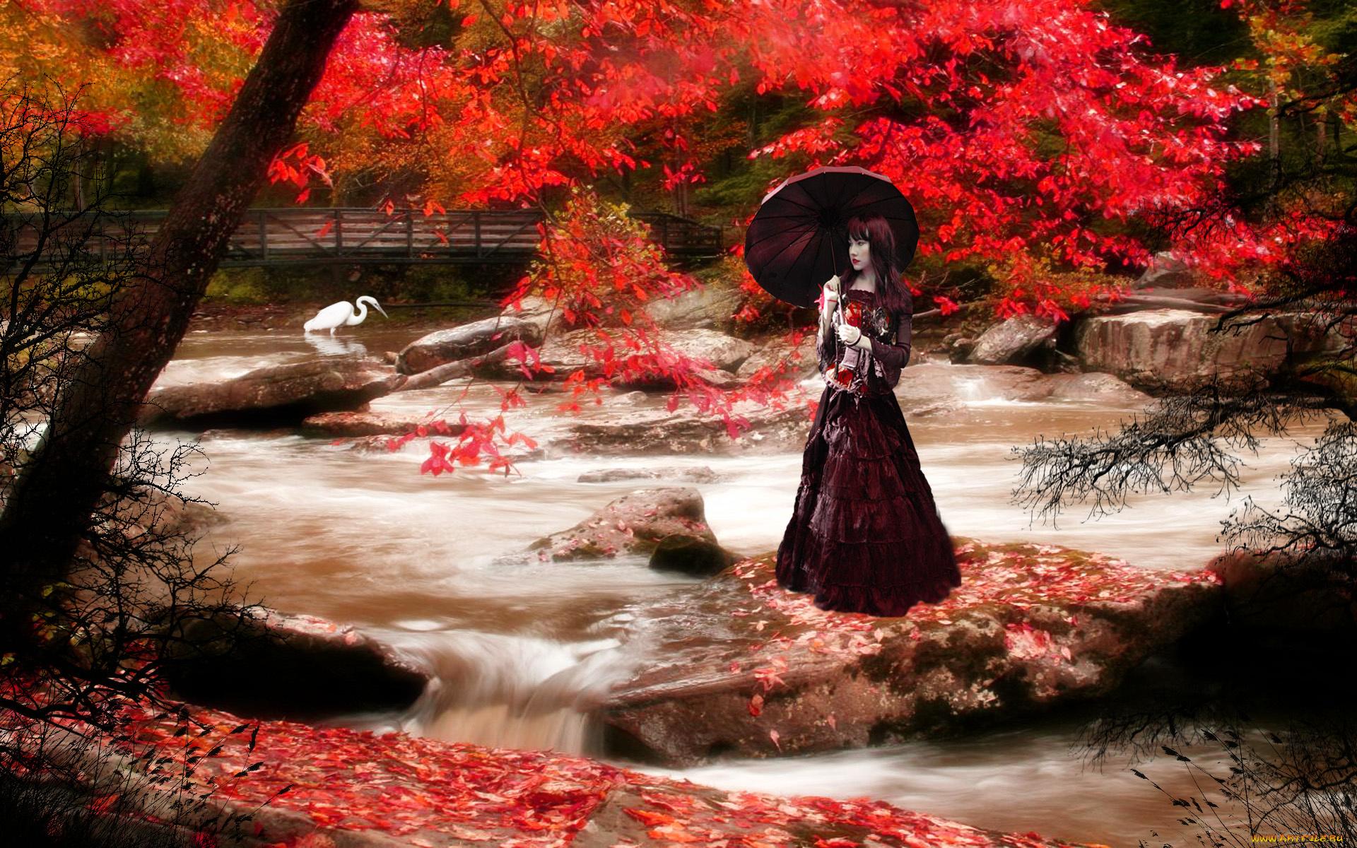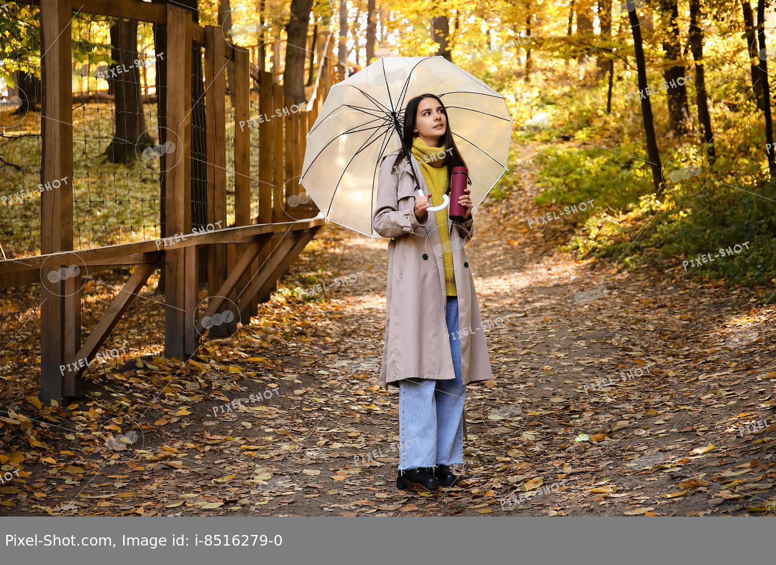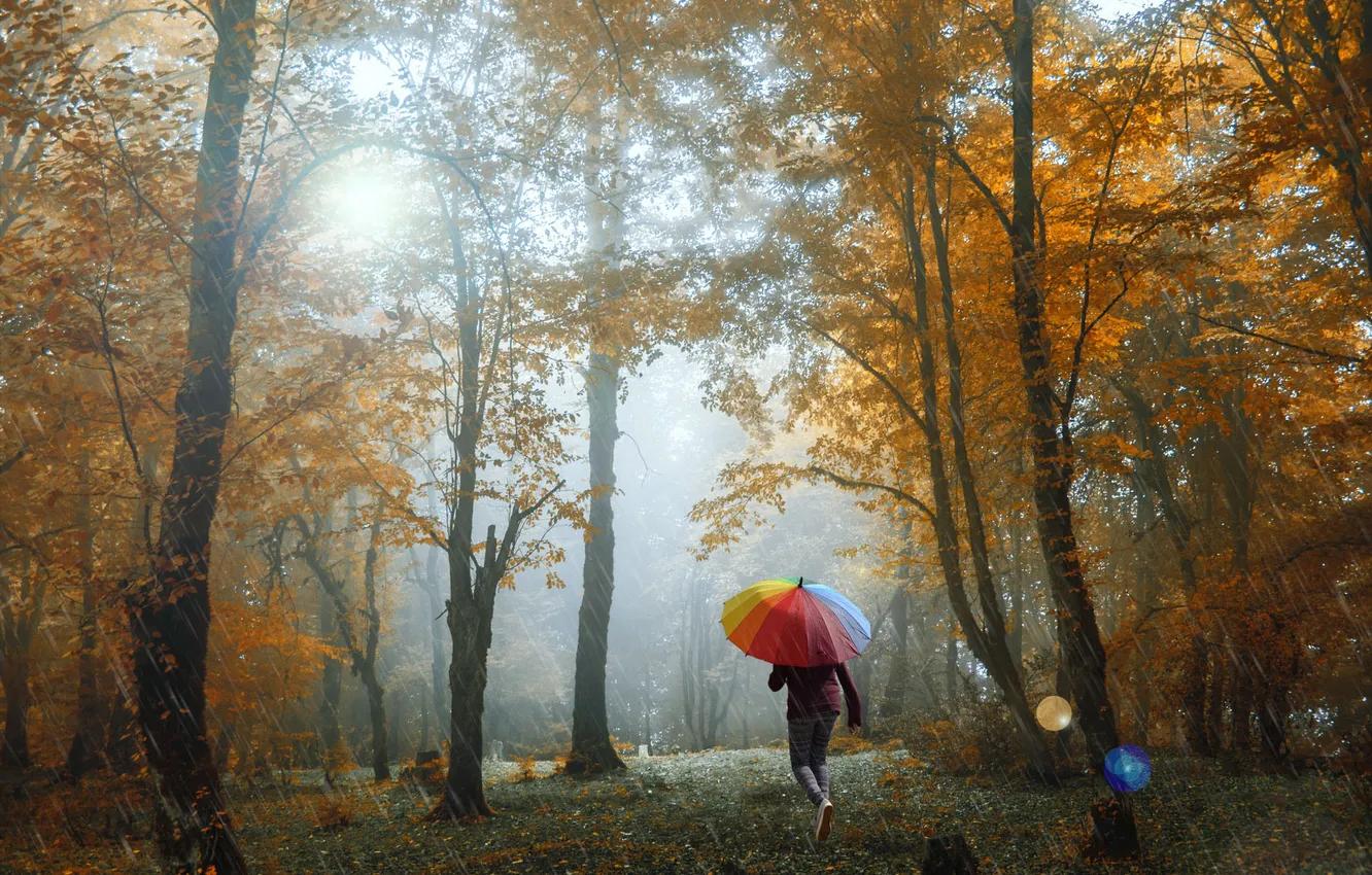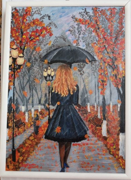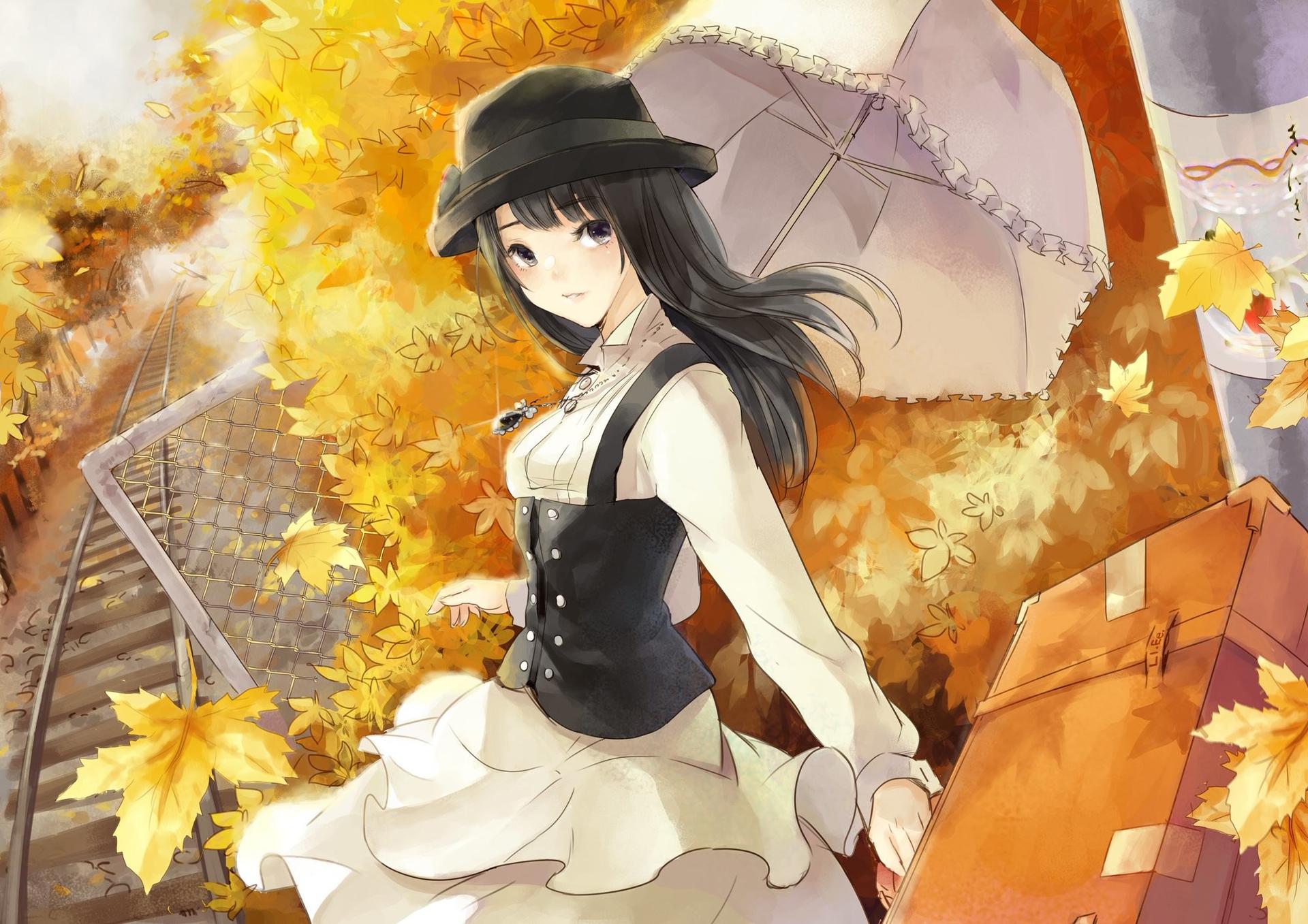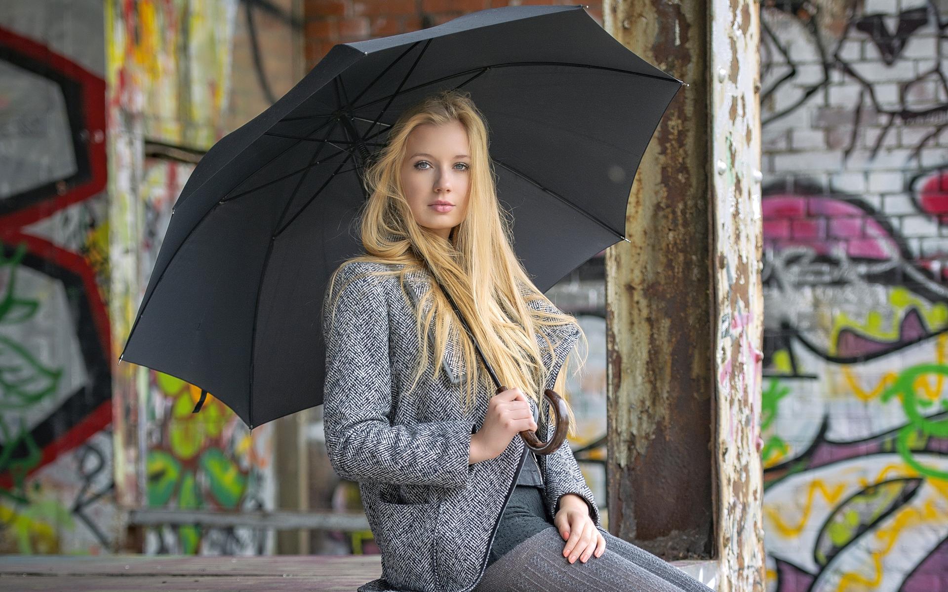 Девушки с зонтами осенью