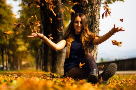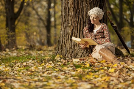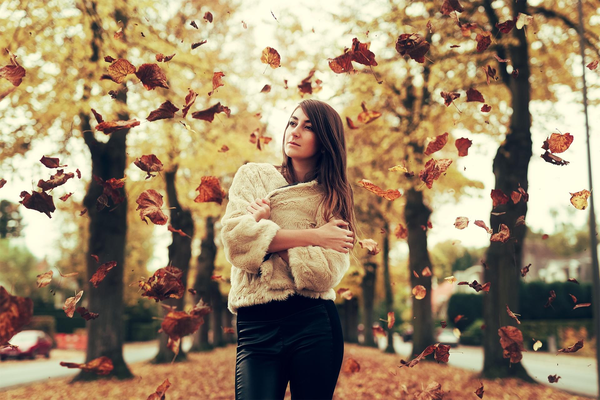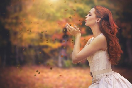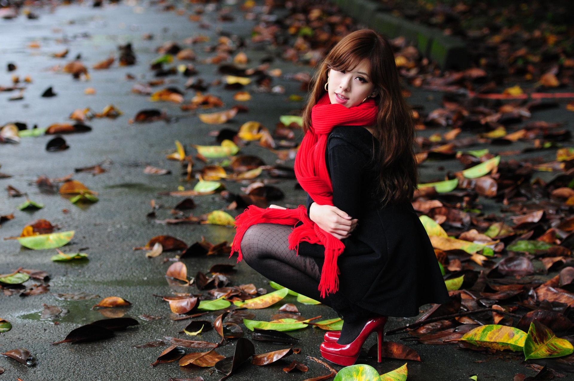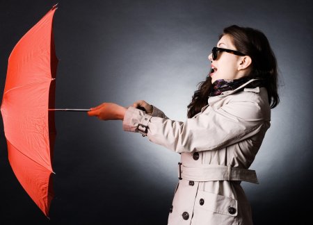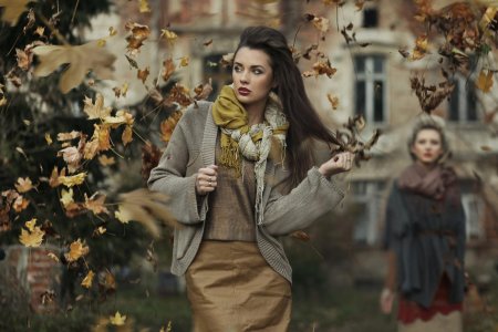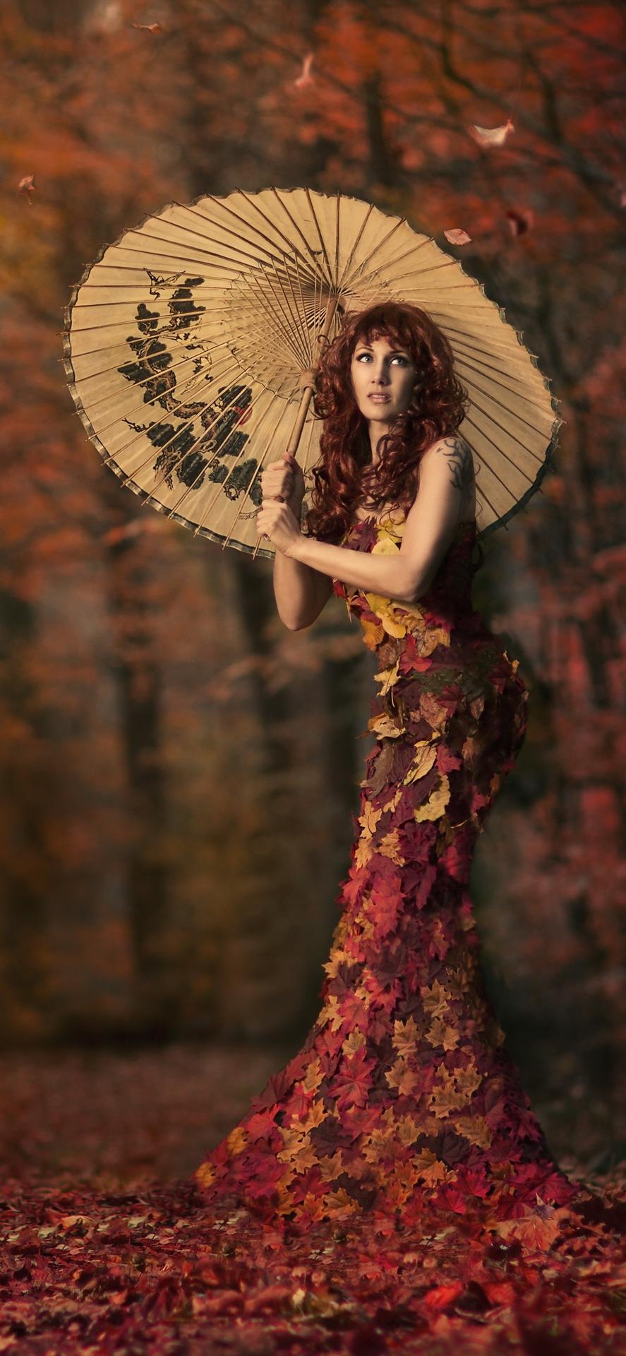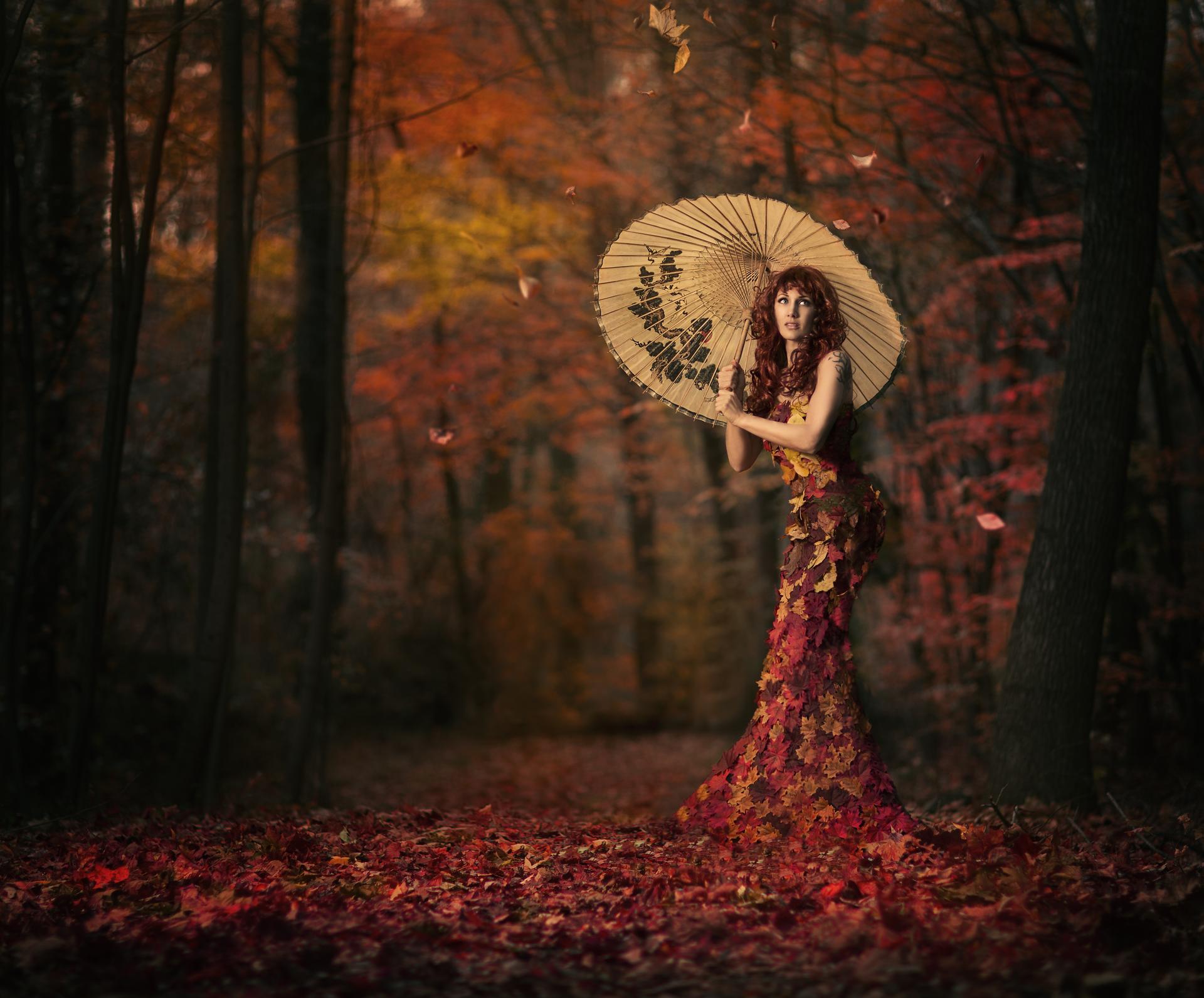 Девушки с зонтами осенью