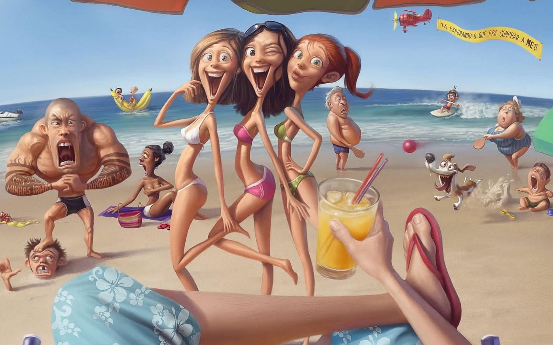 Девушки на пляжах в арте