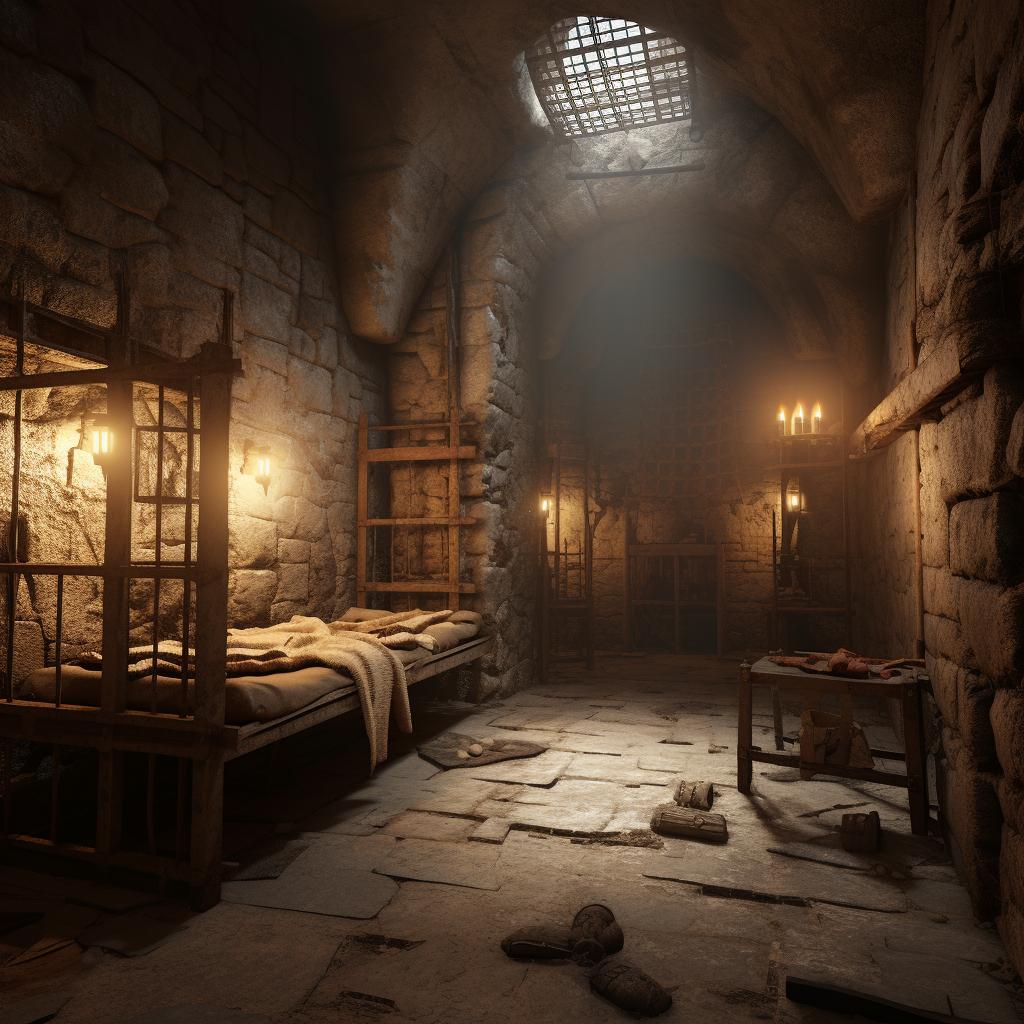 Темницы хранят истории страданий и надежд. Иллюстрации передают атмосферу изоляции и борьбы за свободу в замкнутых пространствах.