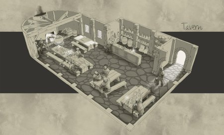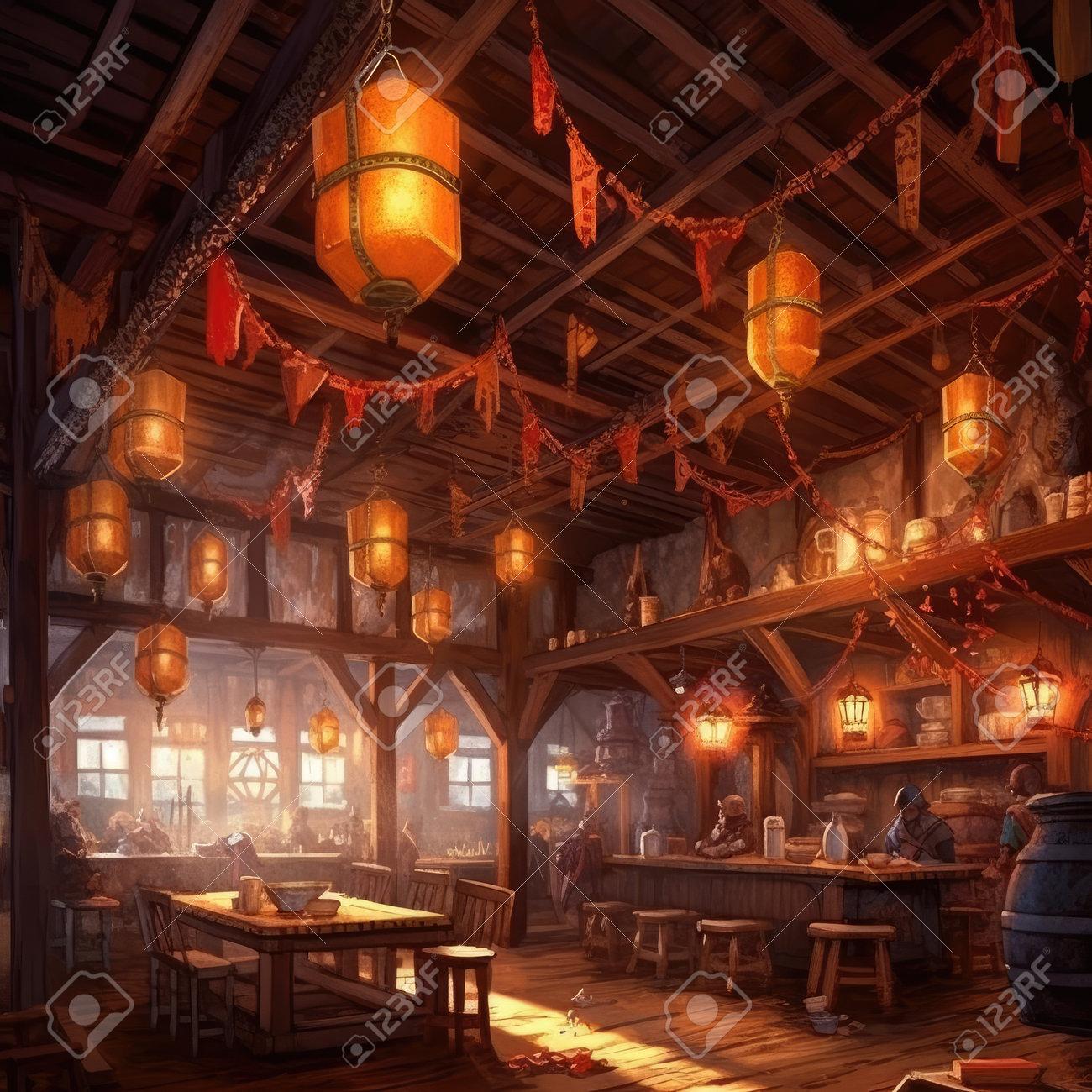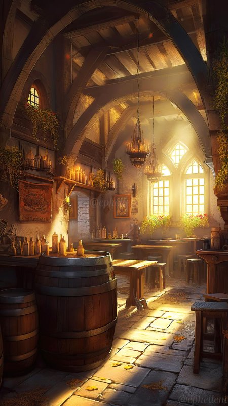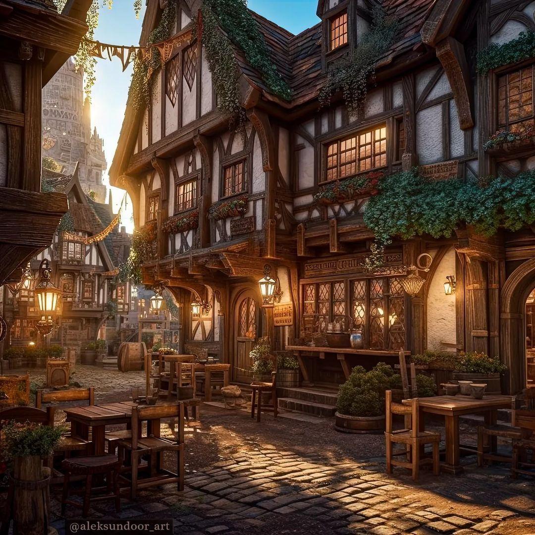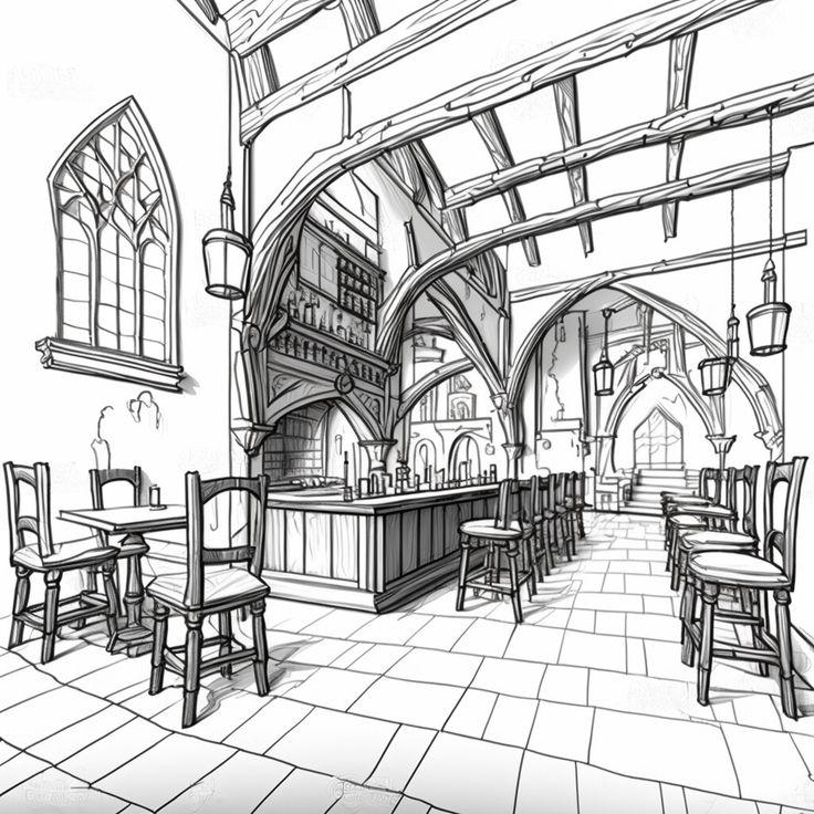 Средневековые трактиры оживают в детализированных иллюстрациях. Каждая работа передает дух эпохи Возрождения и рыцарских времен.