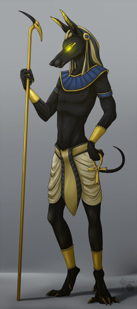 Анубис предстает в различных художественных воплощениях. Иллюстрации передают древнюю мифологию и культурное наследие Египта через образ шакалоголового бога.