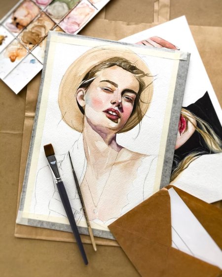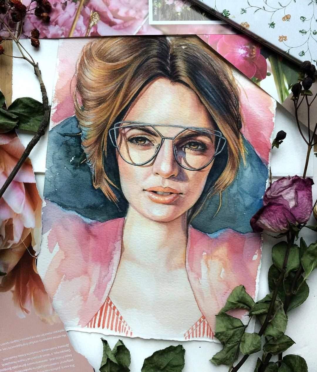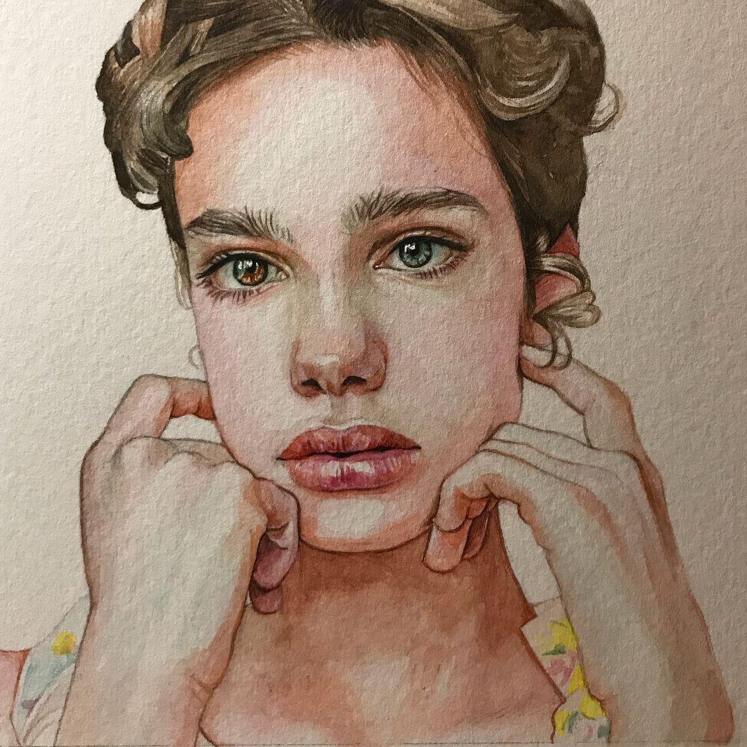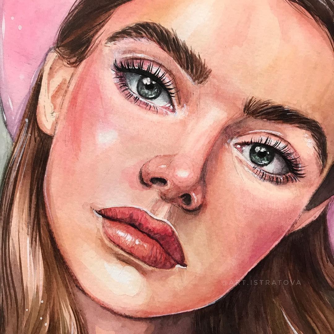 Портреты девушек акварелью