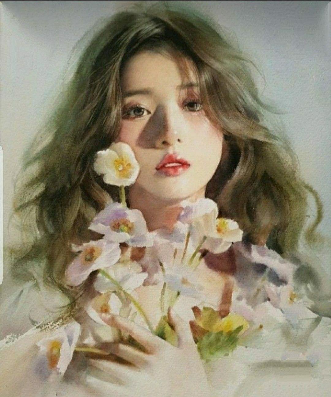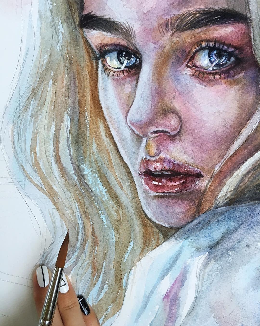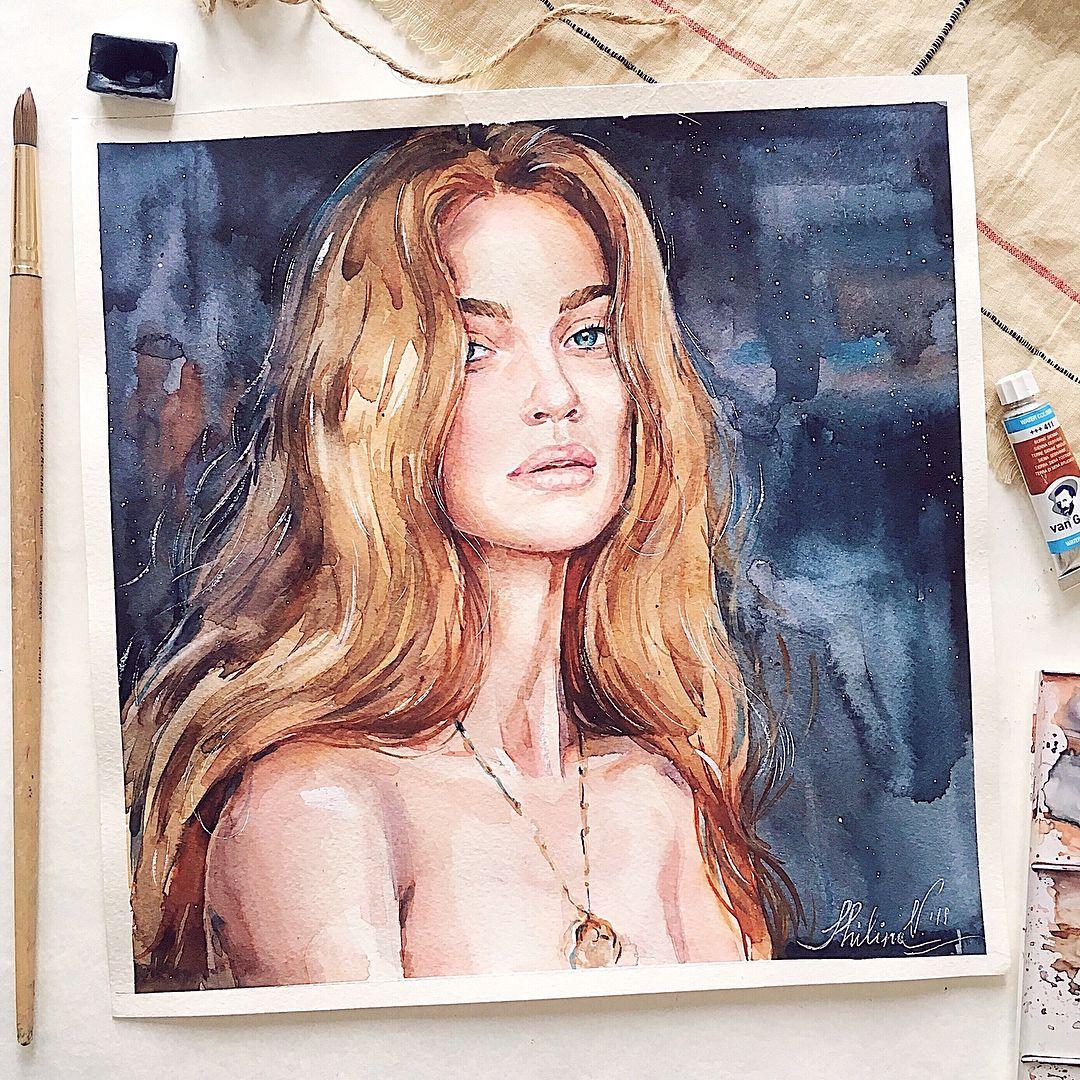 Портреты девушек акварелью