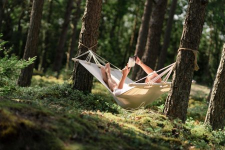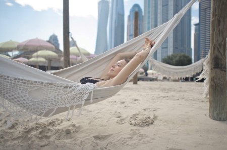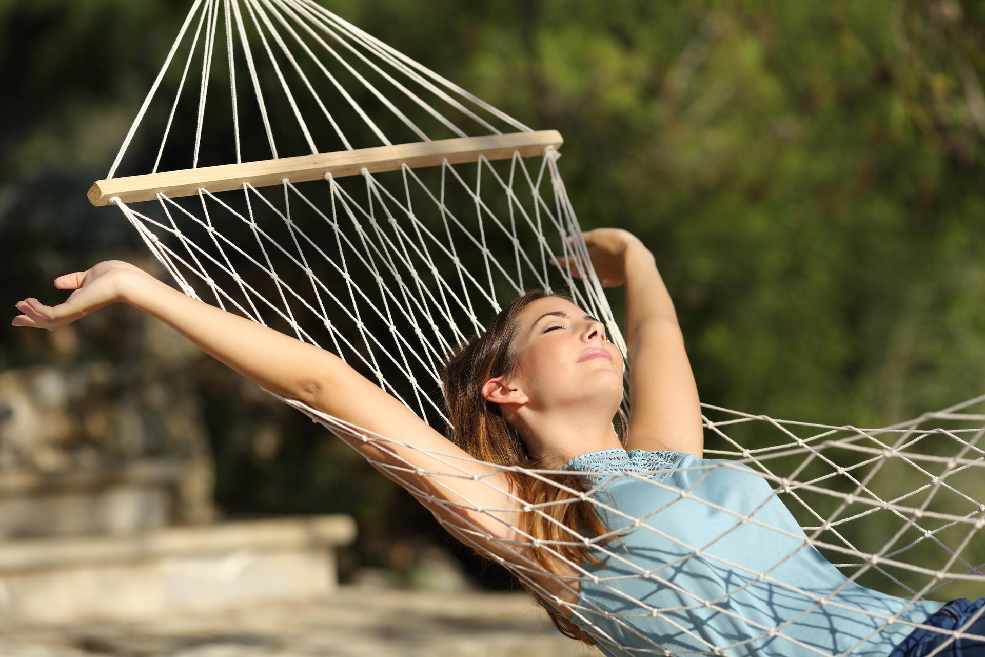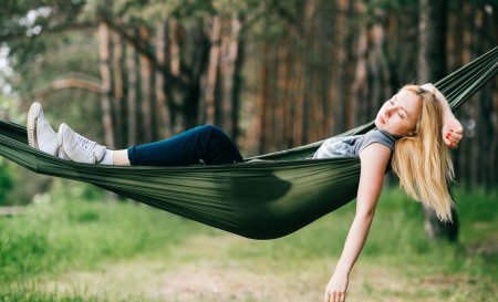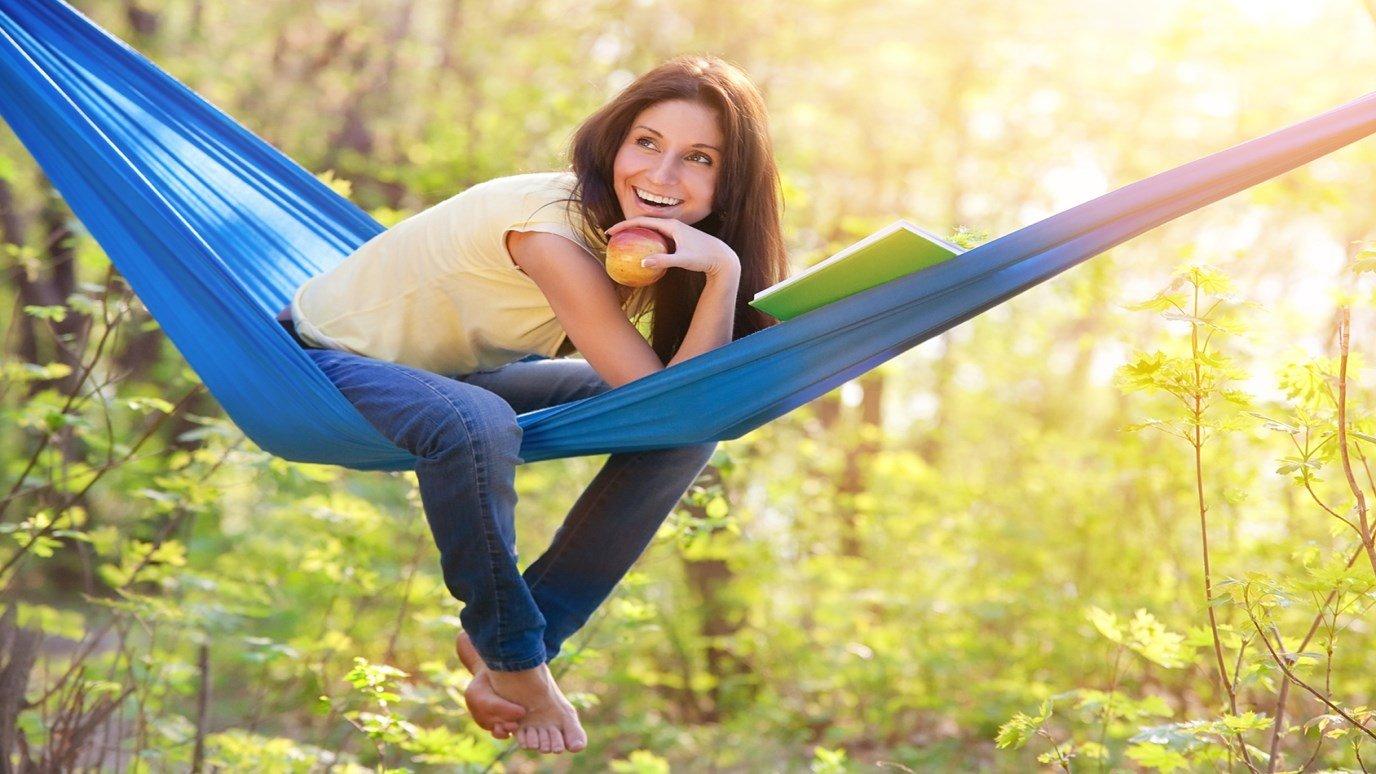 Гамаки ассоциируются с отдыхом и беззаботностью. Иллюстрации показывают девушек в моменты релаксации, подчеркивая важность отдыха в современной жизни.