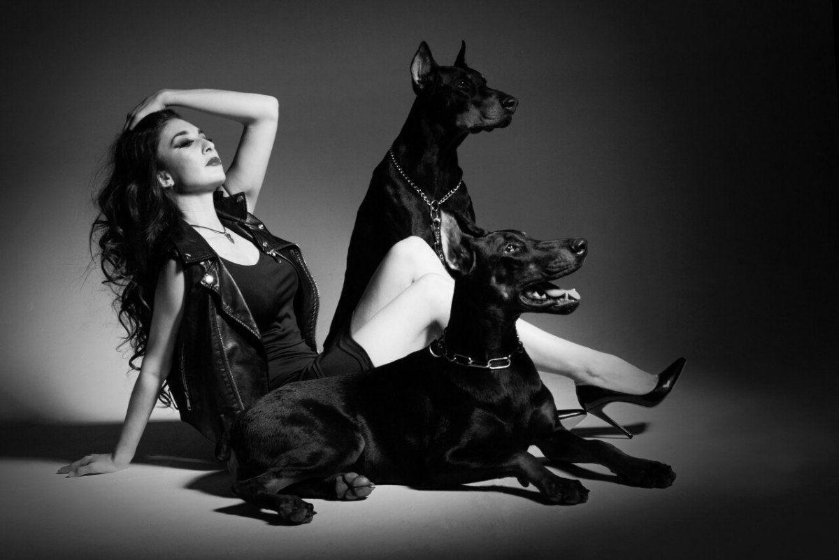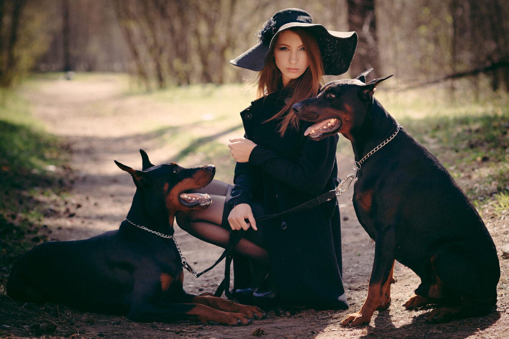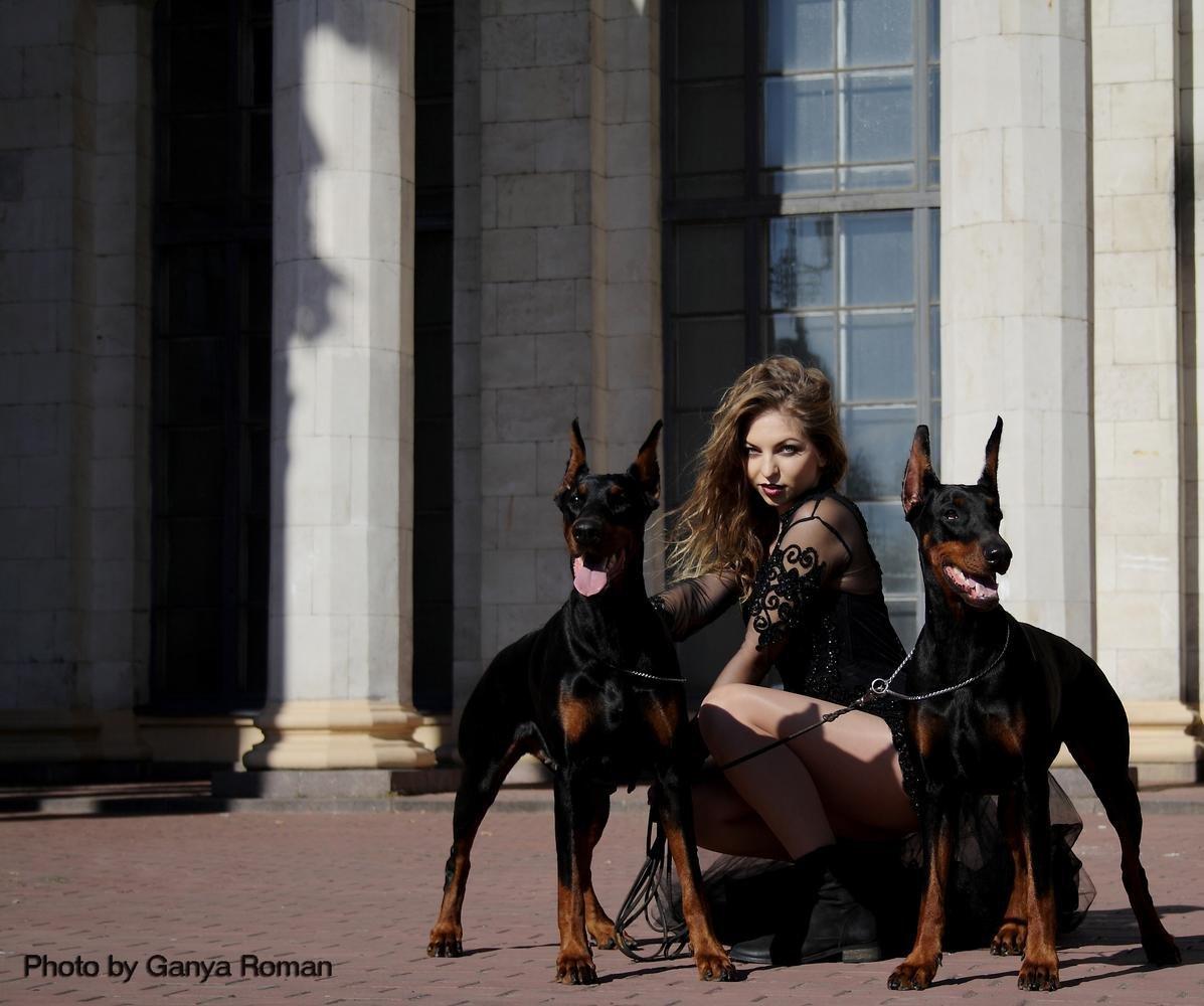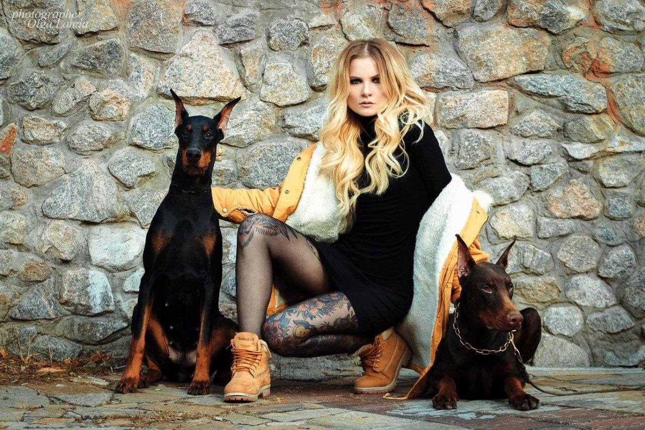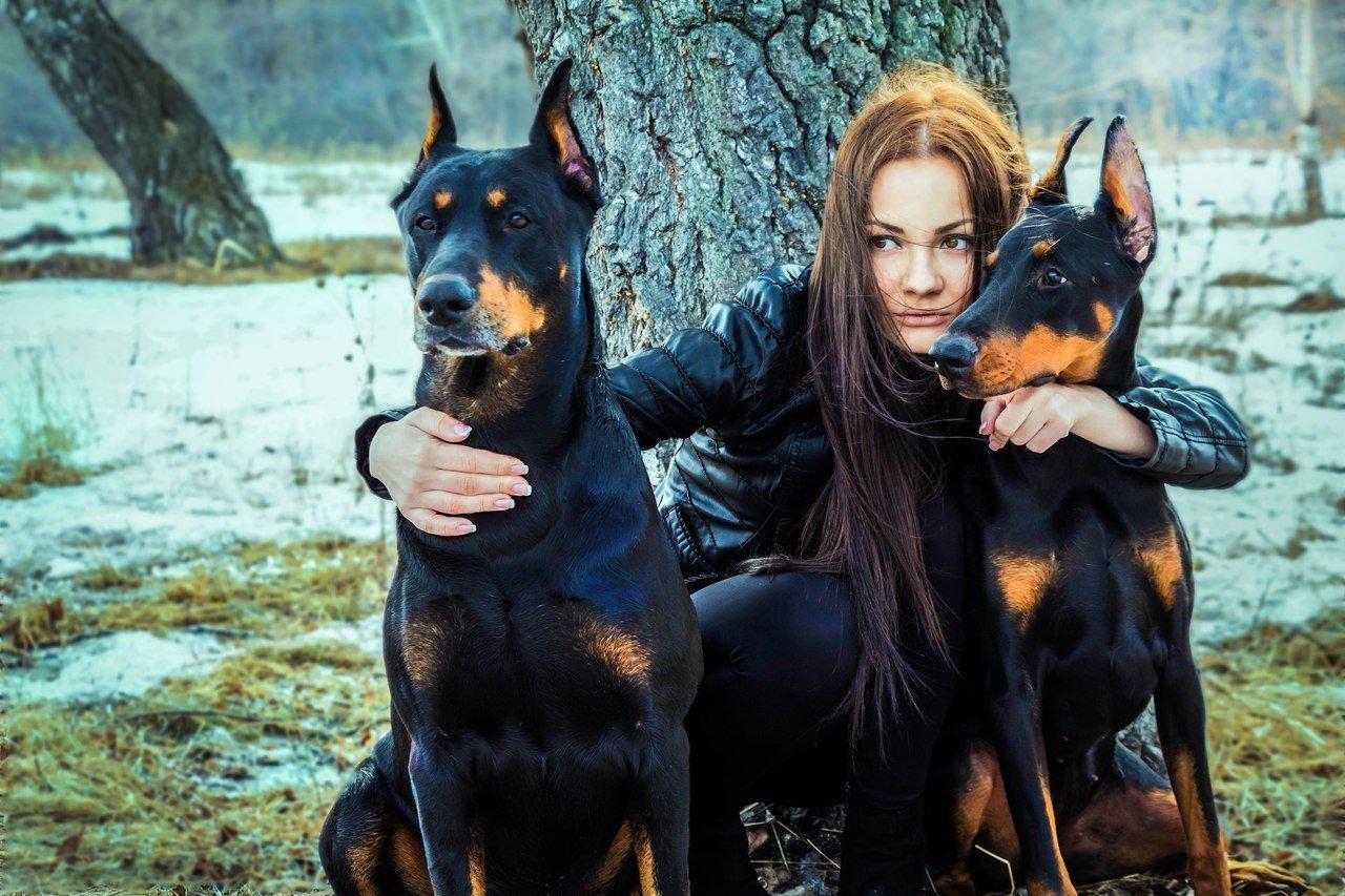 Доберманы с девушками