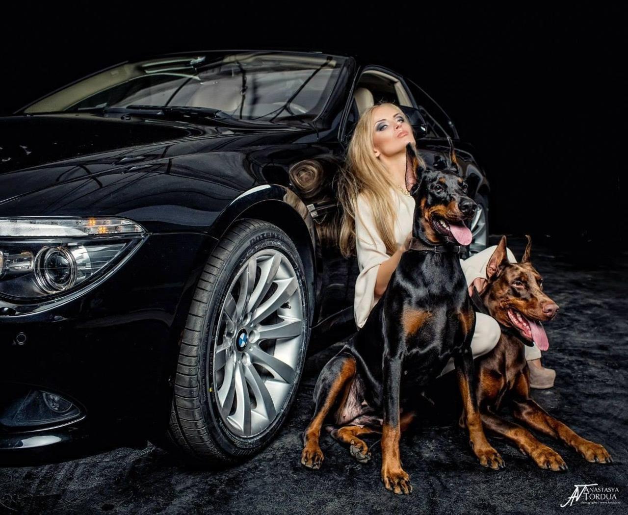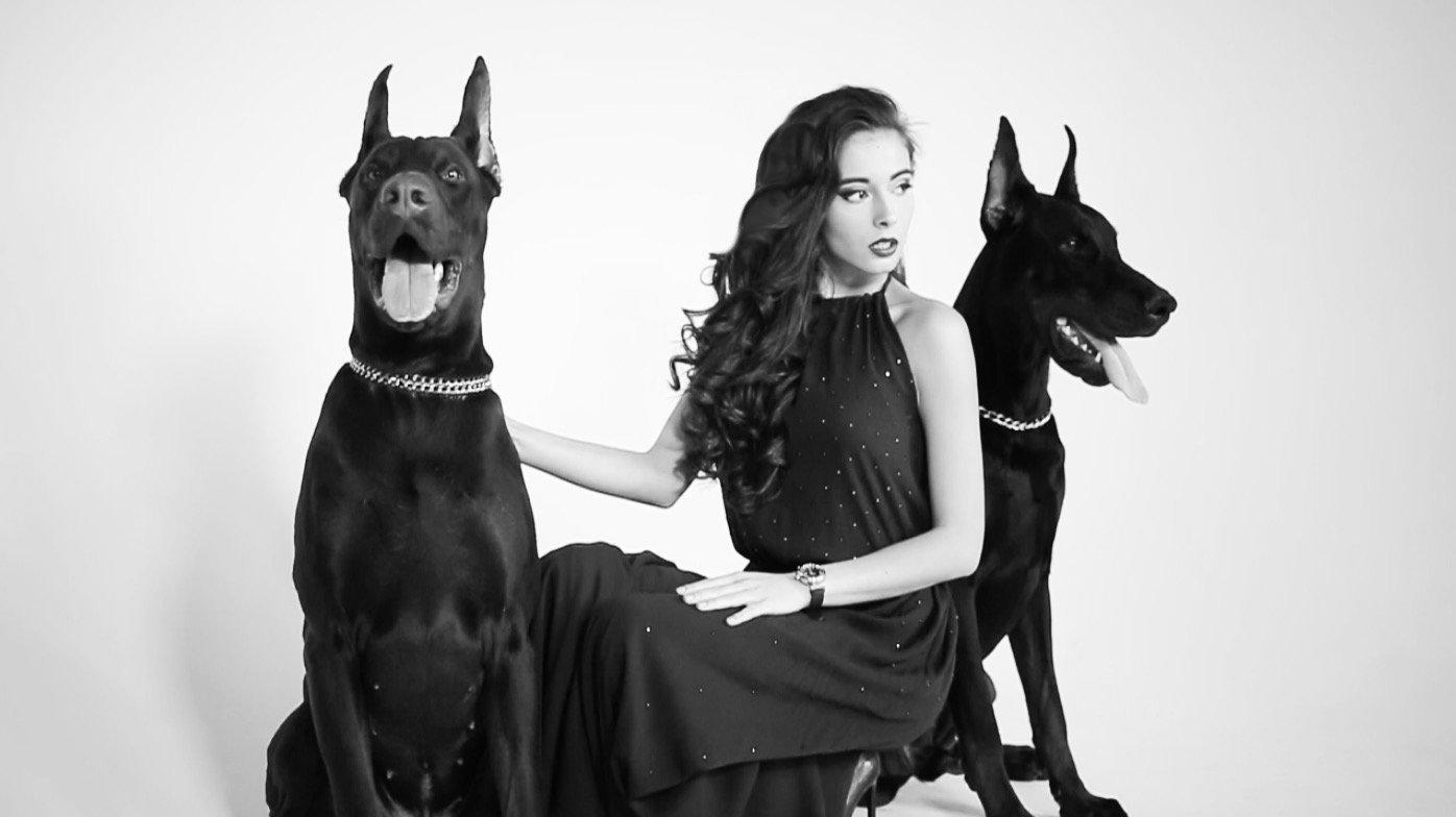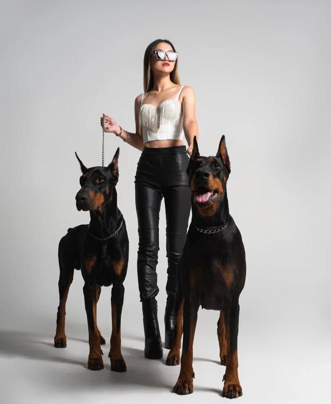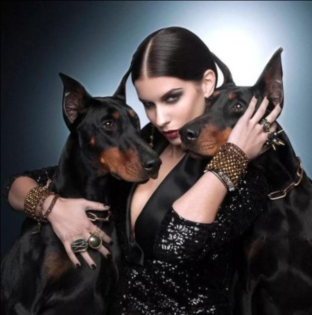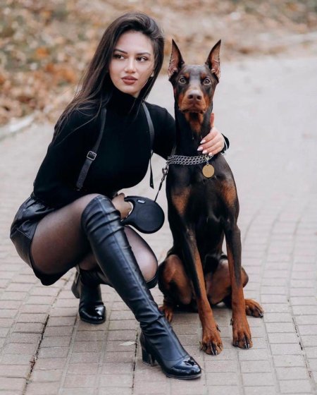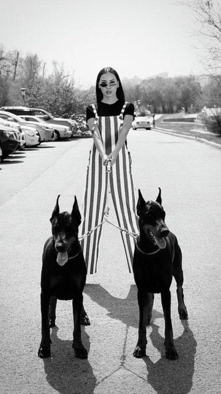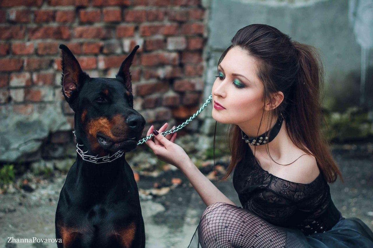 Доберманы с девушками