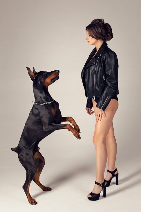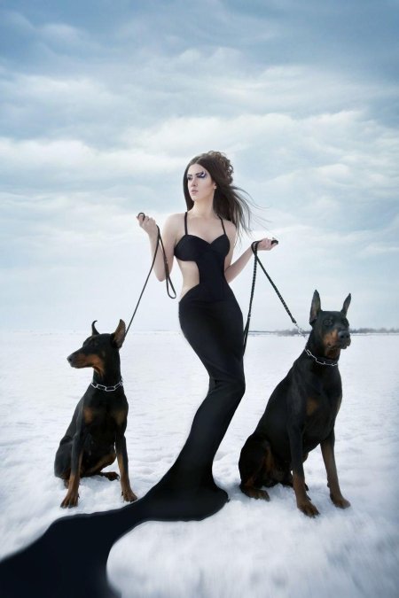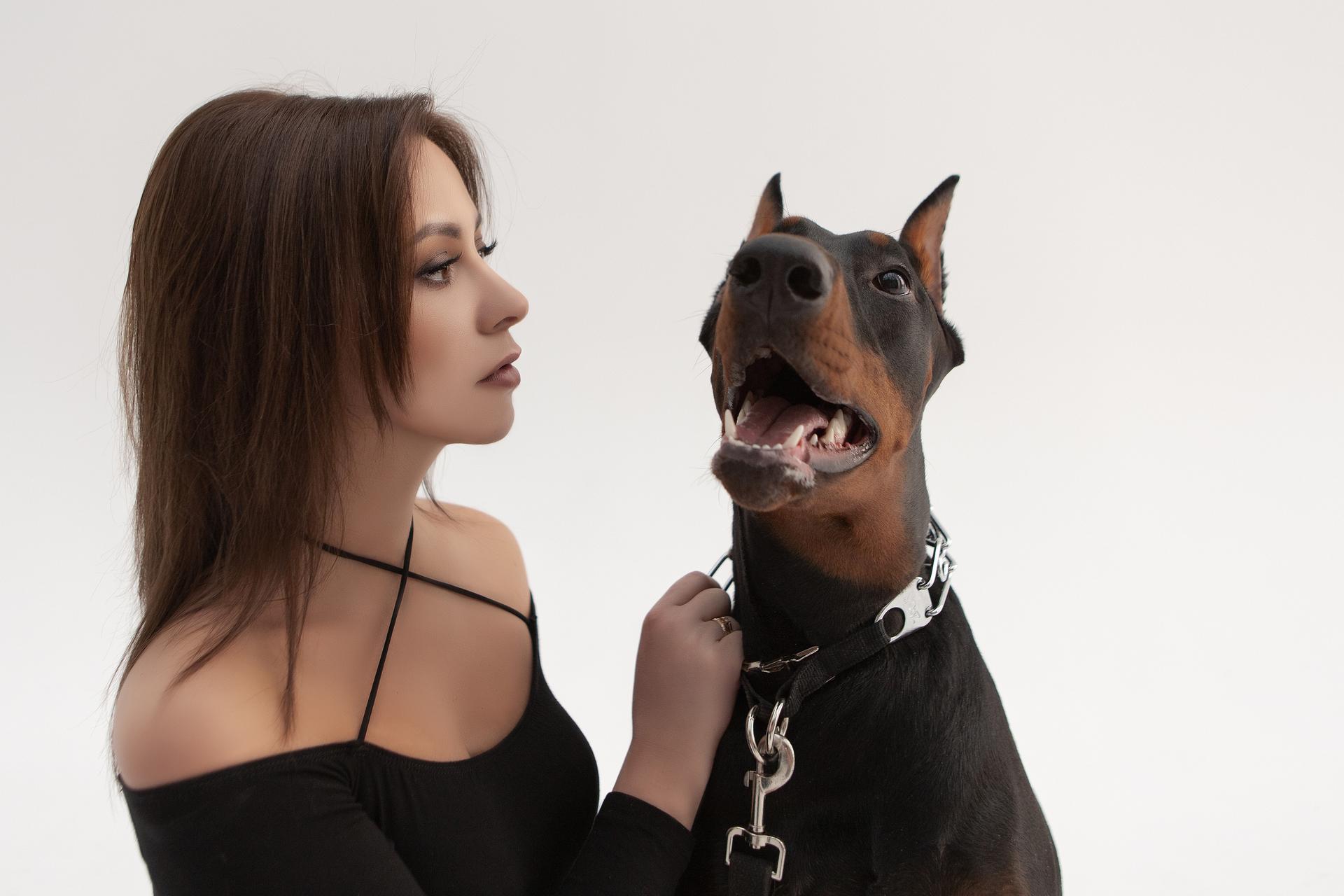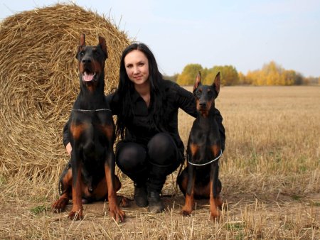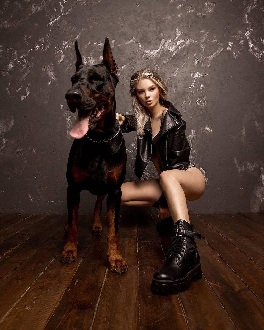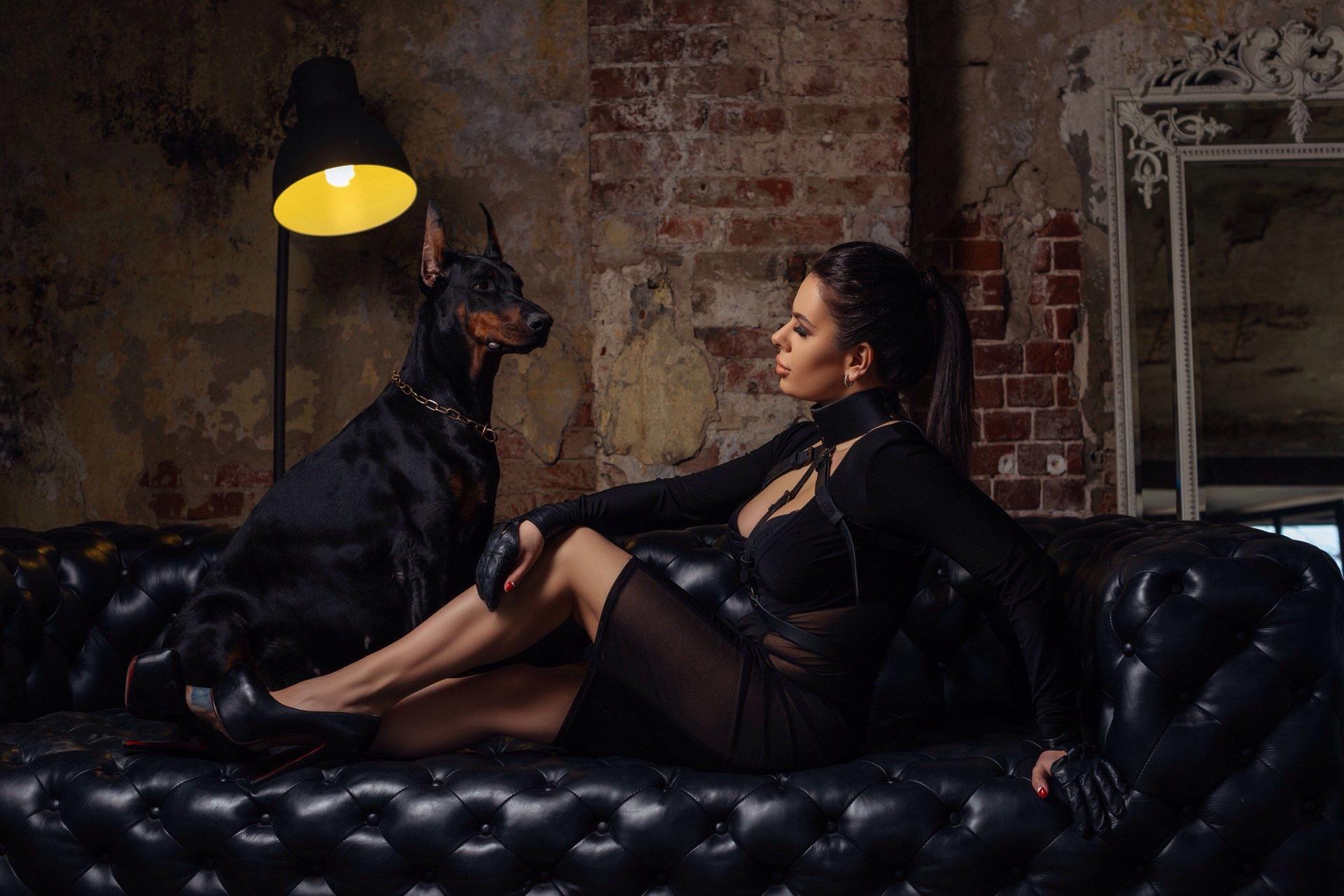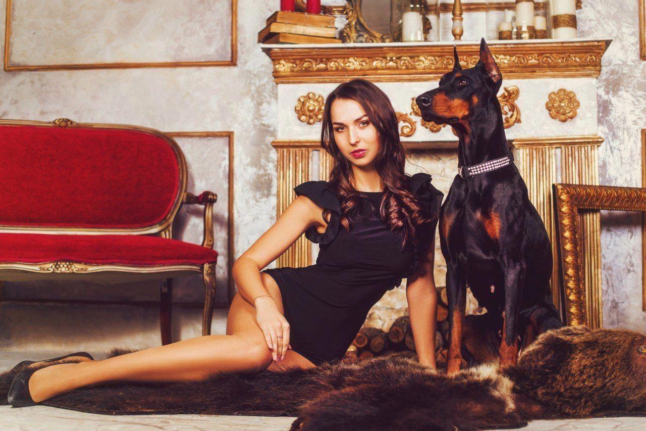 Доберманы с девушками