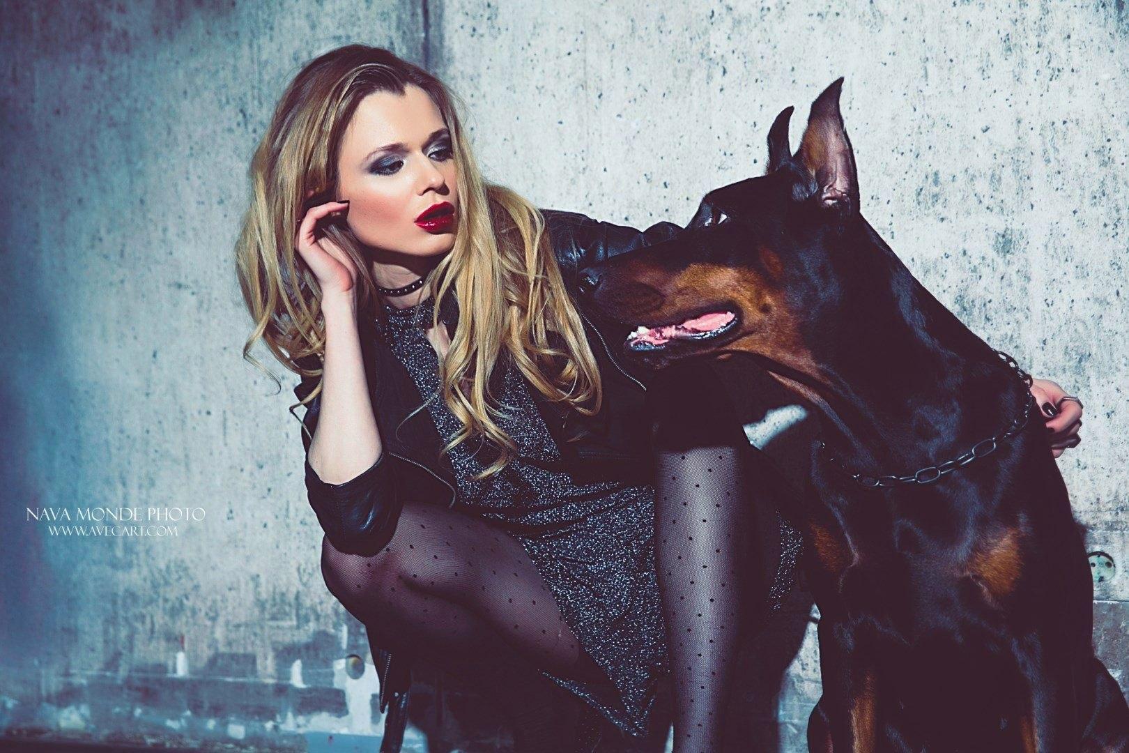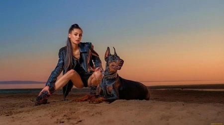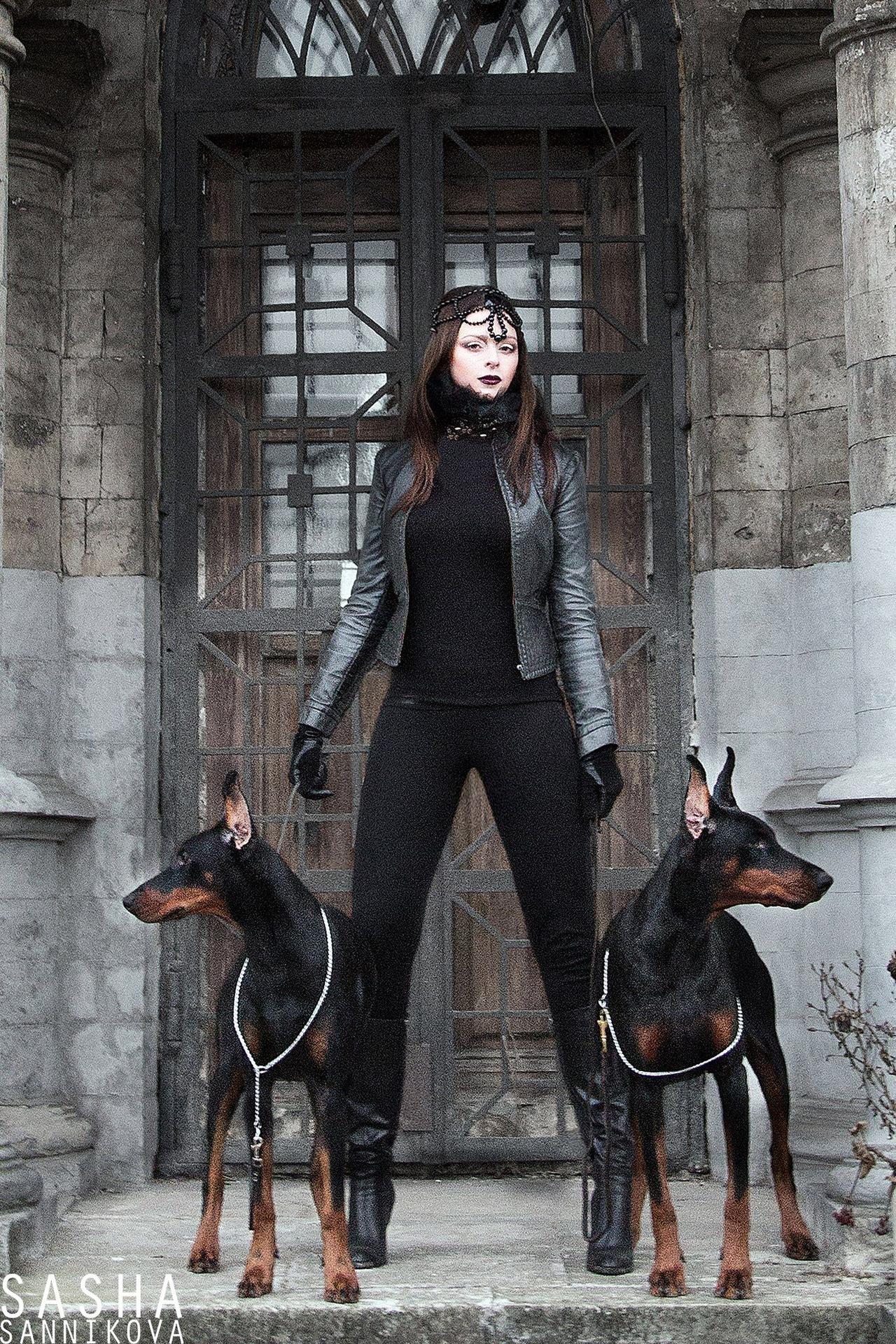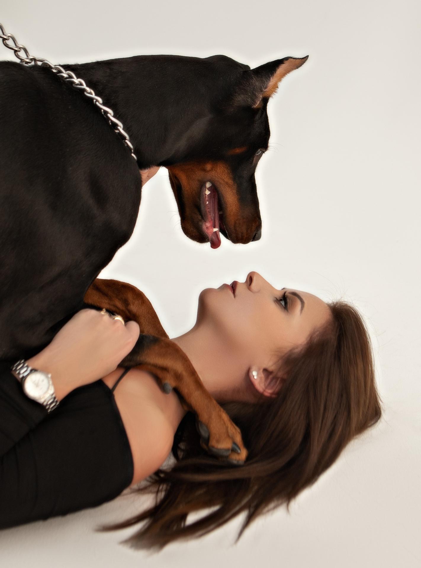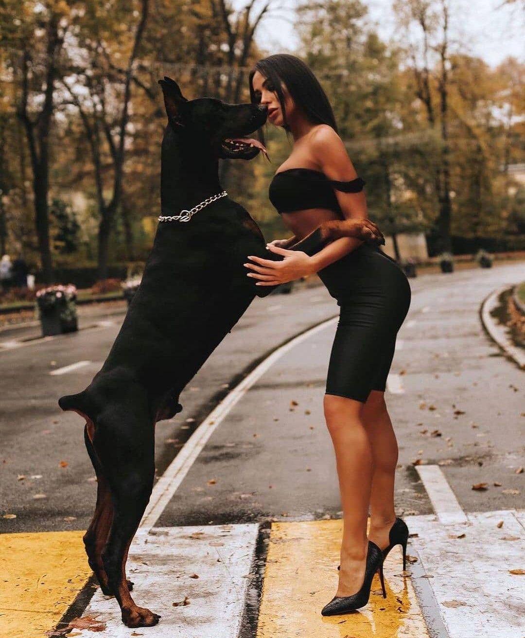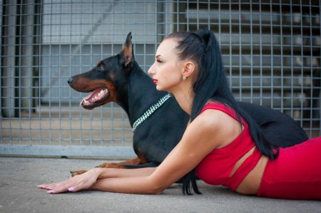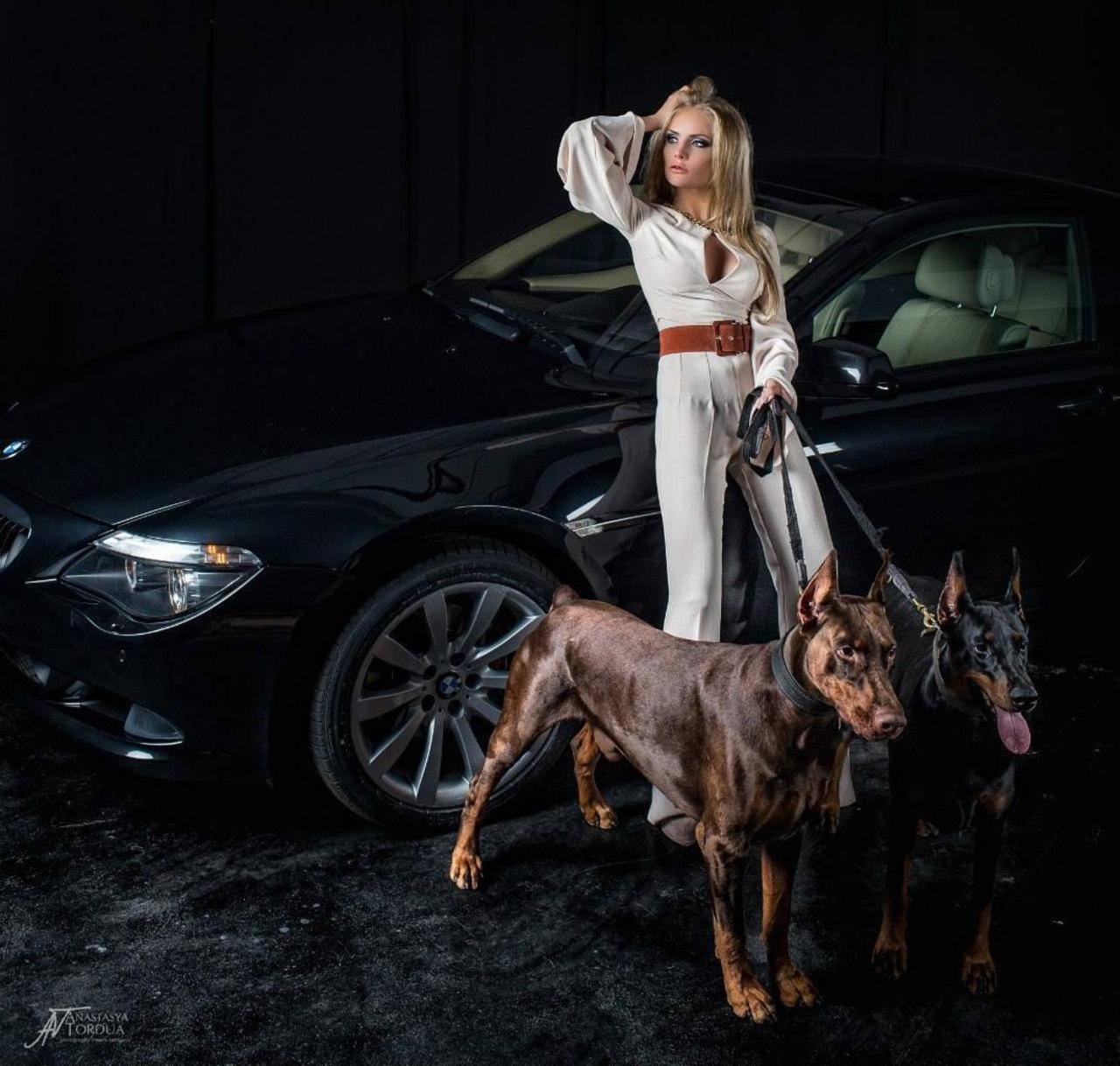 Доберманы с девушками