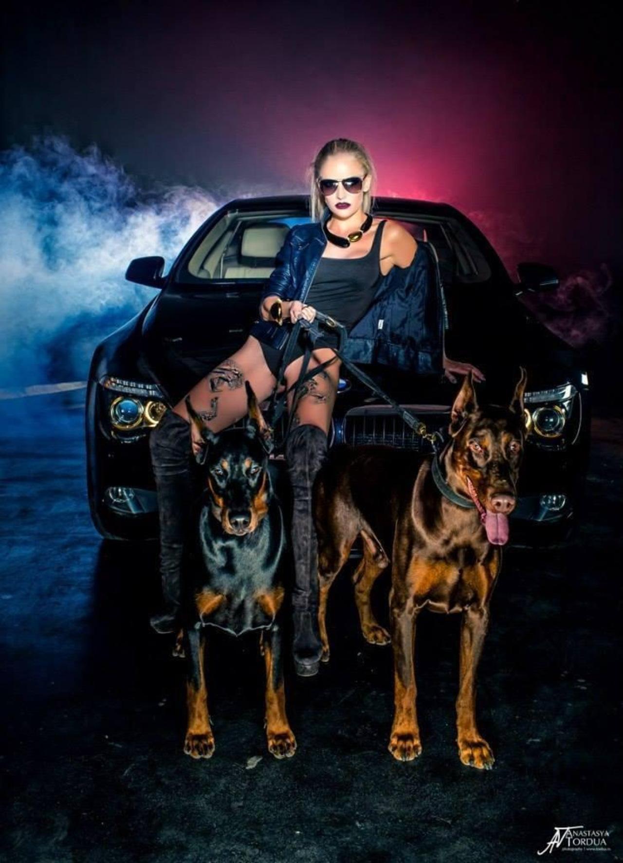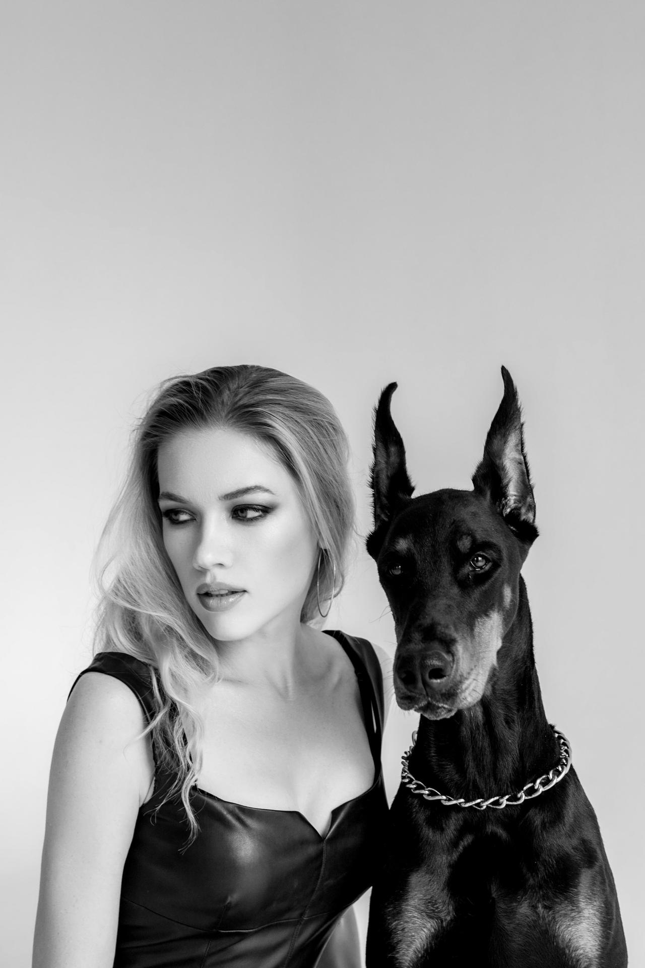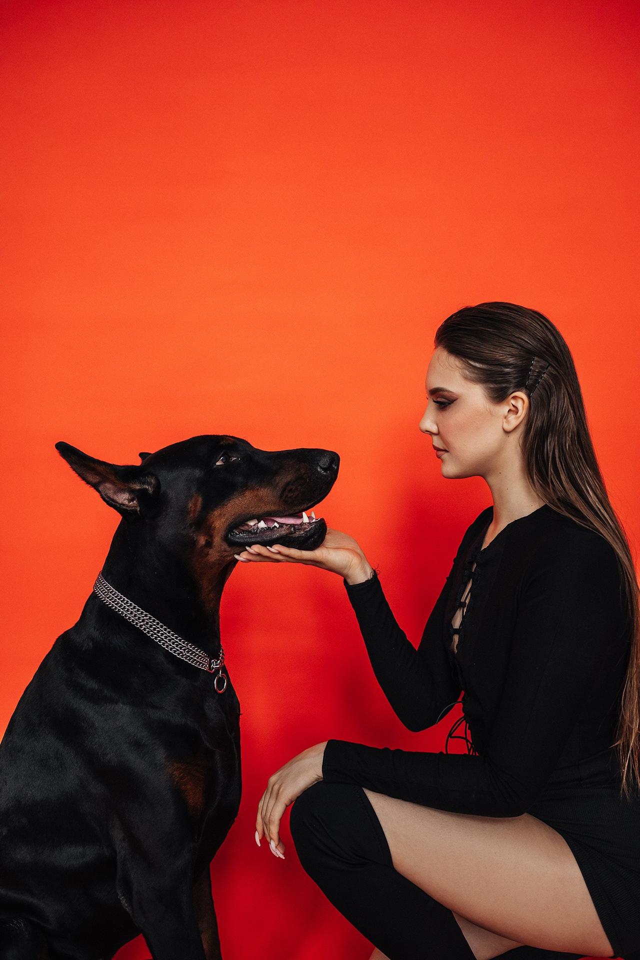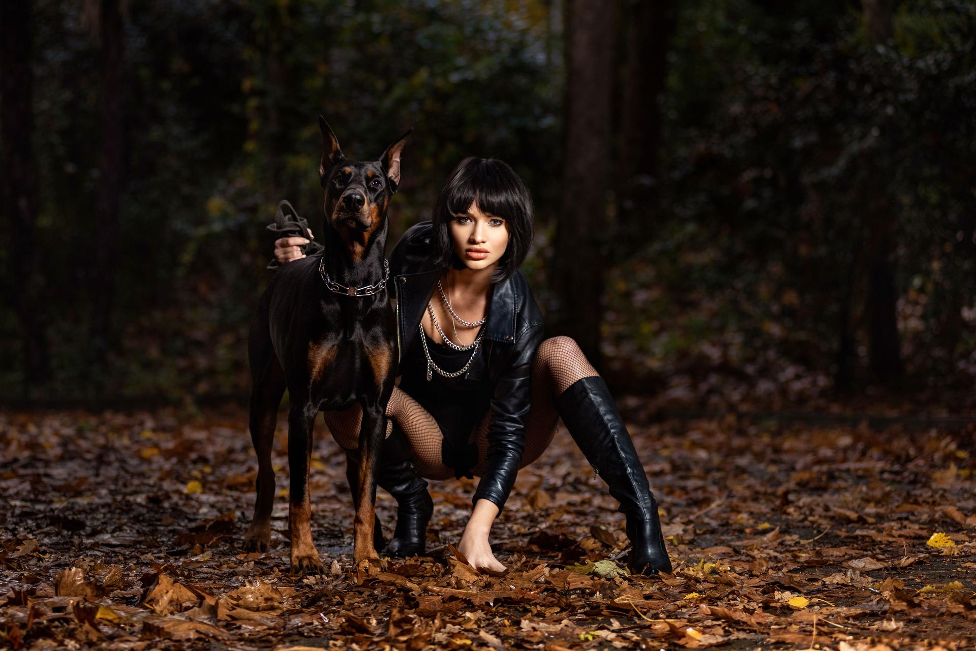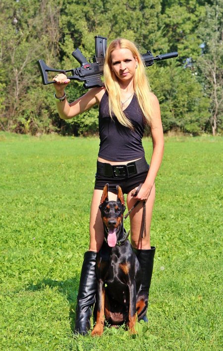 Доберманы с девушками