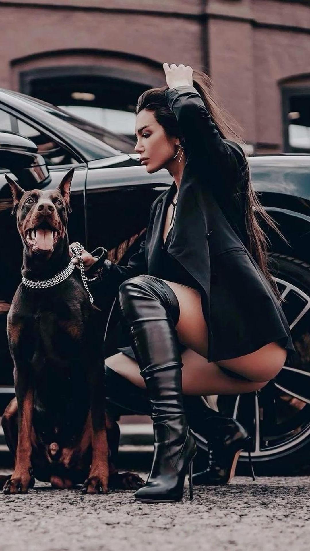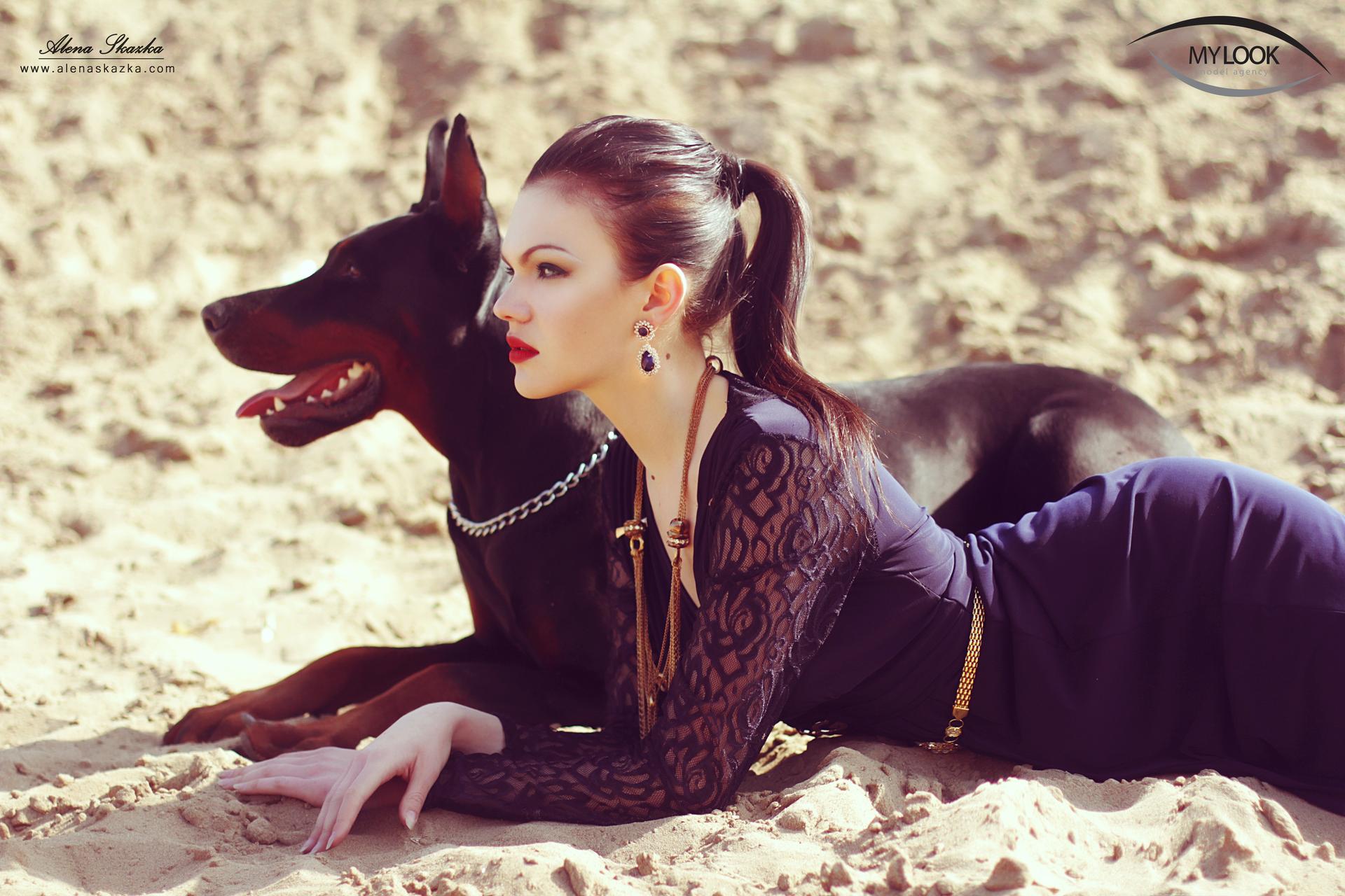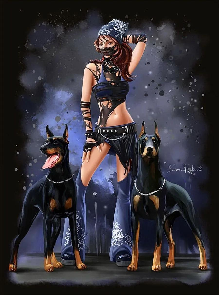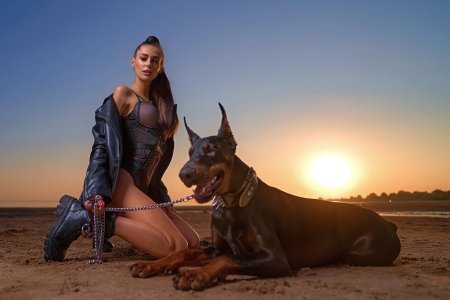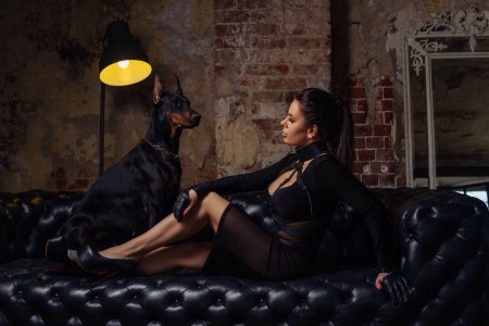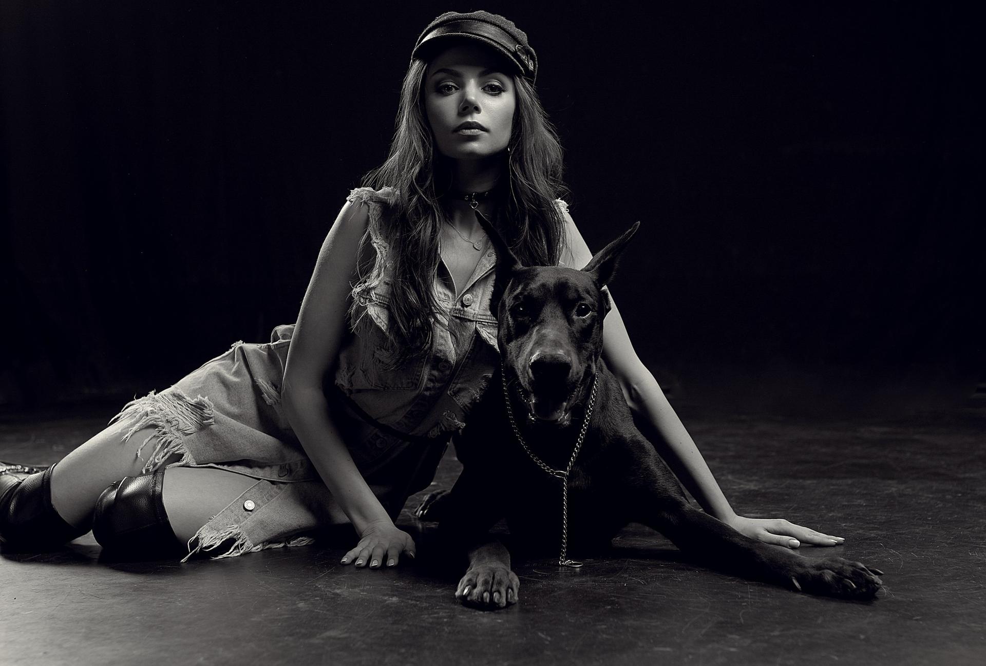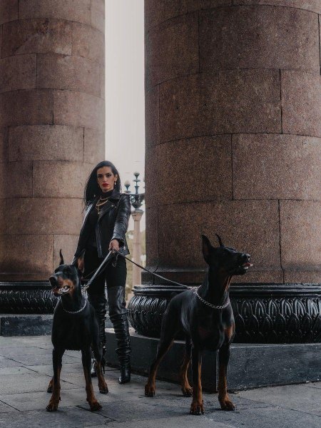 Доберманы с девушками