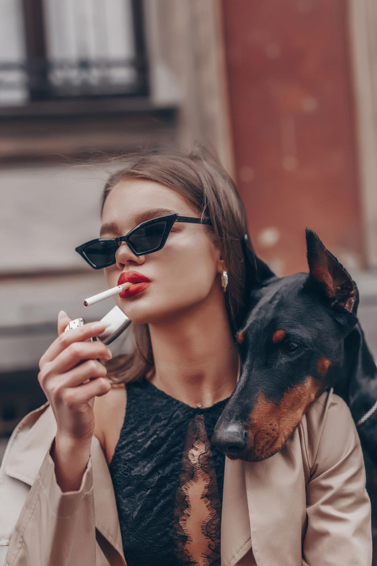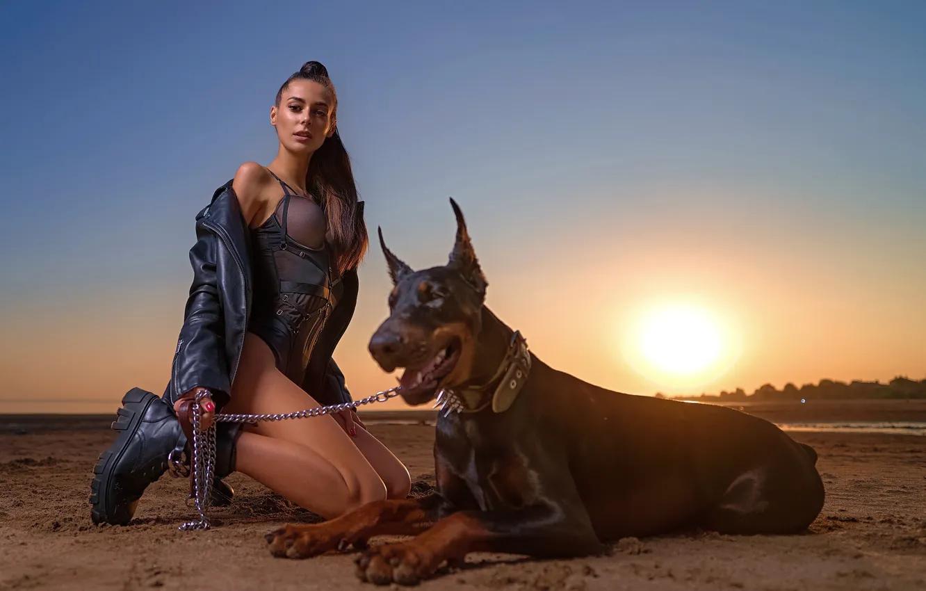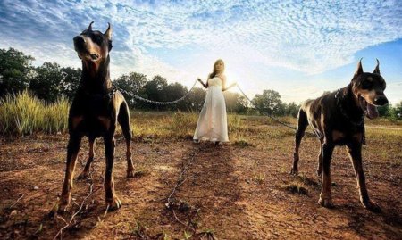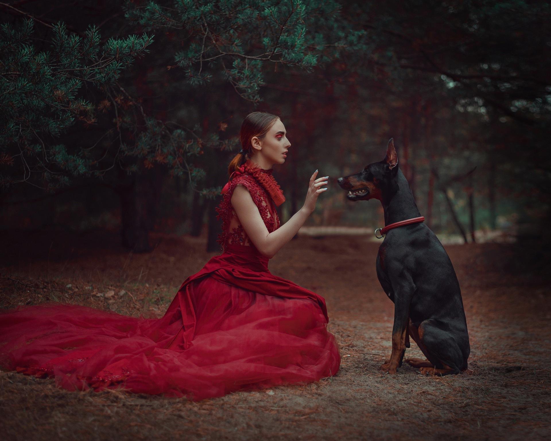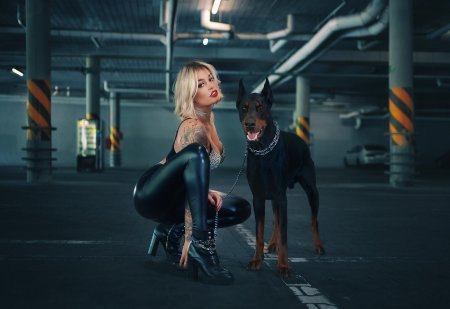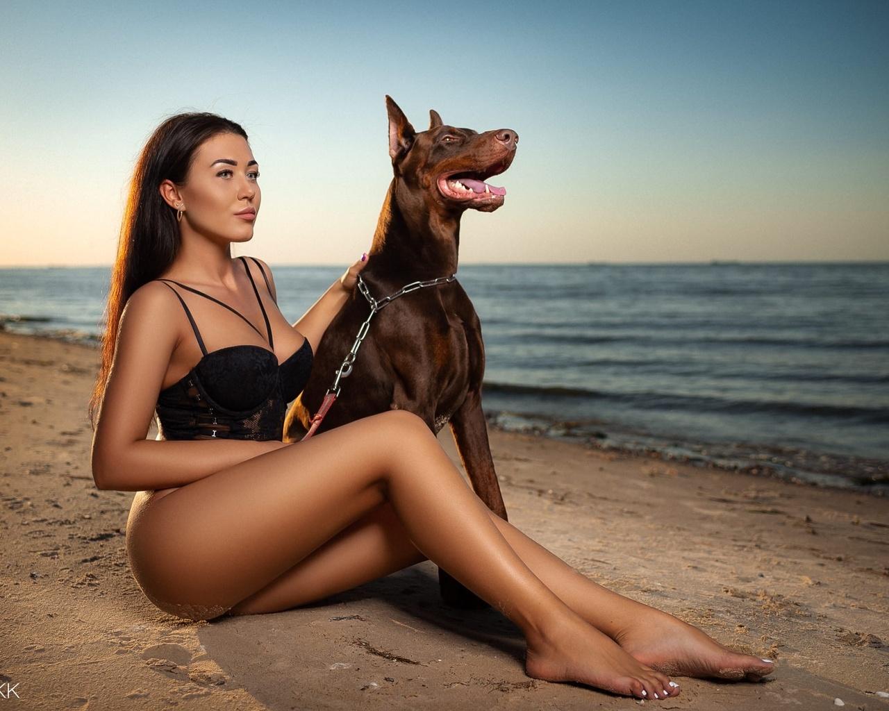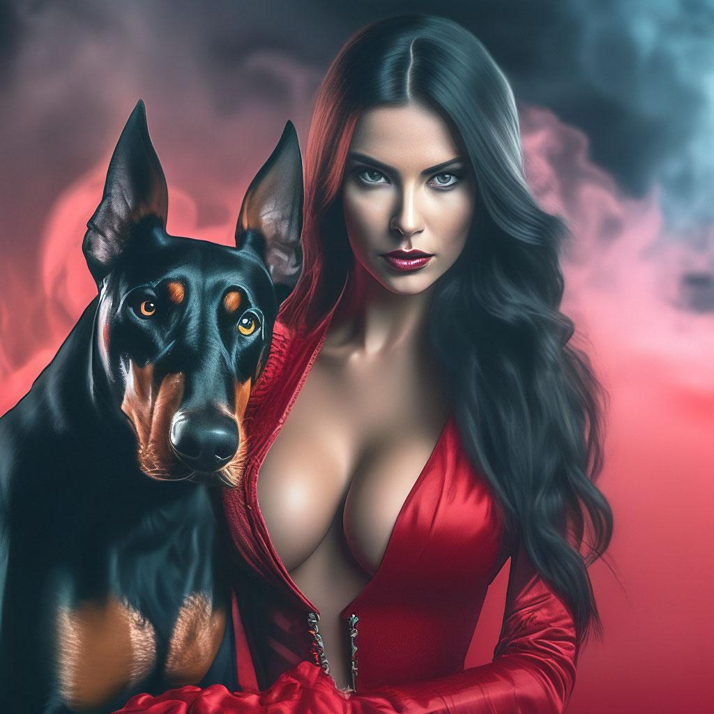 Доберманы с девушками