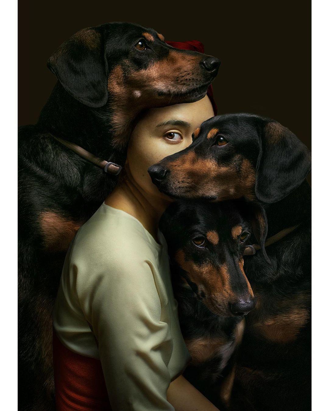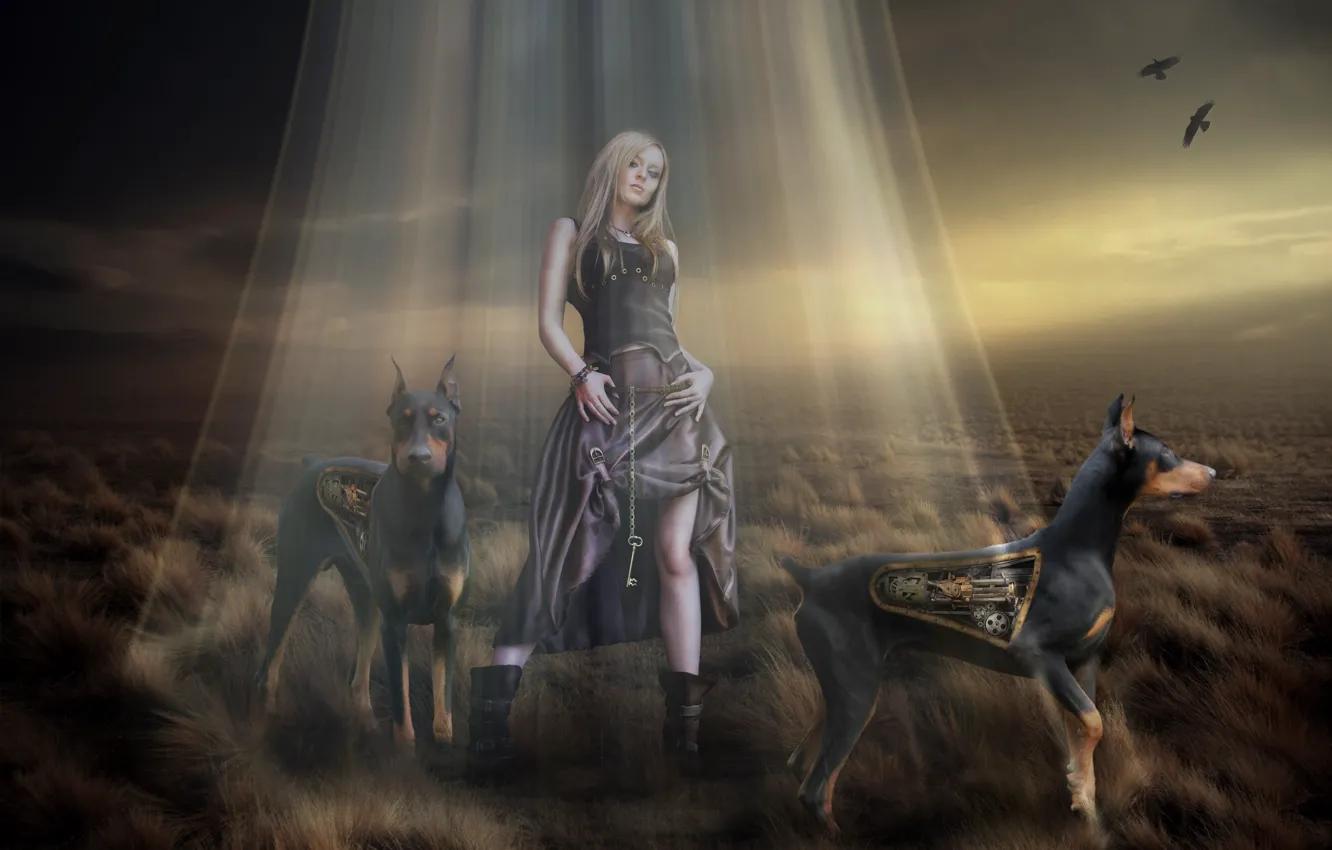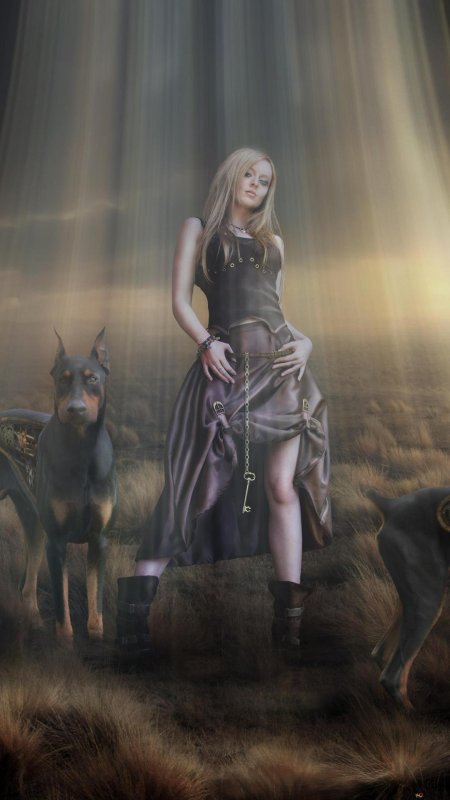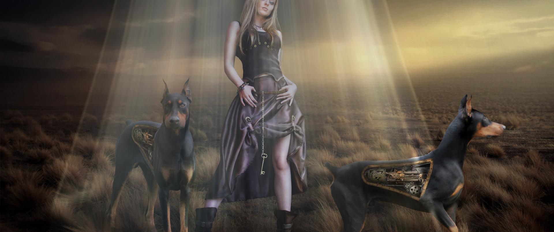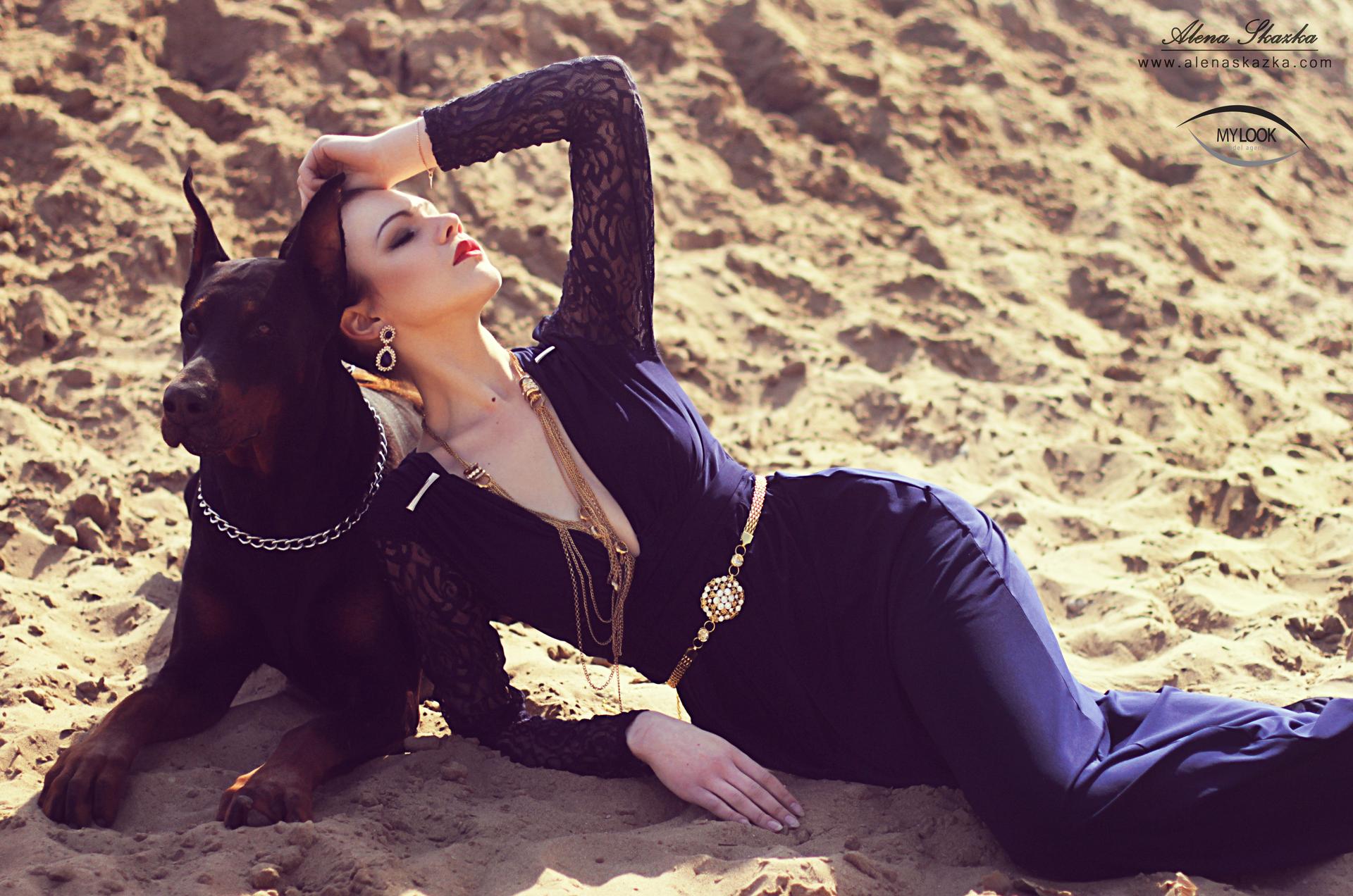 Доберманы с девушками