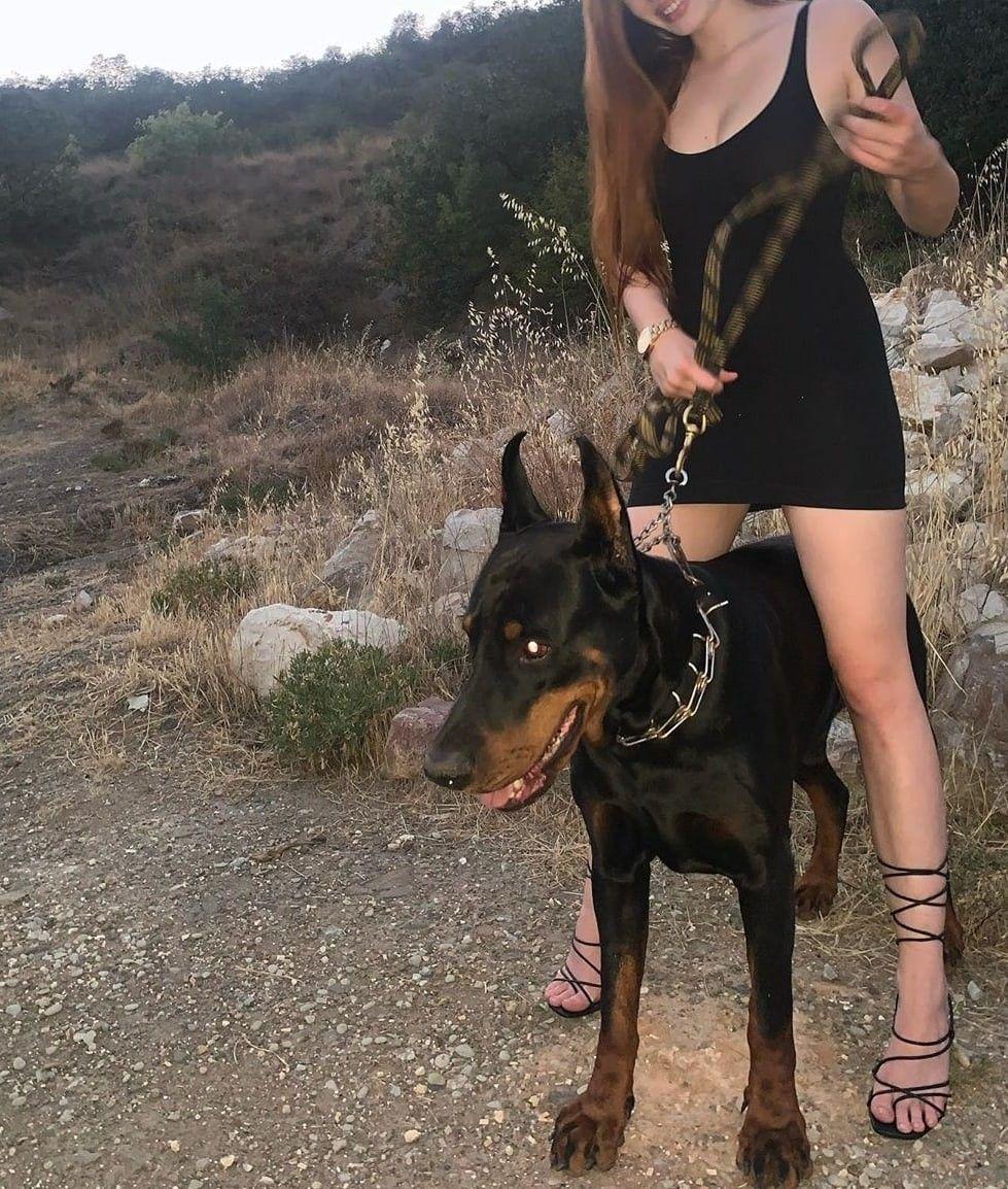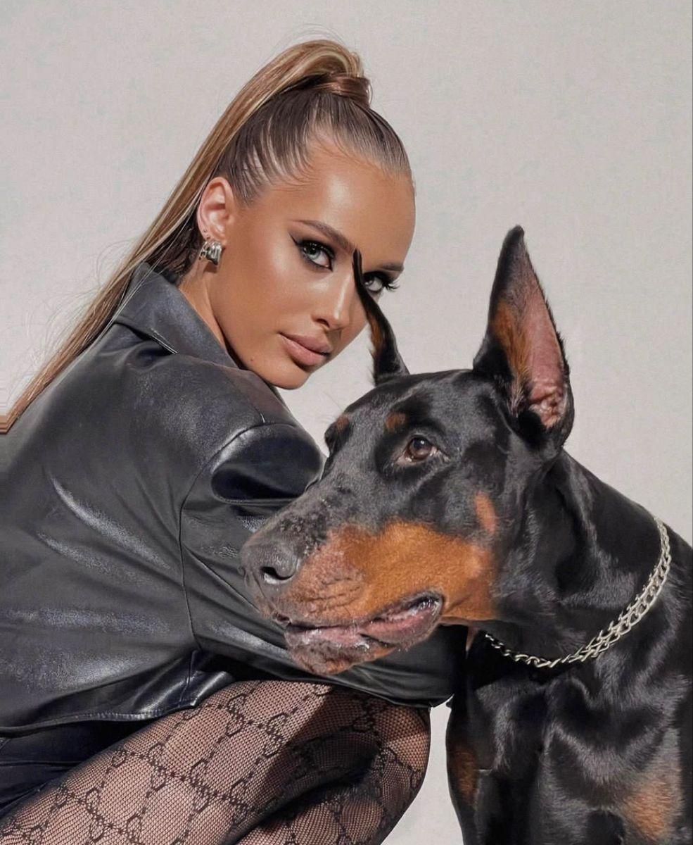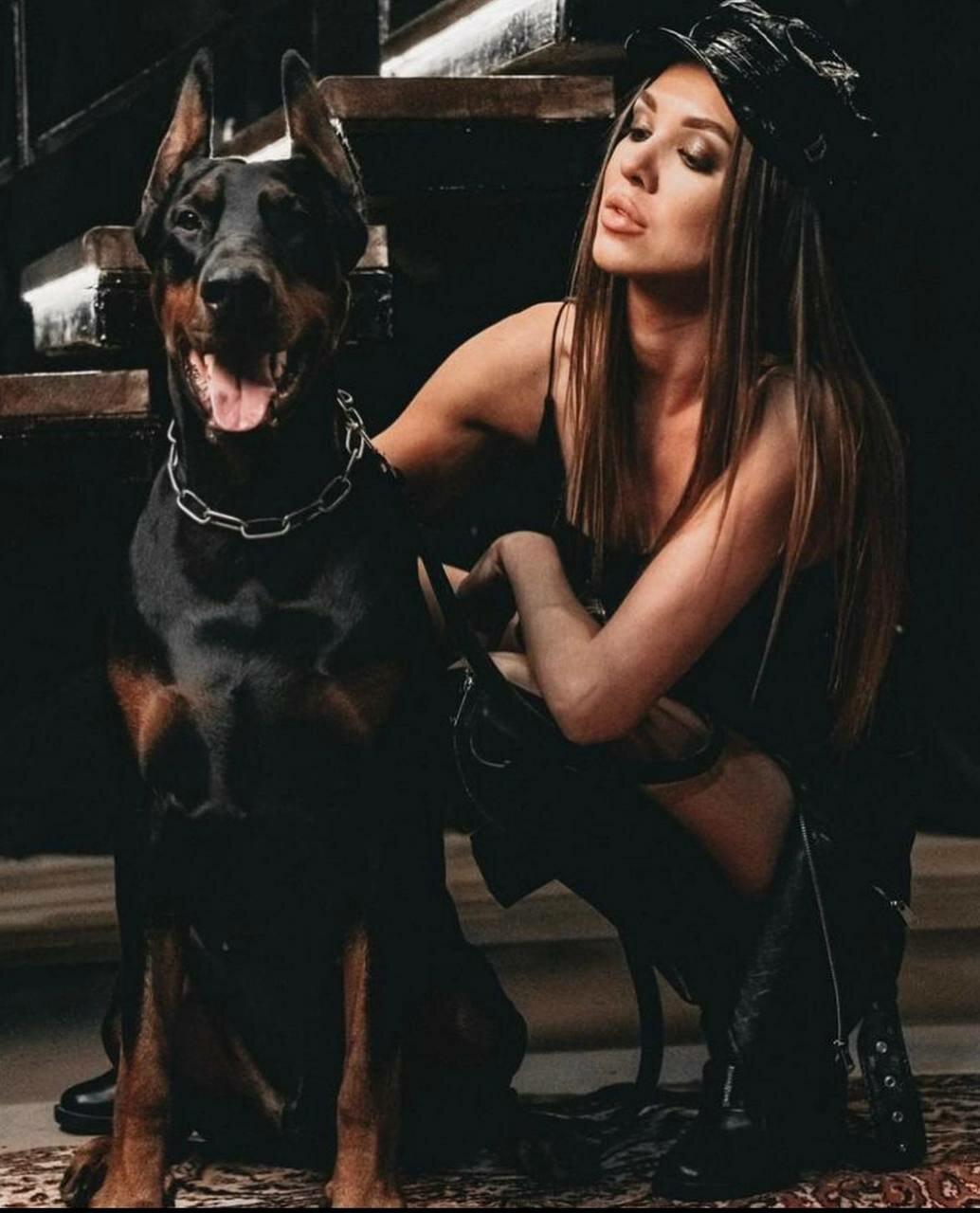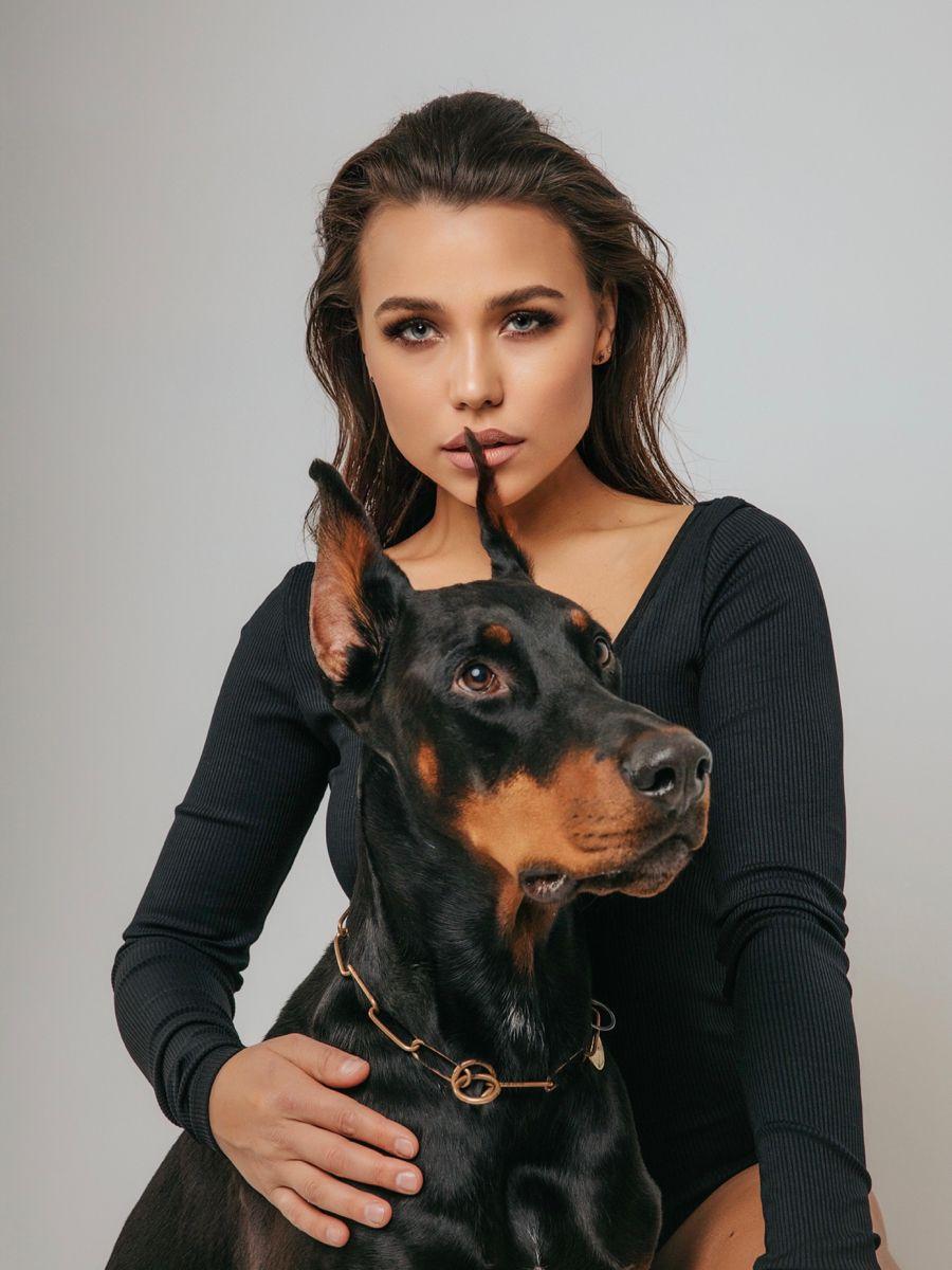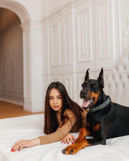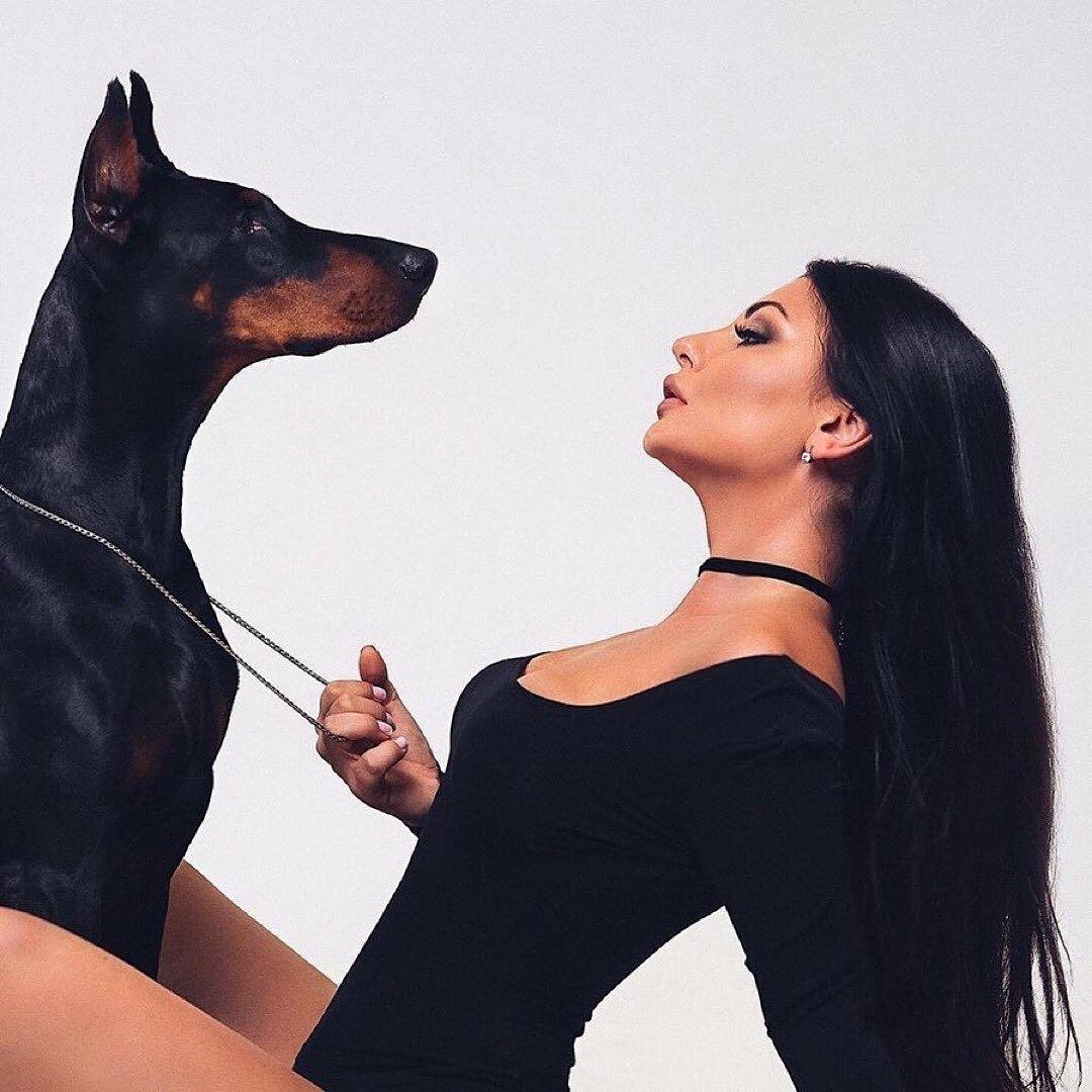 Дина Исаева с доберманом