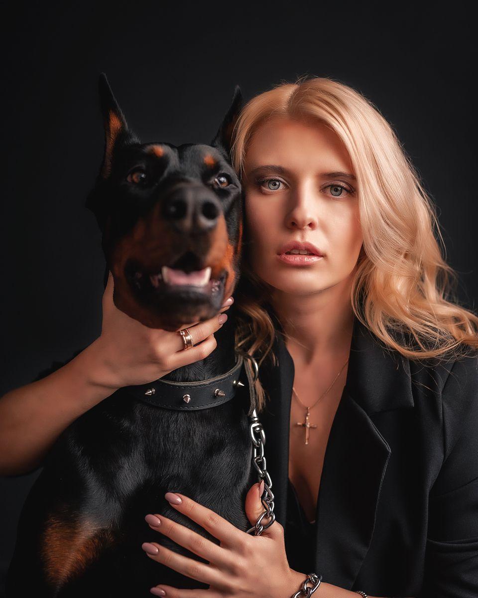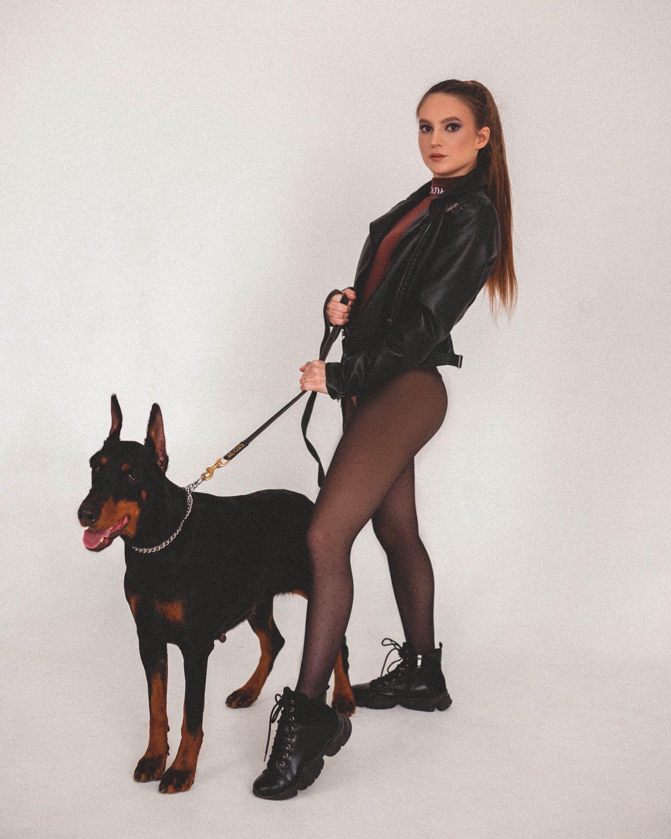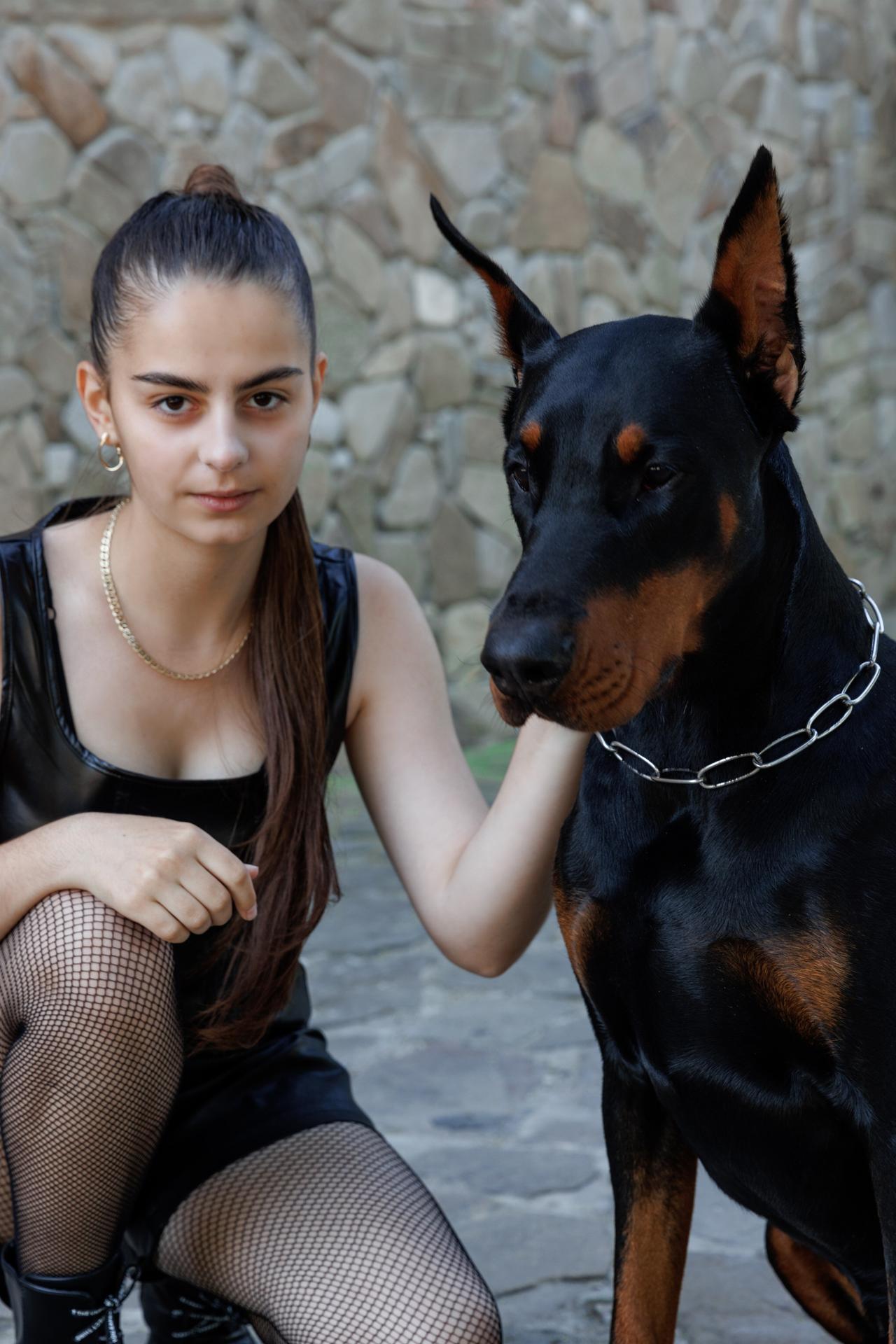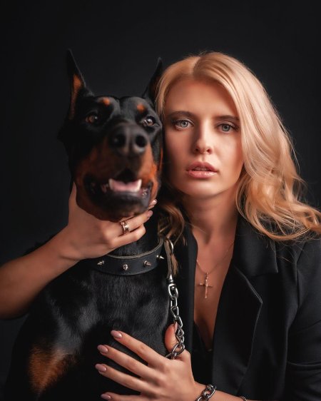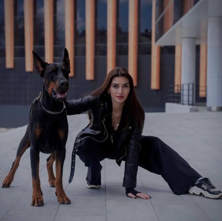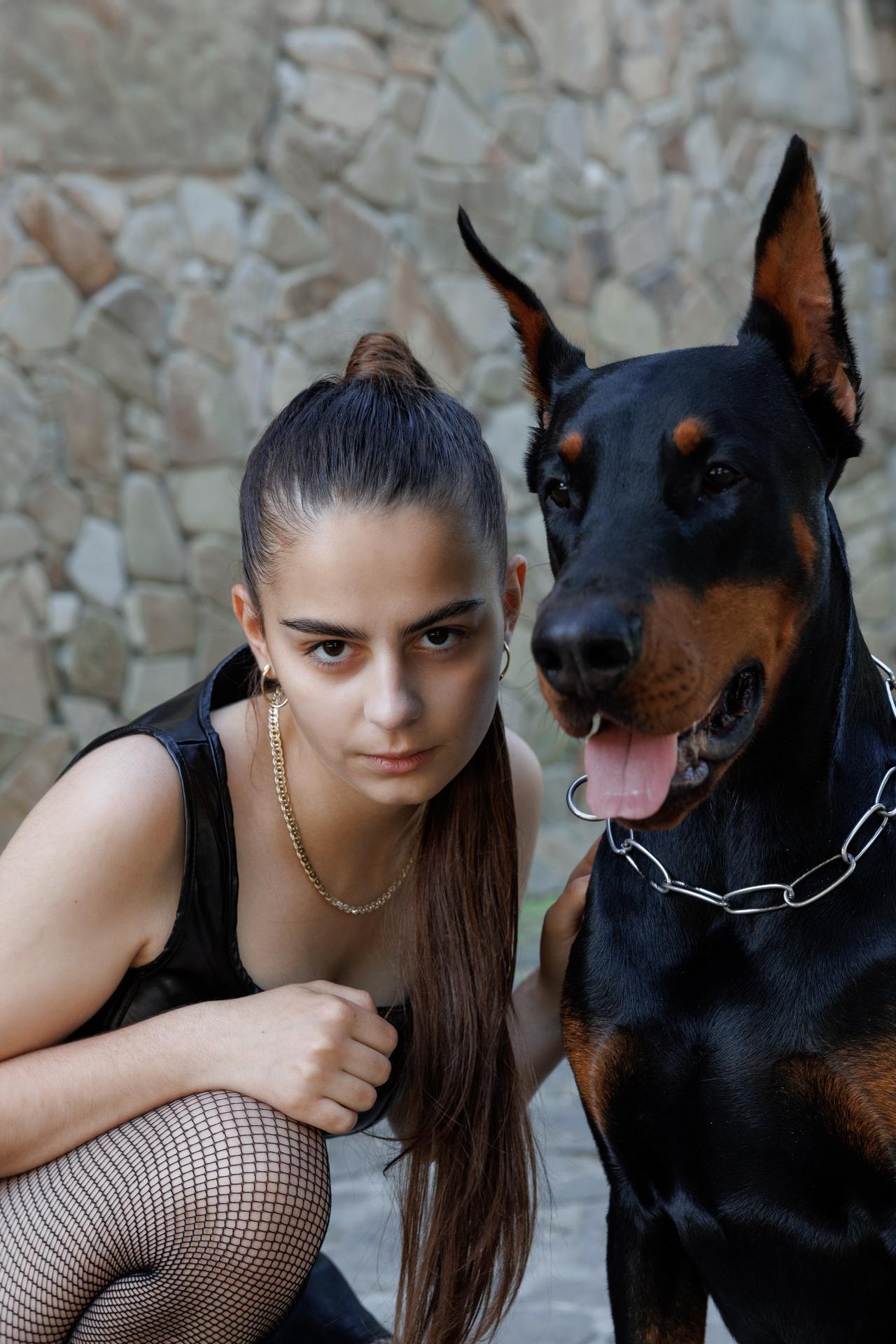 Дина Исаева с доберманом
