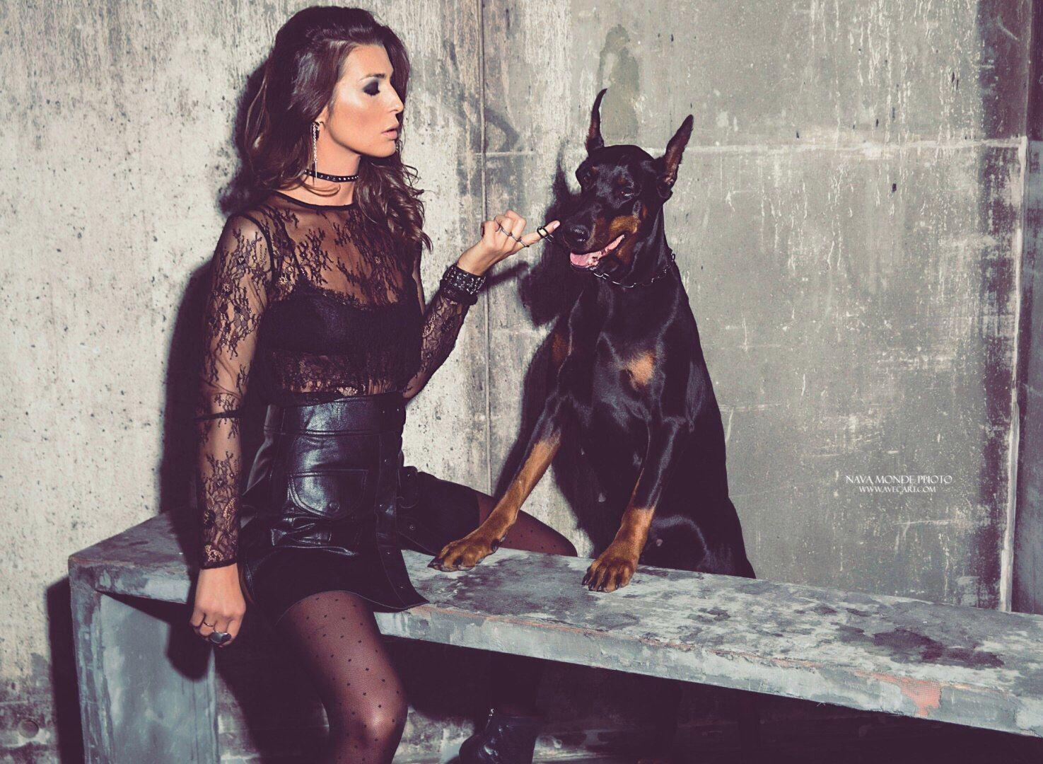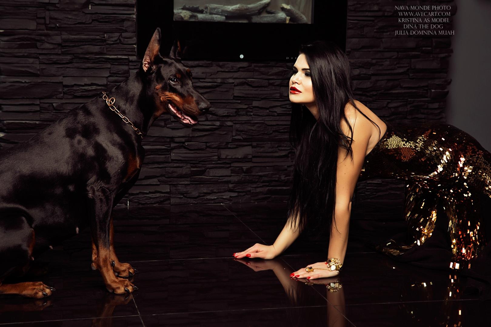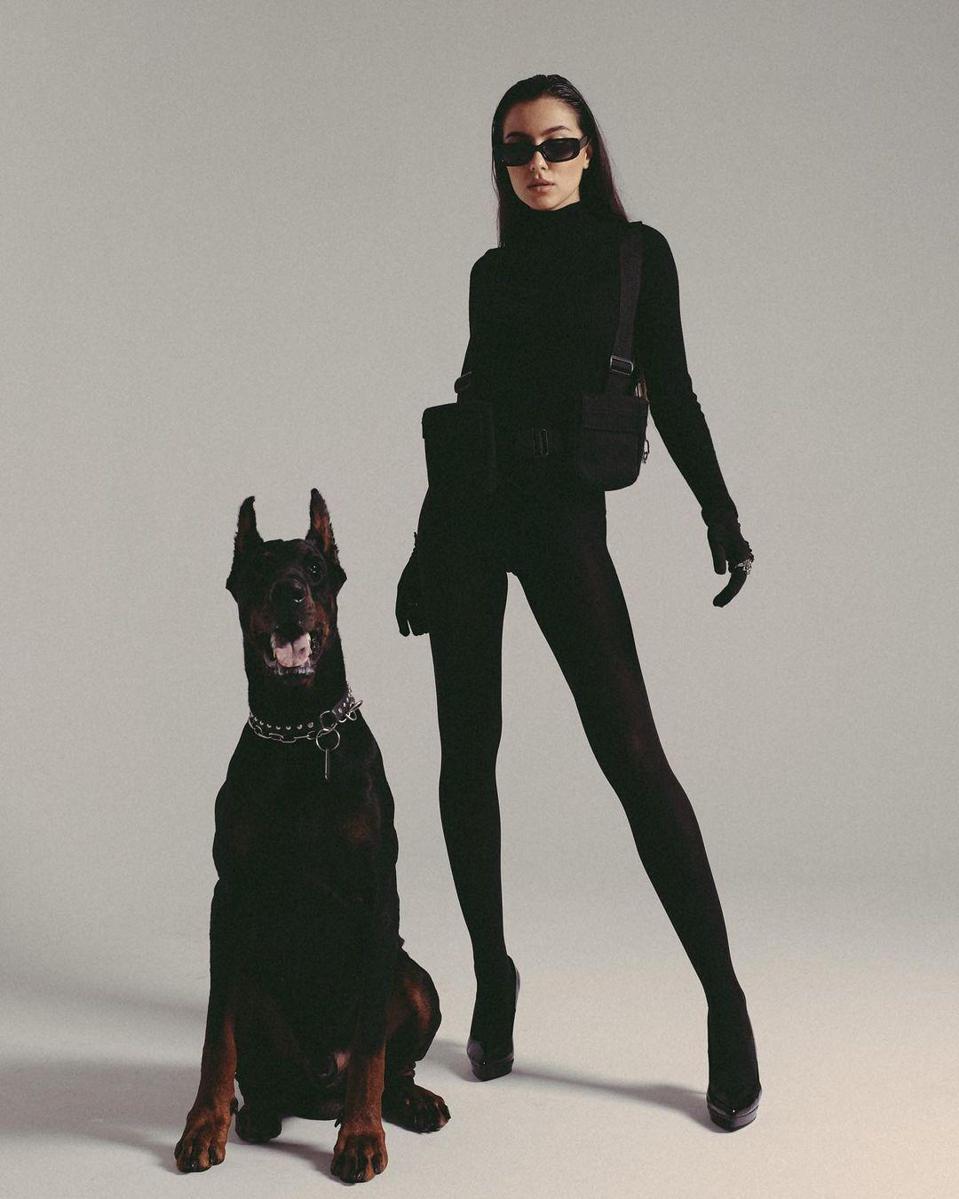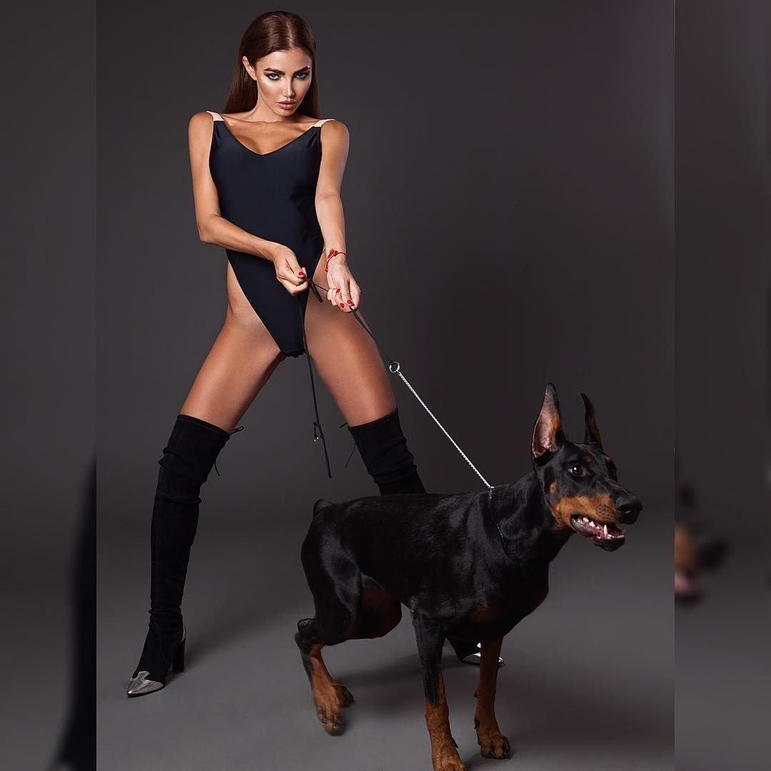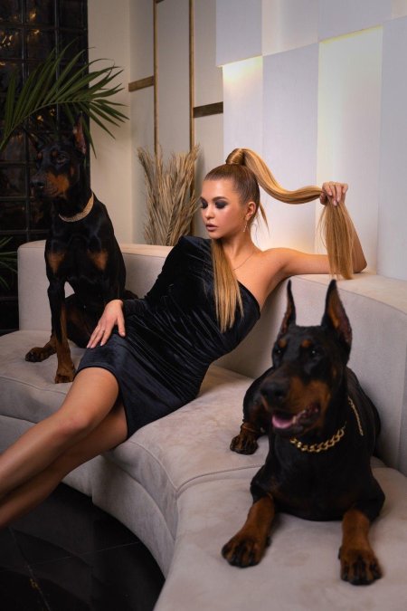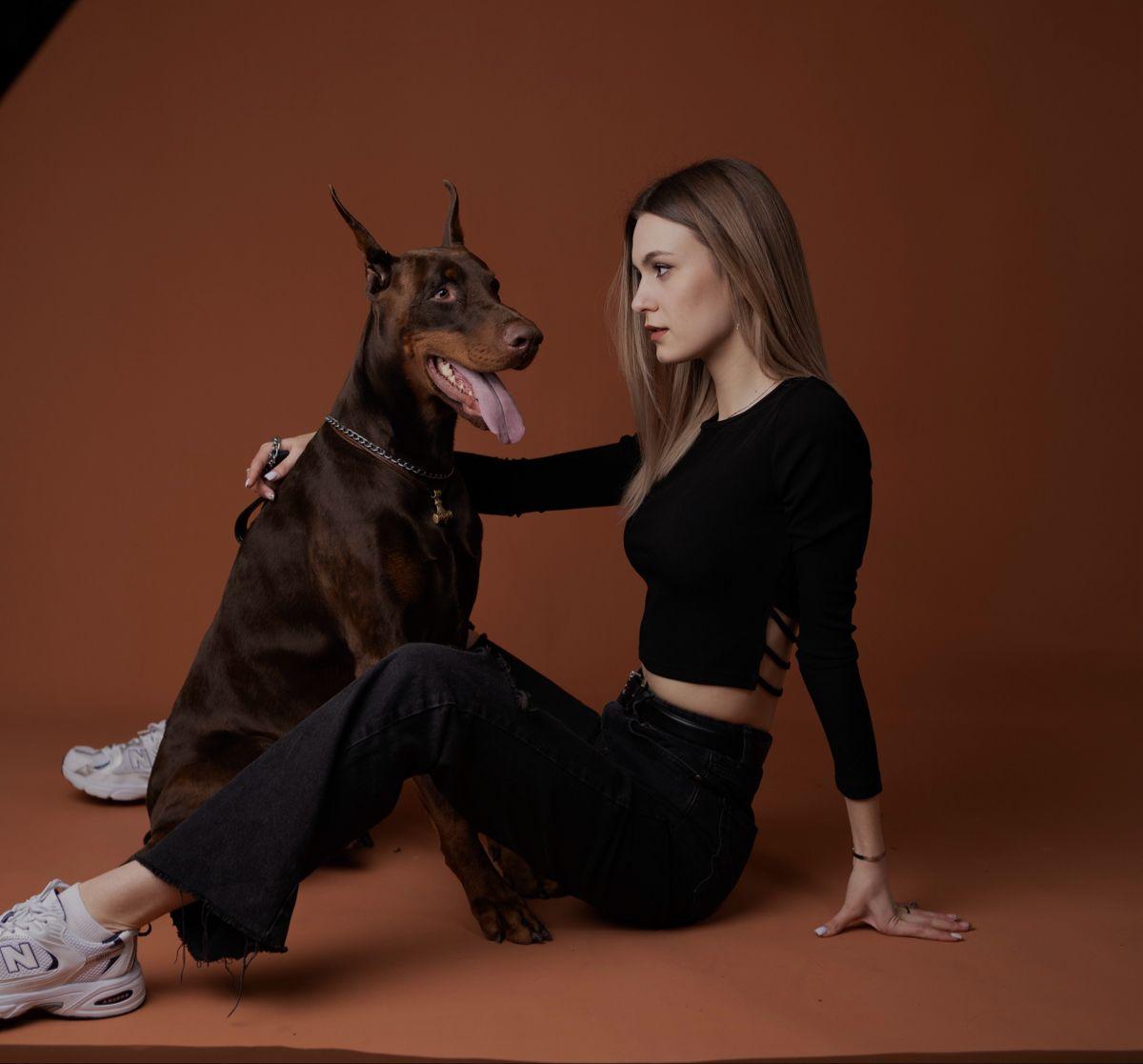 Дина Исаева с доберманом