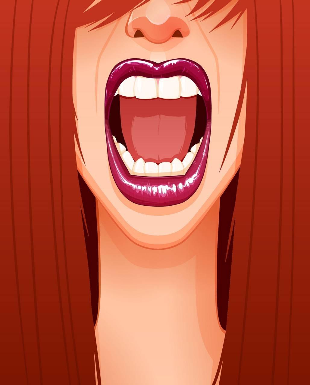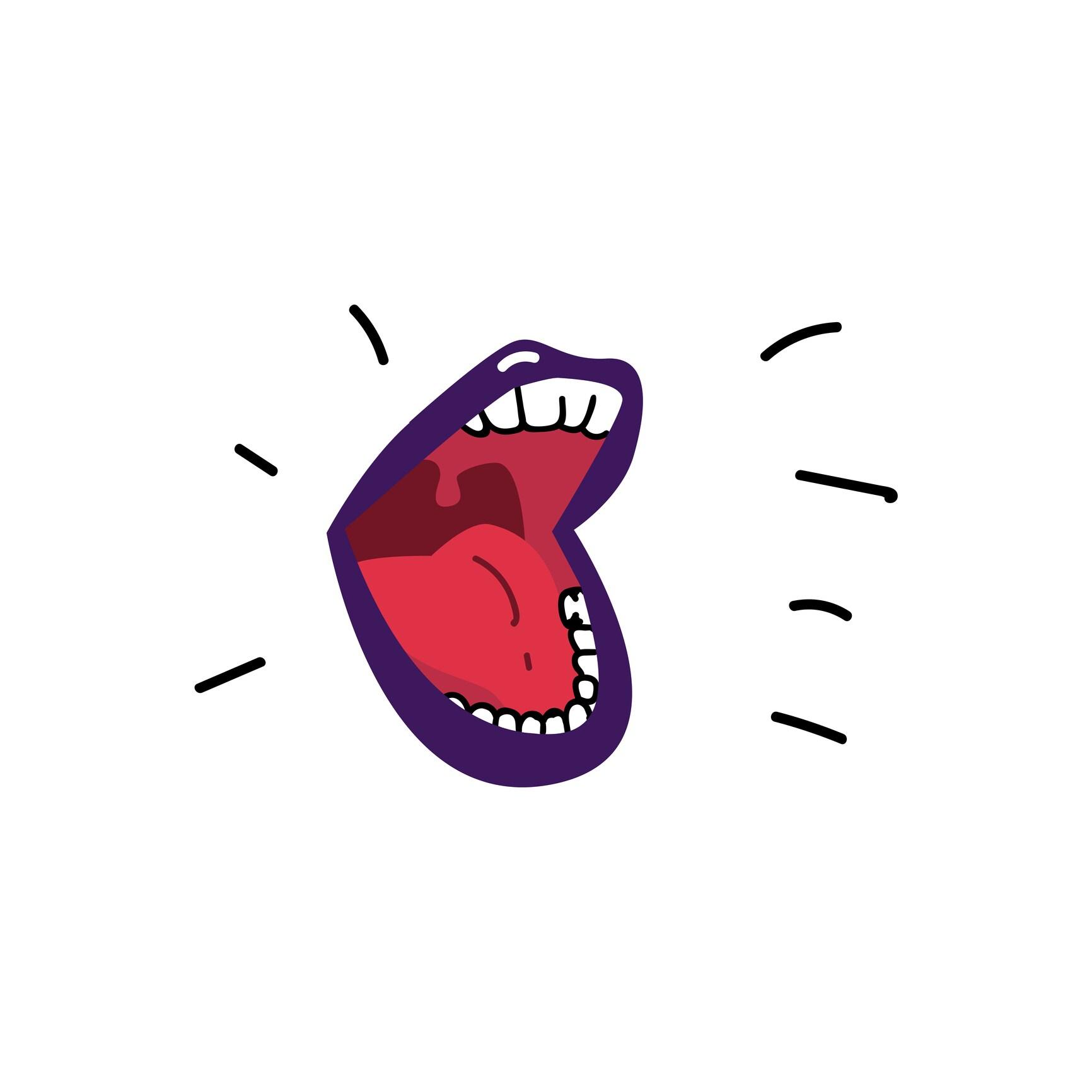 Открытый рот передает различные эмоции и состояния. Иллюстрации показывают спонтанность и искренность в мимике, подчеркивая живость характеров.