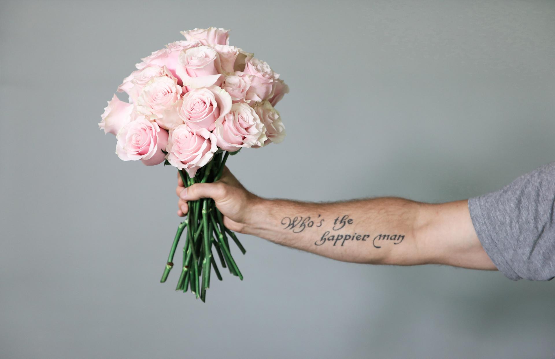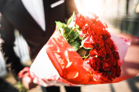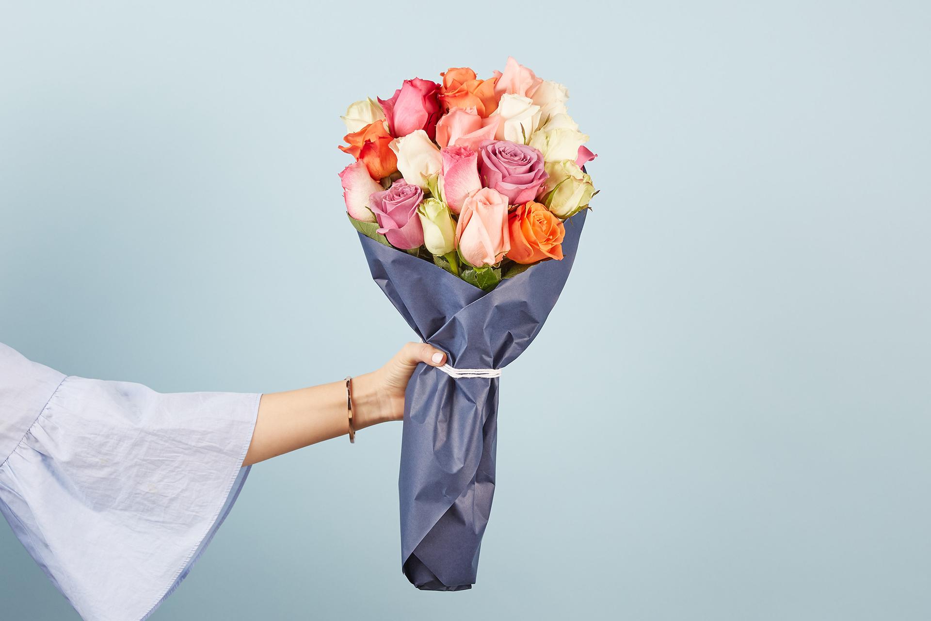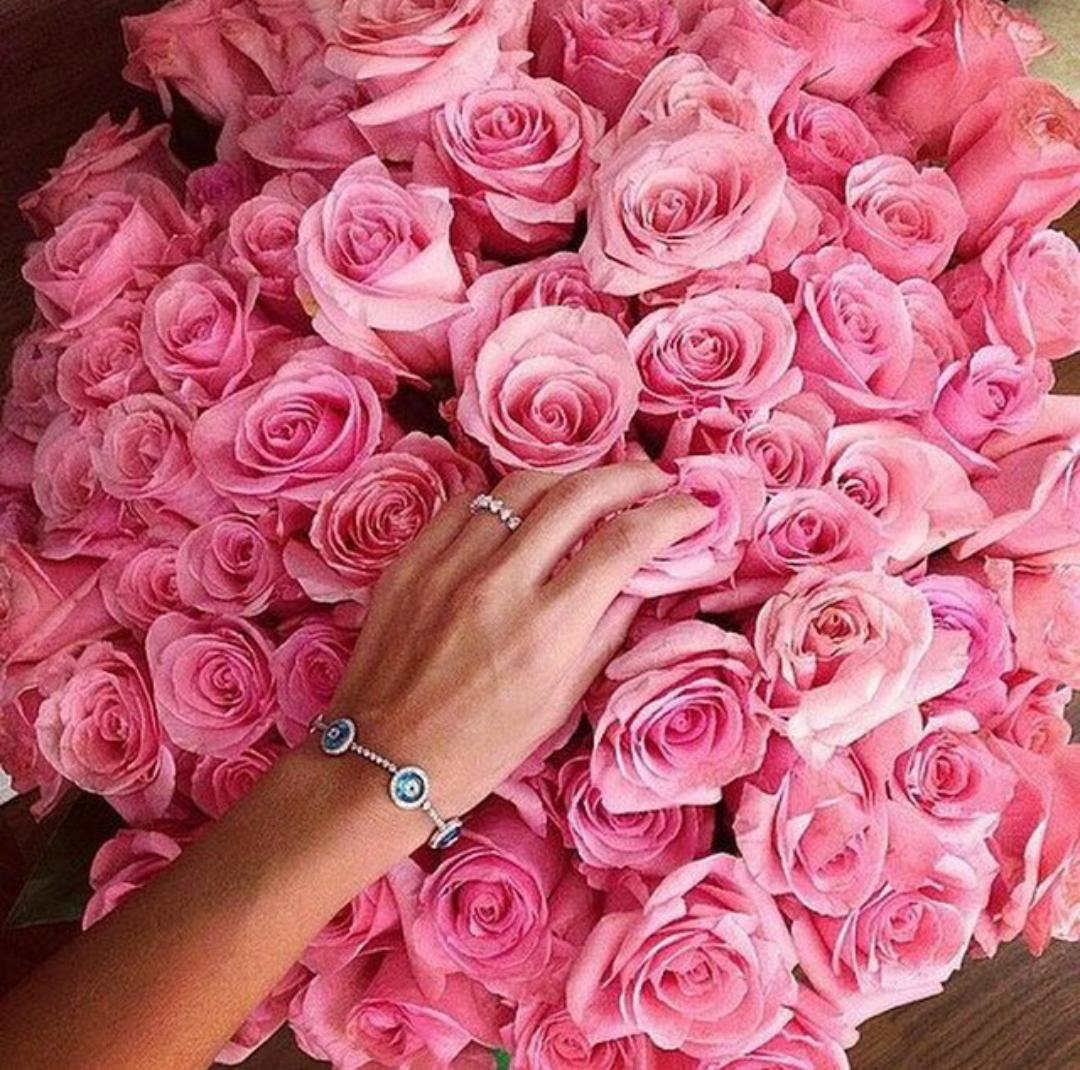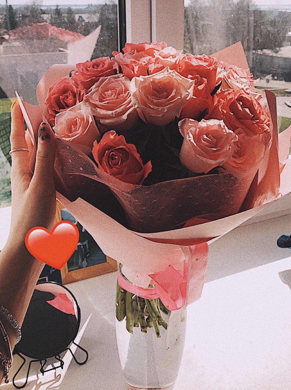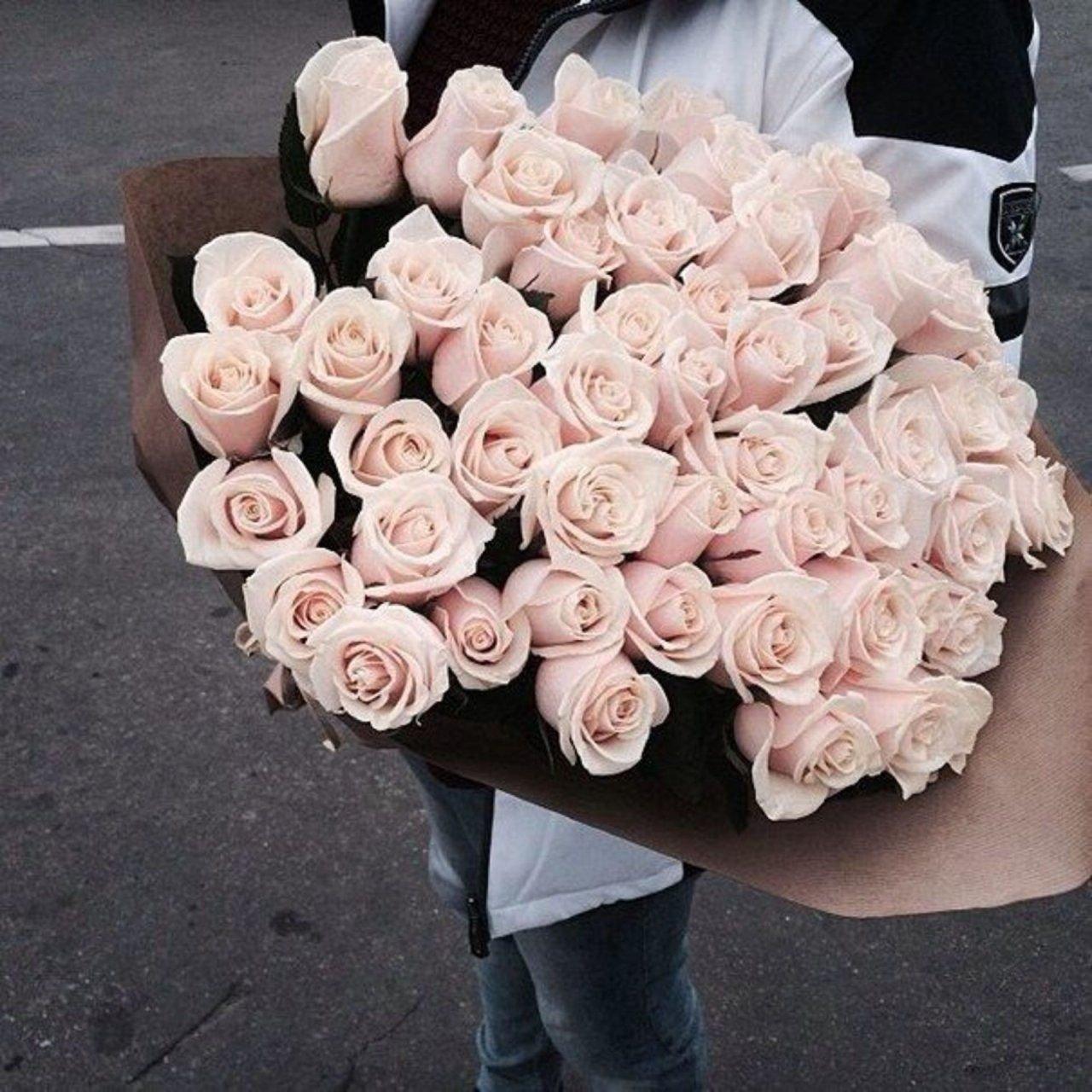 Девушка с огромным букетом роз
