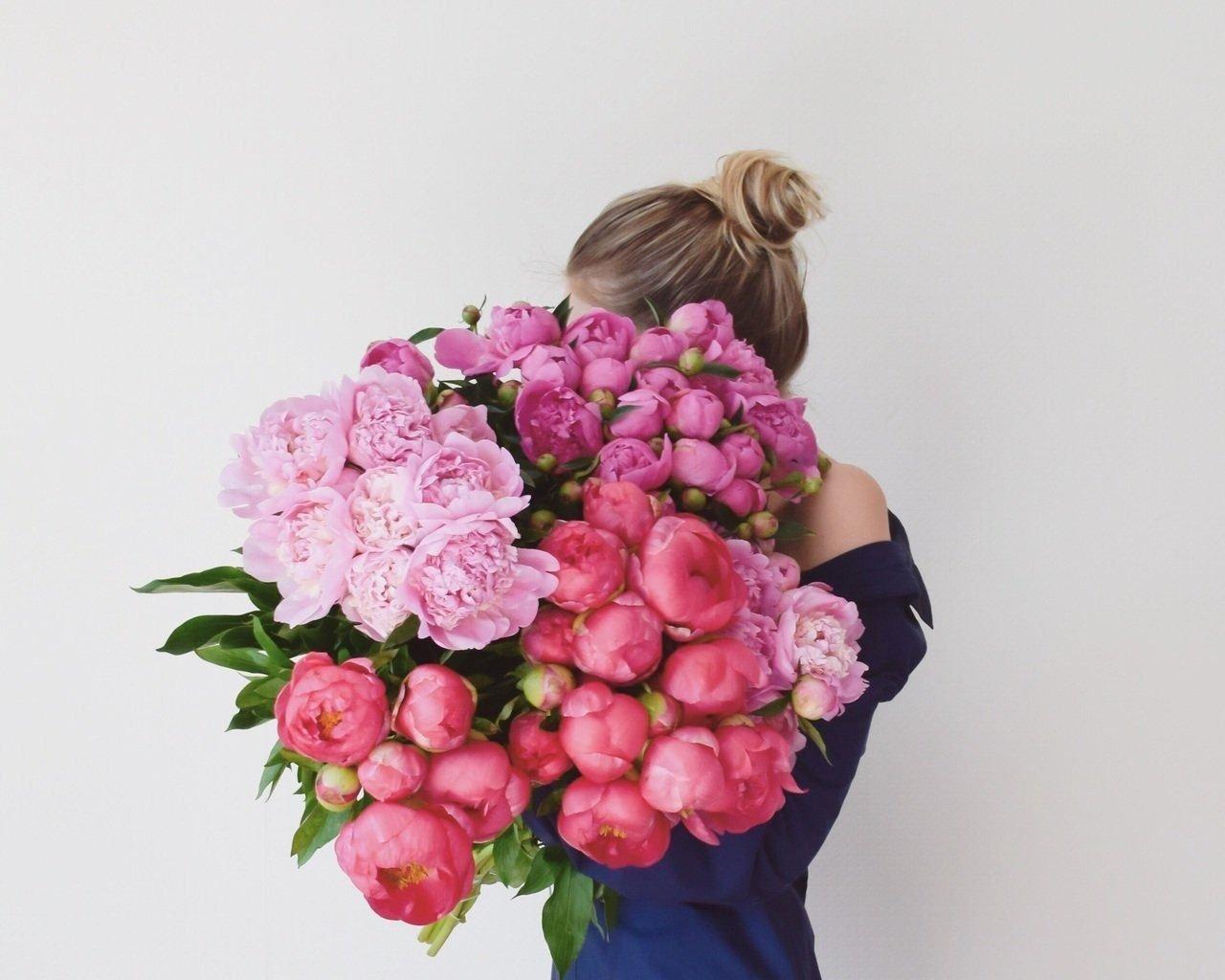 Девушка с пионами без лица