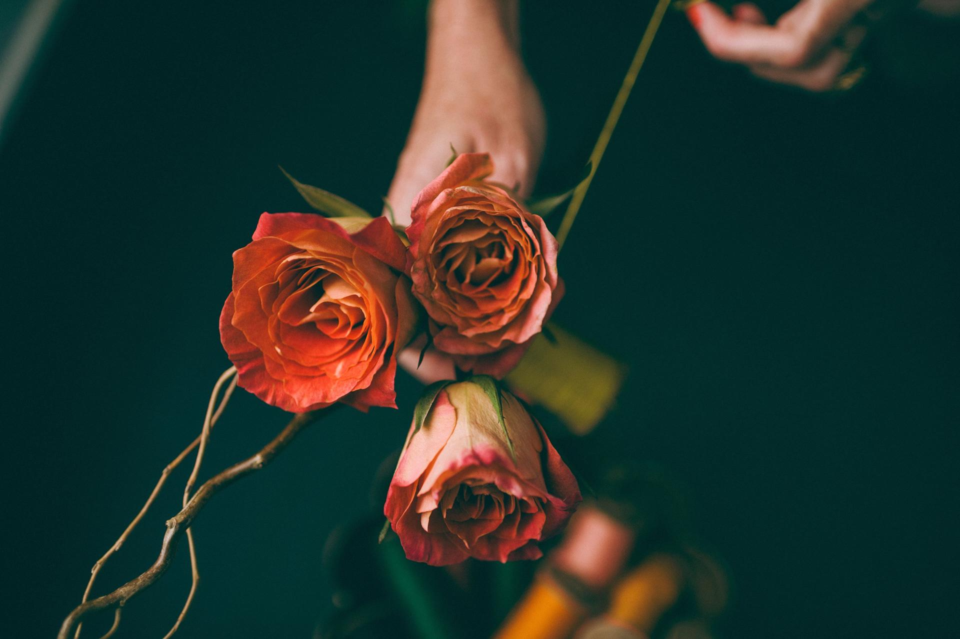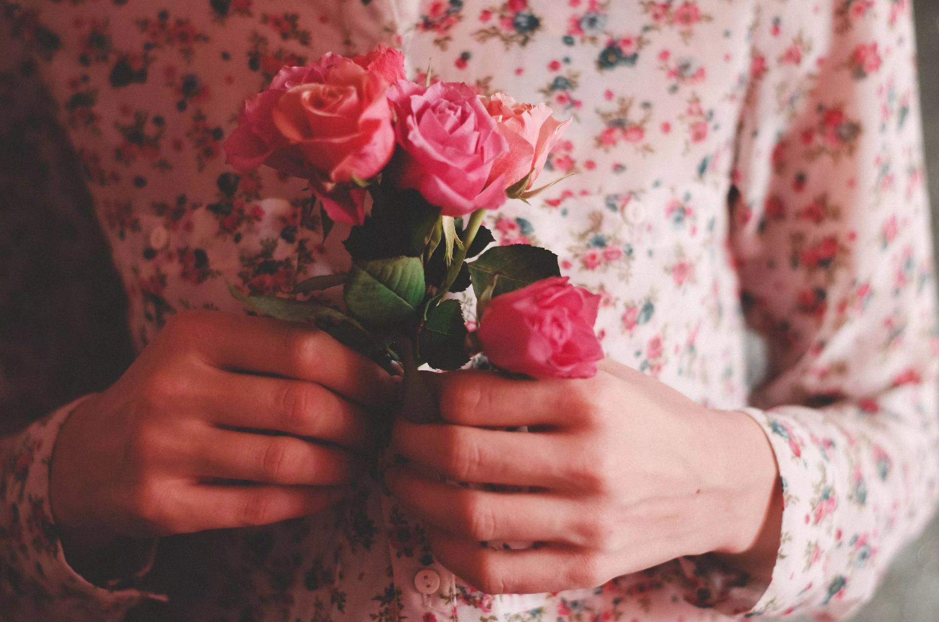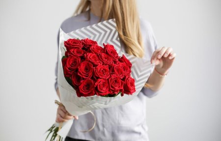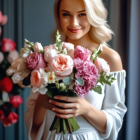 Девушка с букетом роз