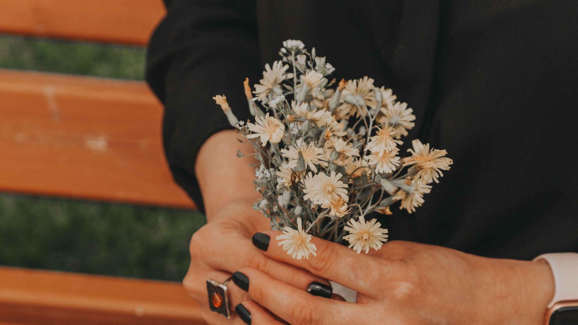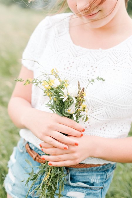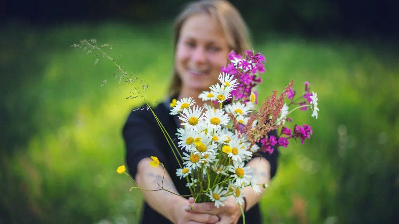 Девушки с букетами полевых цветов