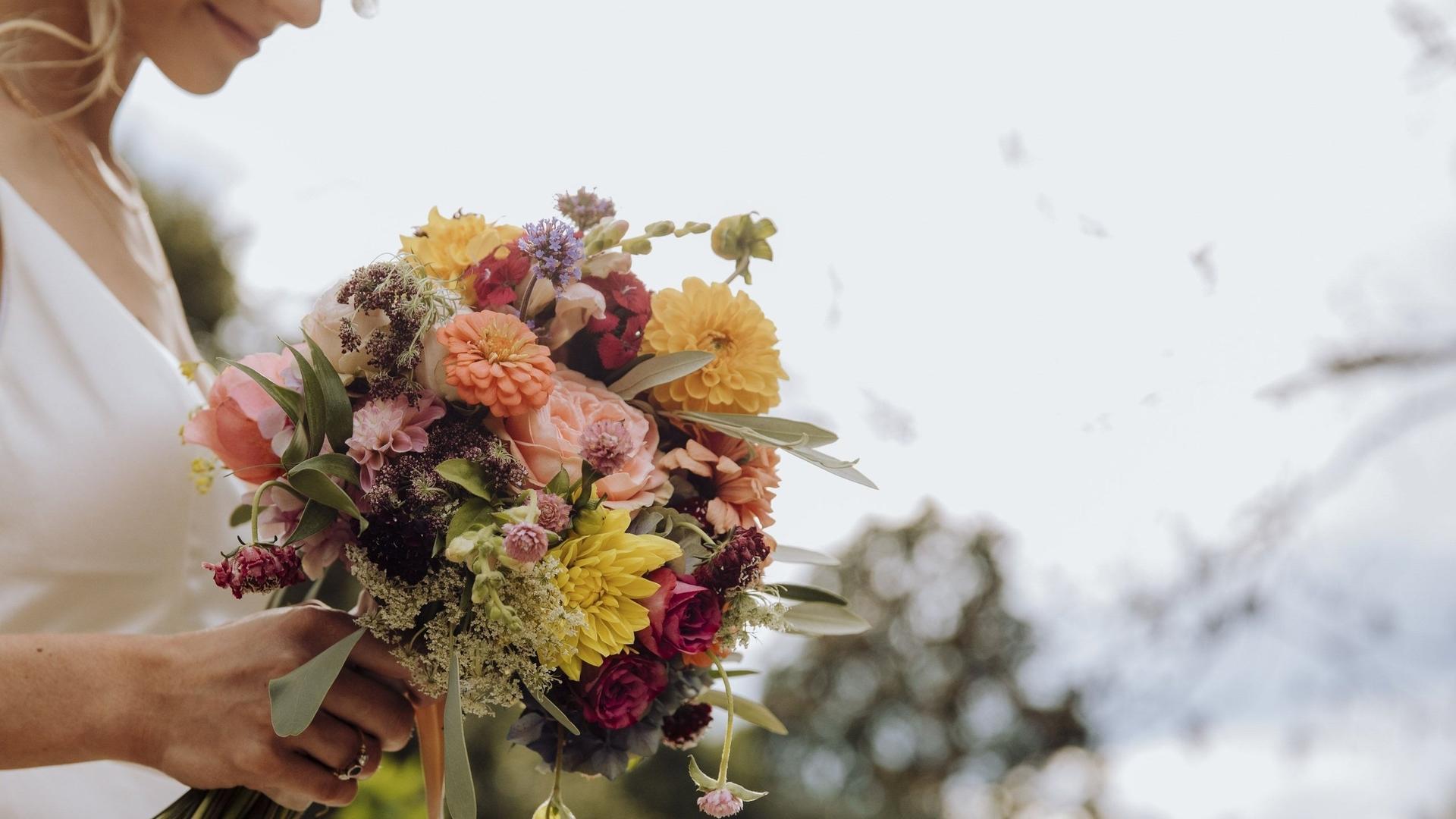 Букет в руках у девушки