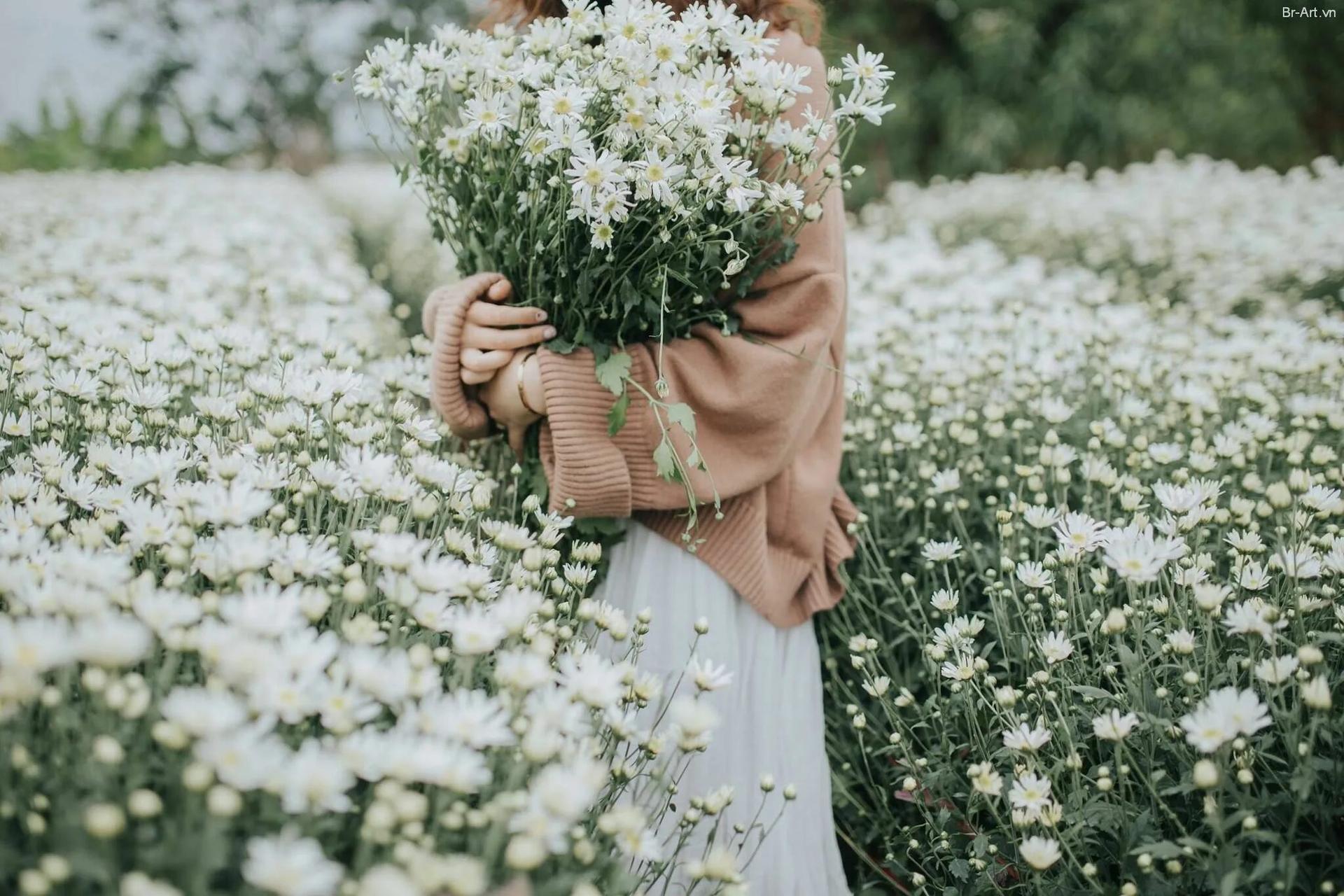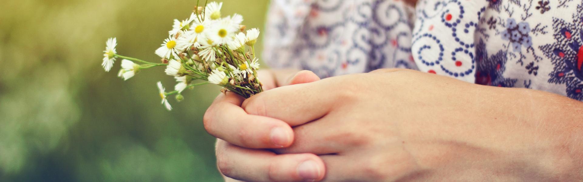 Женщины с букетами ромашек