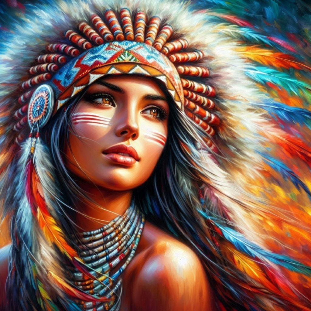 Эта коллекция посвящена девушкам американских индейцев, воплощающим мудрость и духовную силу своих предков. Каждый портрет передает глубокую связь с природой, традициями и культурным наследием коренных народов Северной Америки. Художники стремятся передать аутентичность образов через детали одежды, украшений и окружающей среды. В галерее представлены представительницы различных племен с их уникальными культурными особенностями: от навахо до сиу, каждая из которых несет в себе частичку истории своего народа. Эти изображения напоминают о важности сохранения культурного разнообразия и уважения к традициям коренных народов.