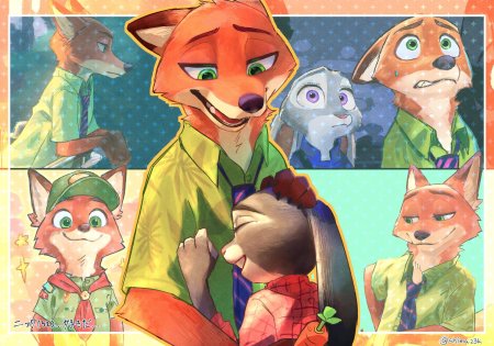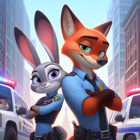 Погрузитесь в волшебный мир Зверополиса через коллекцию иллюстраций, посвященных незабываемой паре - хитрому лису Нику и смелой зайчихе Джуди. Каждый арт раскрывает разные грани их отношений: от комичных ситуаций на улицах города до трогательных моментов дружбы и взаимопонимания. Иллюстрации выполнены в различных стилях - от близких к оригинальной анимации до креативных интерпретаций с элементами поп-арта и минимализма. Особое внимание уделено деталям: выражение мордочек героев, динамика движения, архитектура футуристического города. Цветовая гамма отражает атмосферу оригинального фильма - яркие неоновые огни, пастельные тона жилых кварталов, насыщенные цвета центральных проспектов. Эти иллюстрации станут отличным дополнением к коллекциям фанатов Диснея, подойдут для оформления детских комнат или создания контента в социальных сетях.