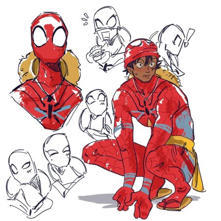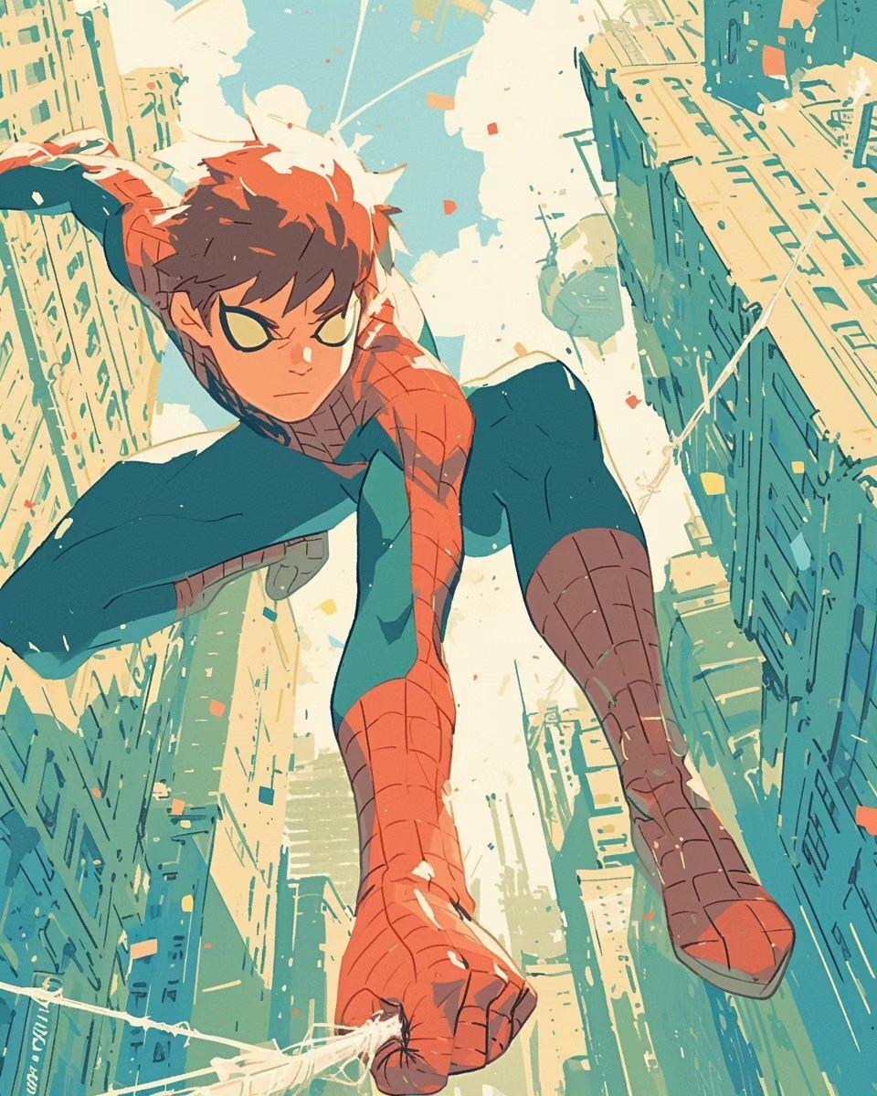 Откройте для себя милую сторону Человека-паука через коллекцию нежных иллюстраций. Каждый арт показывает Питера как обычного парня: помогает соседям, спасает котят, улыбается друзьям. Иллюстрации выполнены в теплых тонах с элементами юмора. Особое внимание уделено эмоциям: доброта, дружба, человечность. Цветовая палитра яркая и позитивная. Композиции варьируются от портретов до повседневных сцен. Эти иллюстрации идеально подойдут для детских проектов, фанатов или просто для поднятия настроения. Каждая работа уникальна и показывает героизм в мелочах.