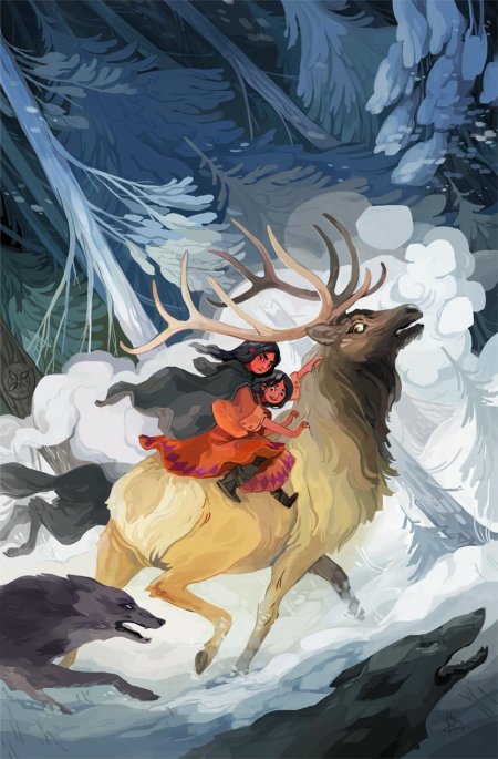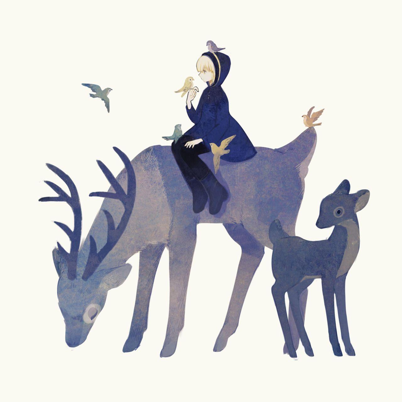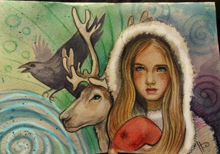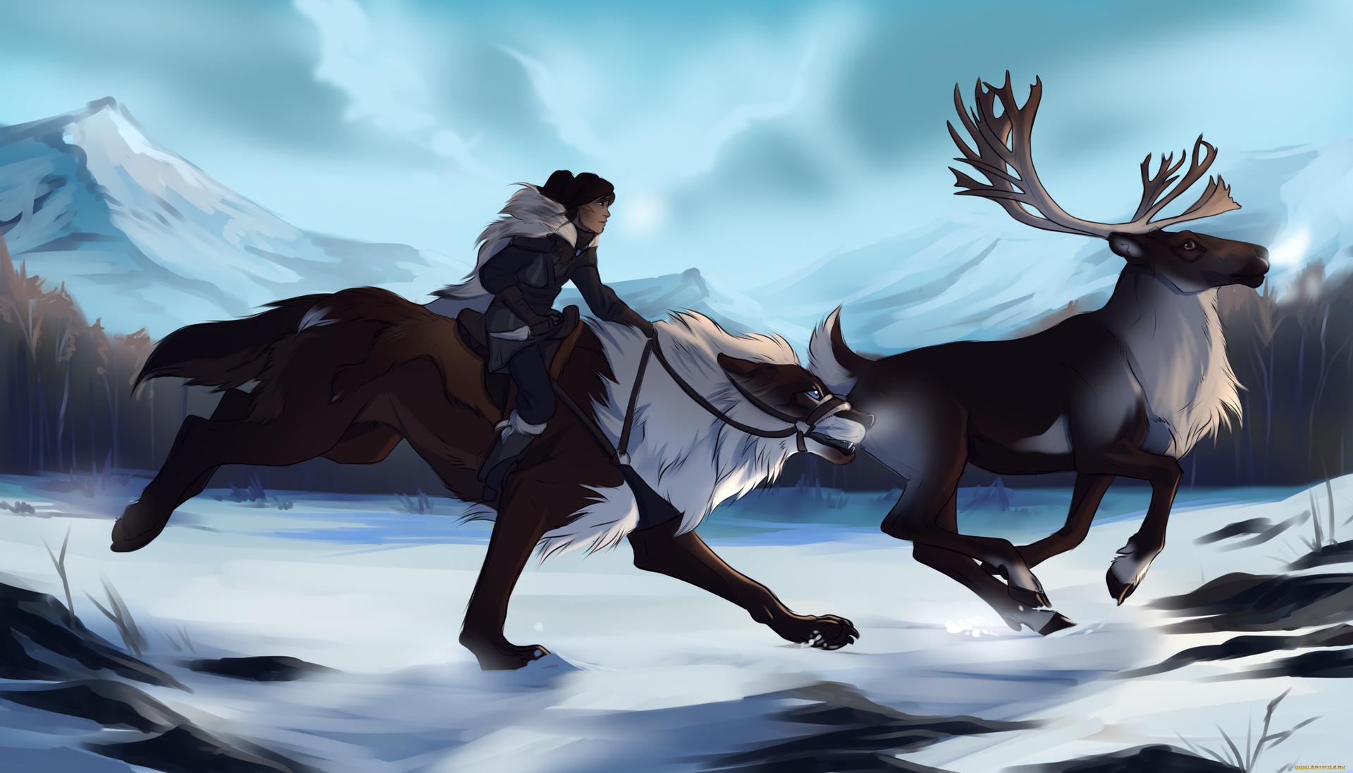 Девушка на олене арт