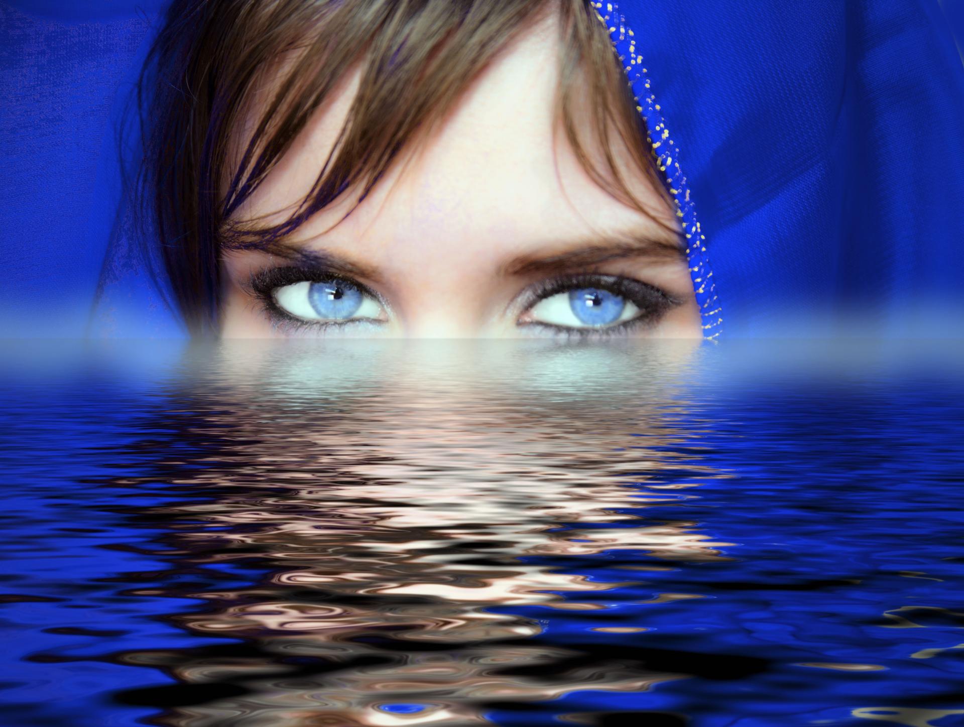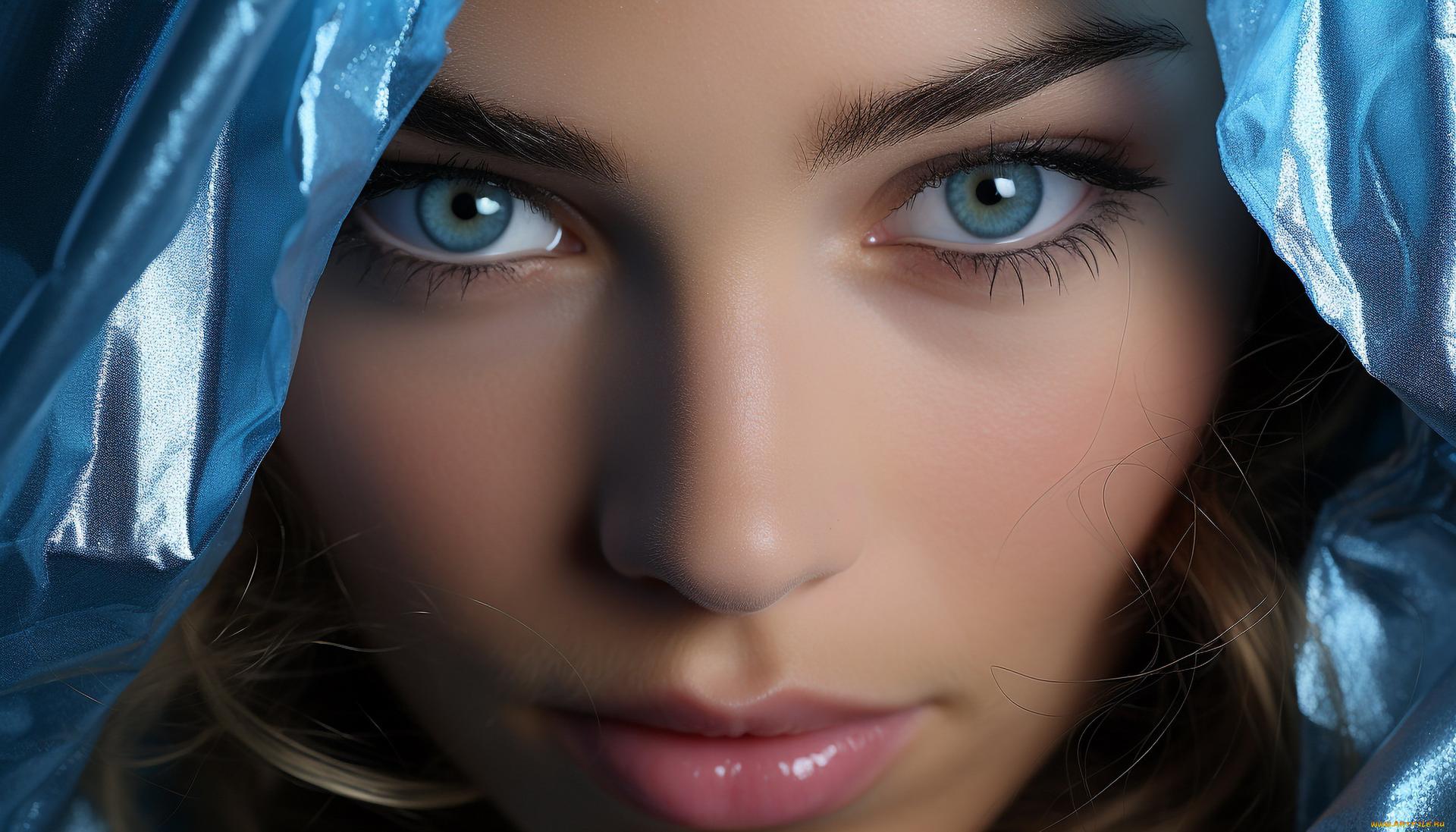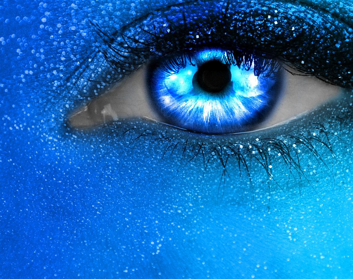 Глаза девушек на синем фоне