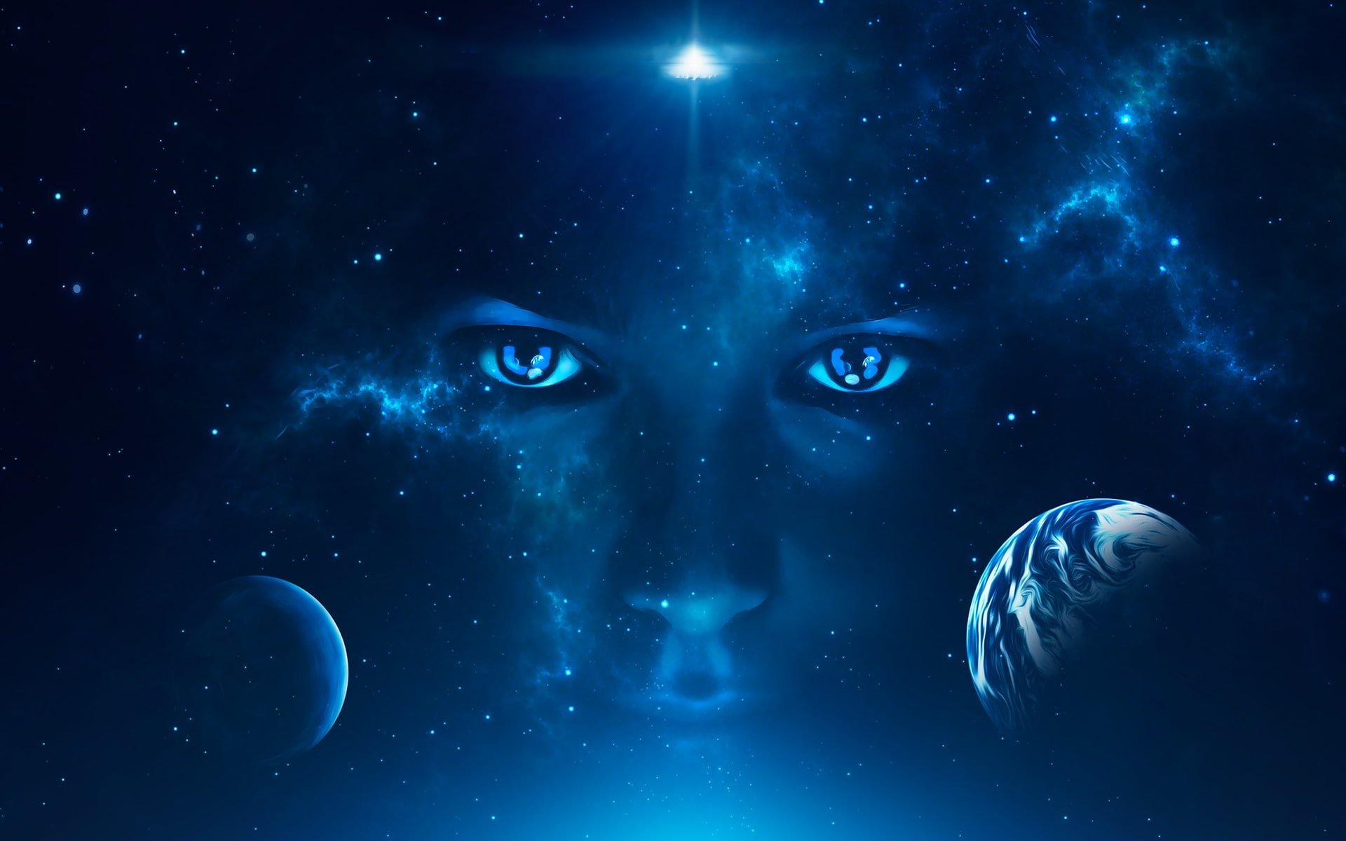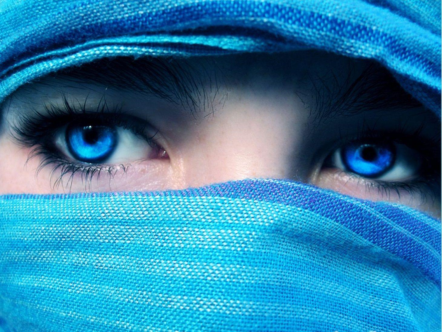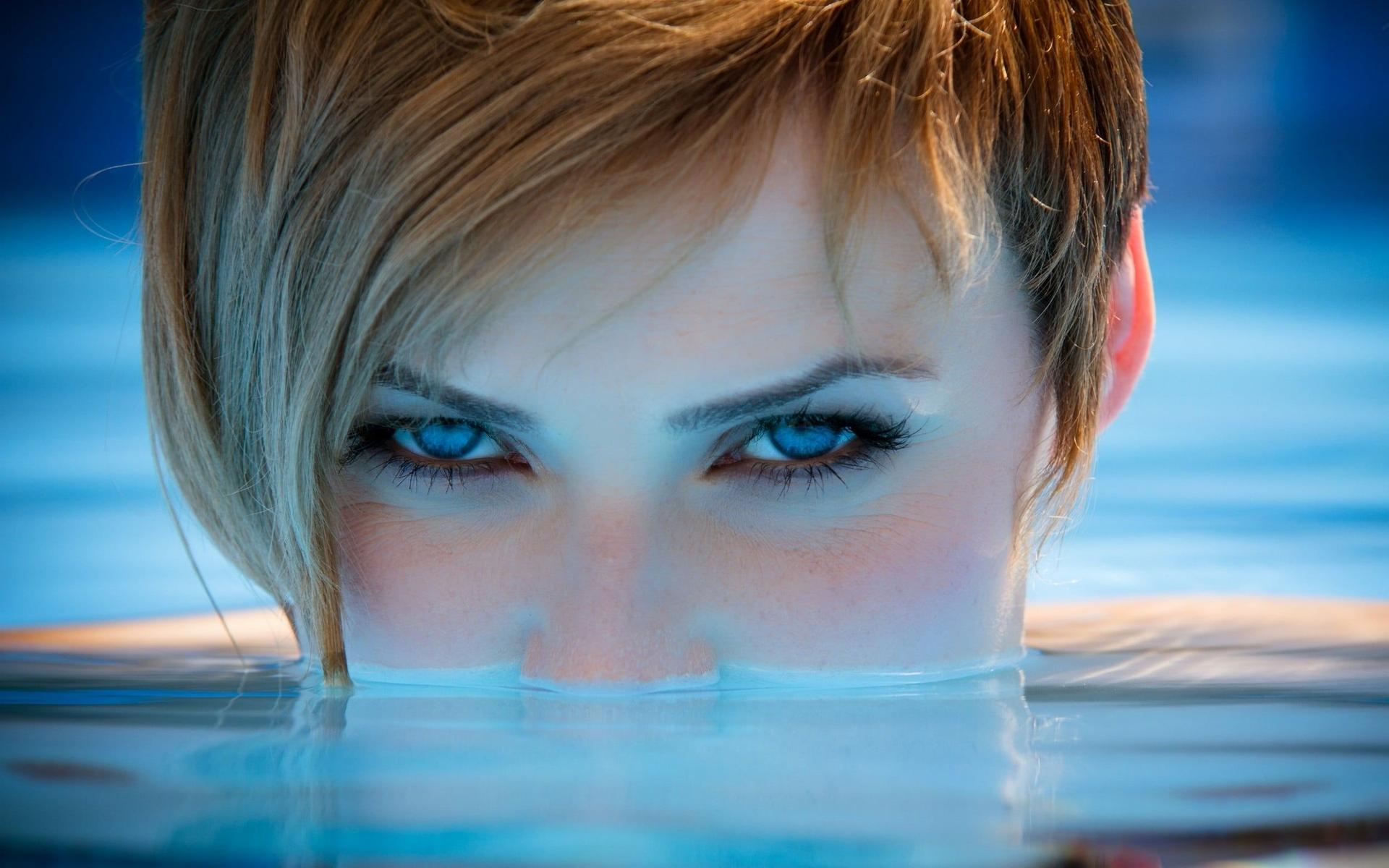 Глаза девушек на синем фоне