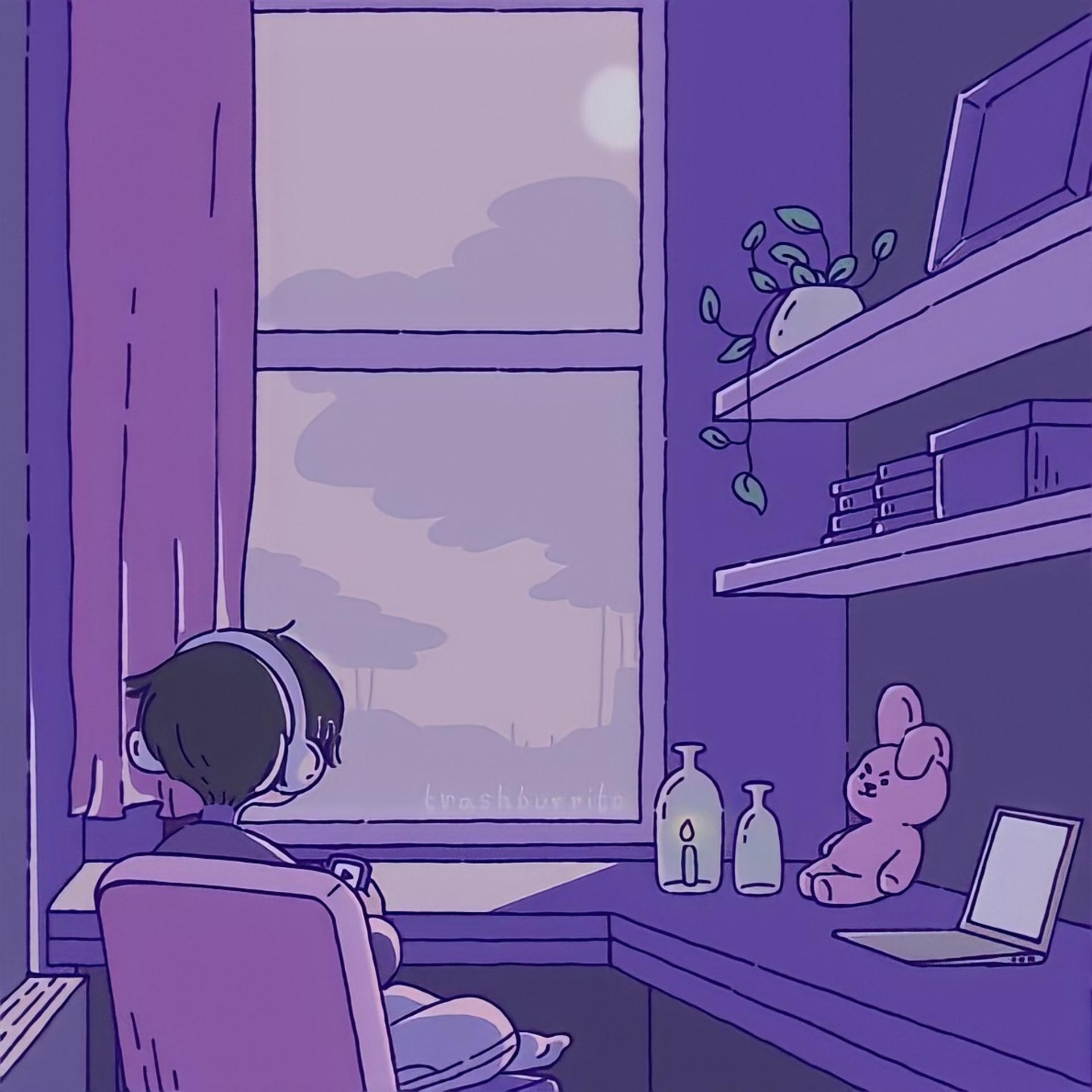 Фиолетовые аниме арты