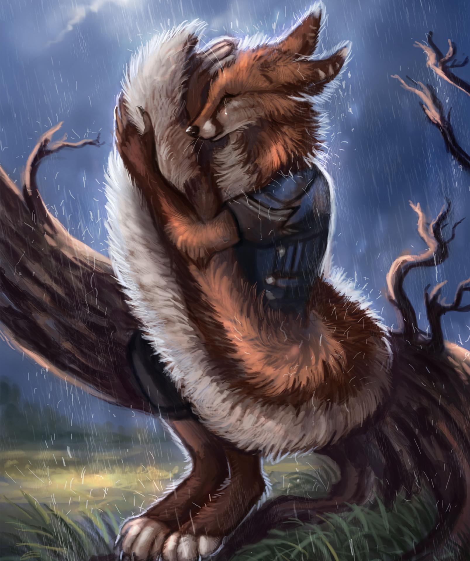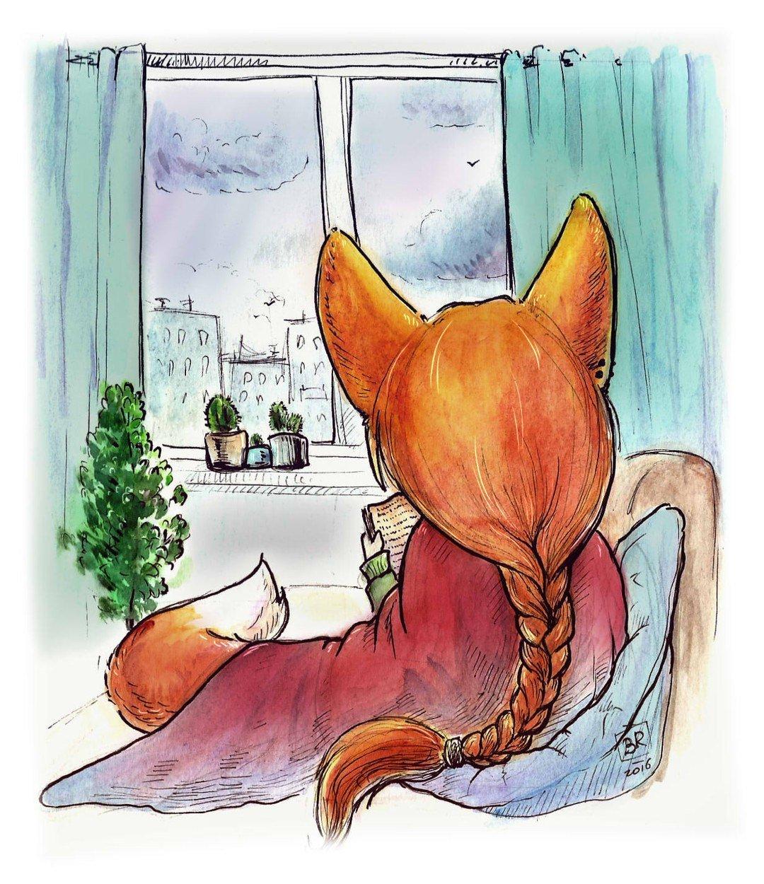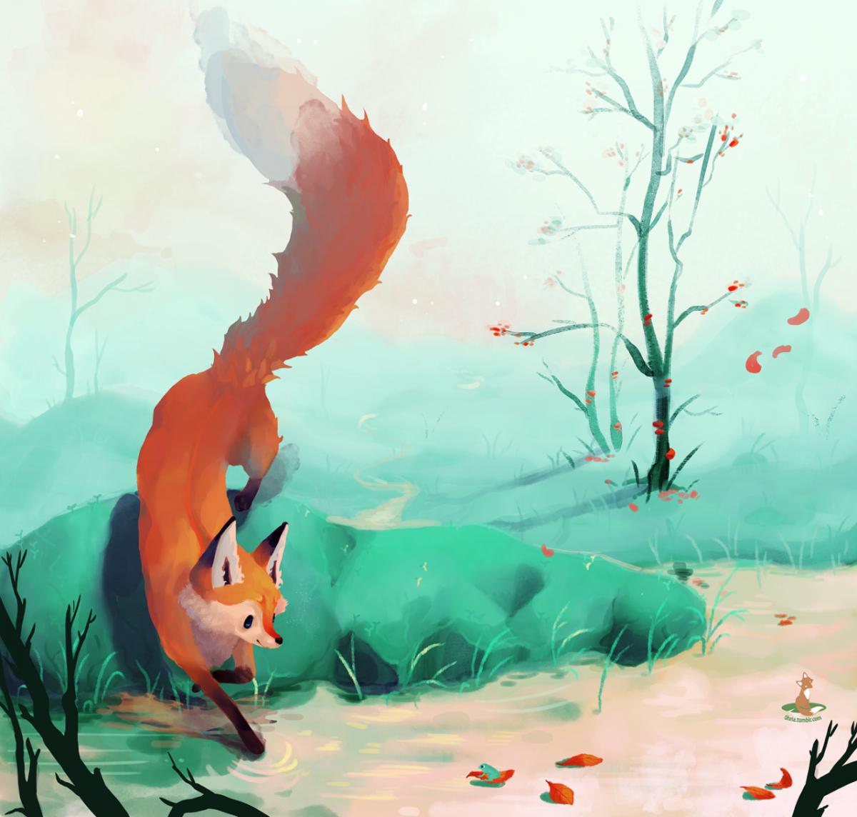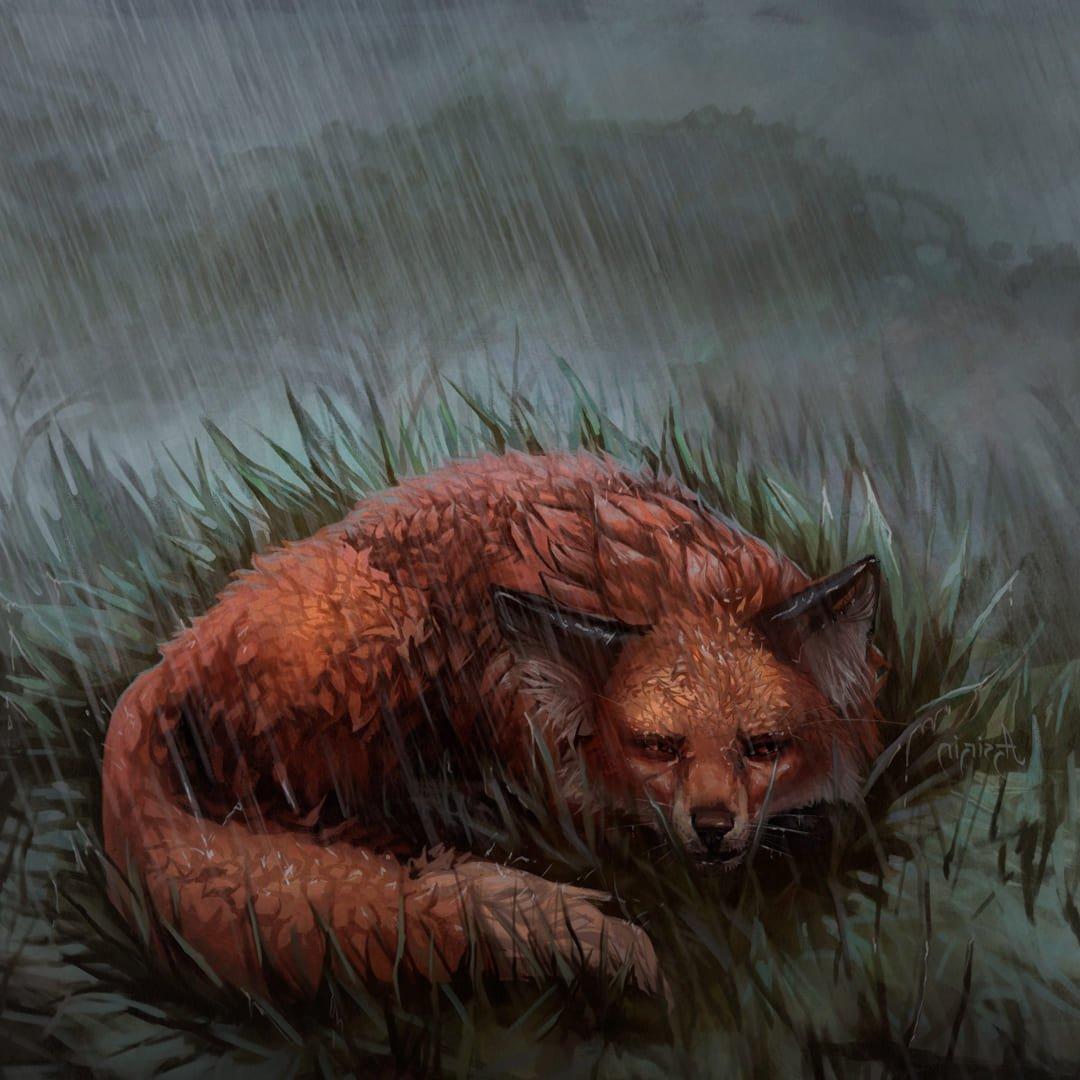 Грустная лиса арт